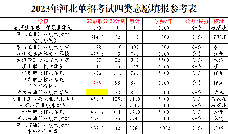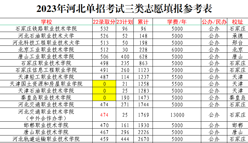 2023年河北单招考试三类、四类志愿填报数据分析表