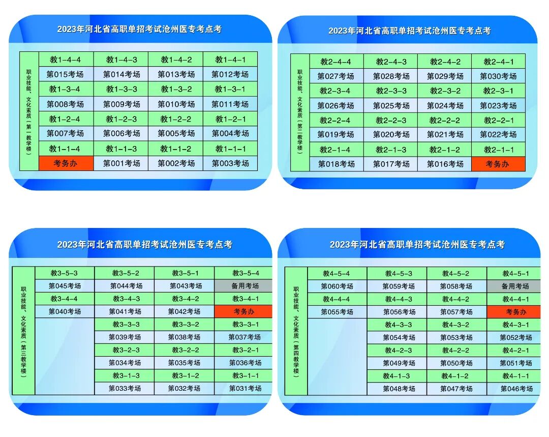 ▲第1~4教学楼考场分布