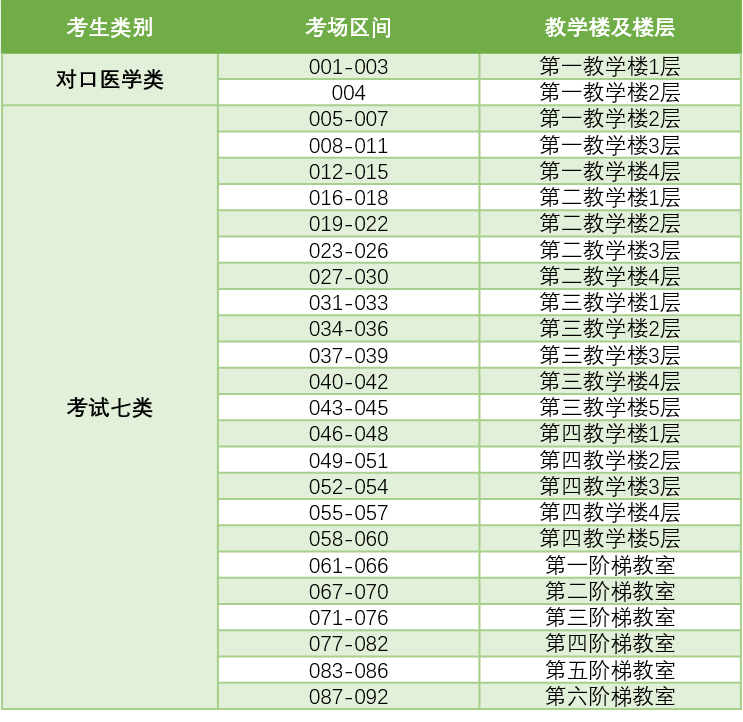 ▲ 第1~6阶梯教室考场分布