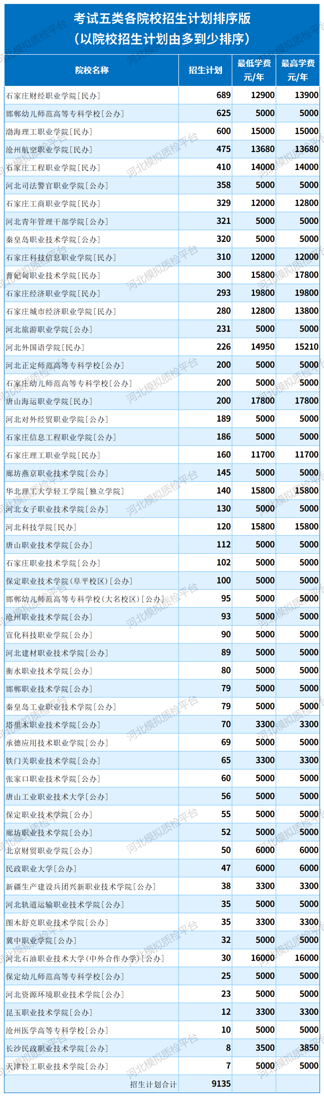 长沙民政职业技术学院、民政职业大学、石家庄信息工程职业学院、石家庄职业技术学院、邯郸职业技术学院、河北对外经贸职业学院、河北旅游职业学院、河北司法警官职业学院