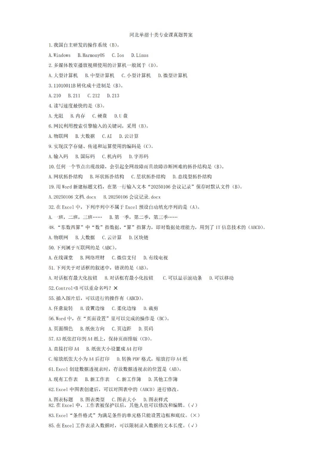 2025年河北单招十类真题(网络汇总,仅供参考)