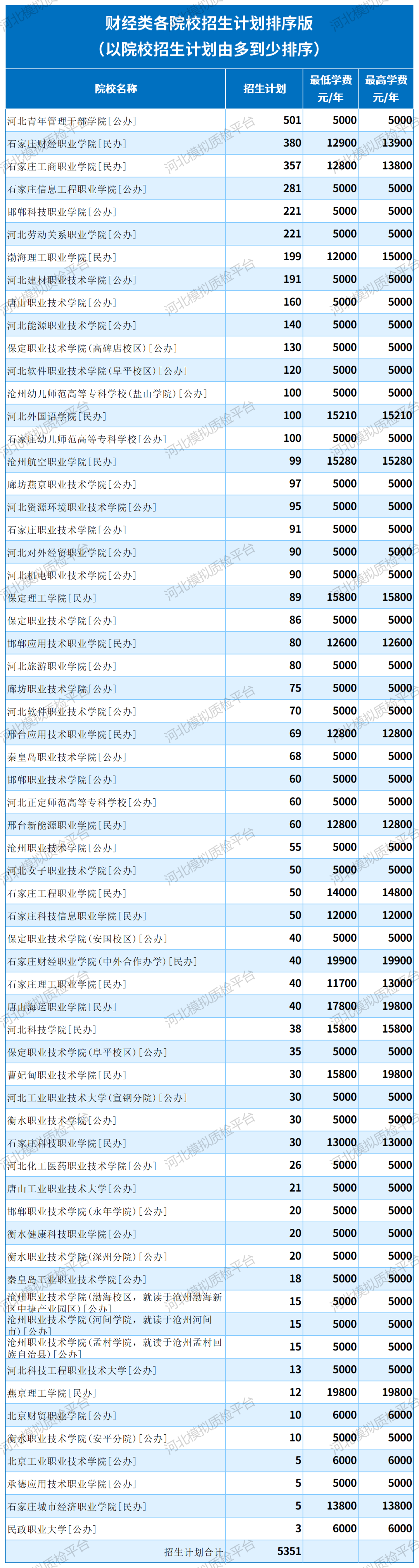 石家庄职业技术学院、石家庄信息工程职业学院、秦皇岛职业技术学院、邯郸职业技术学院、河北软件职业技术学院、河北对外经贸职业学院
