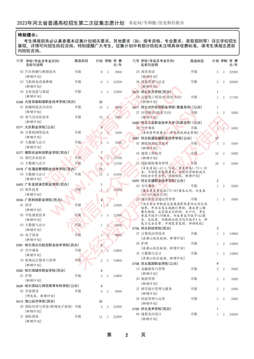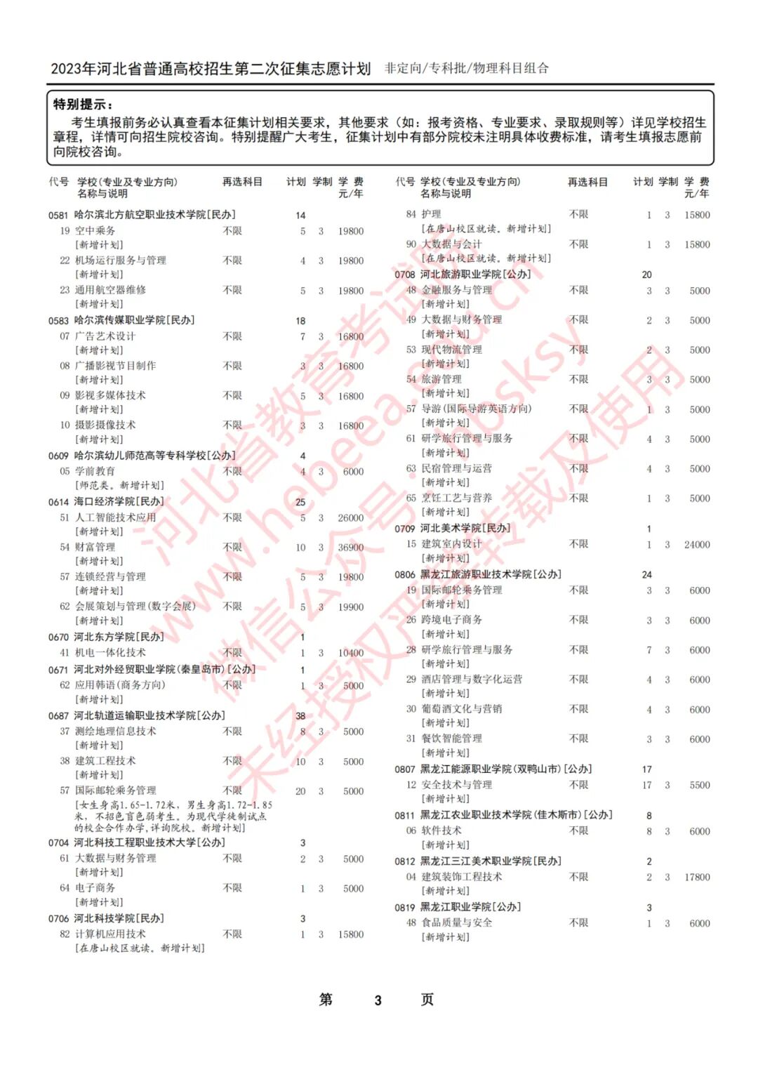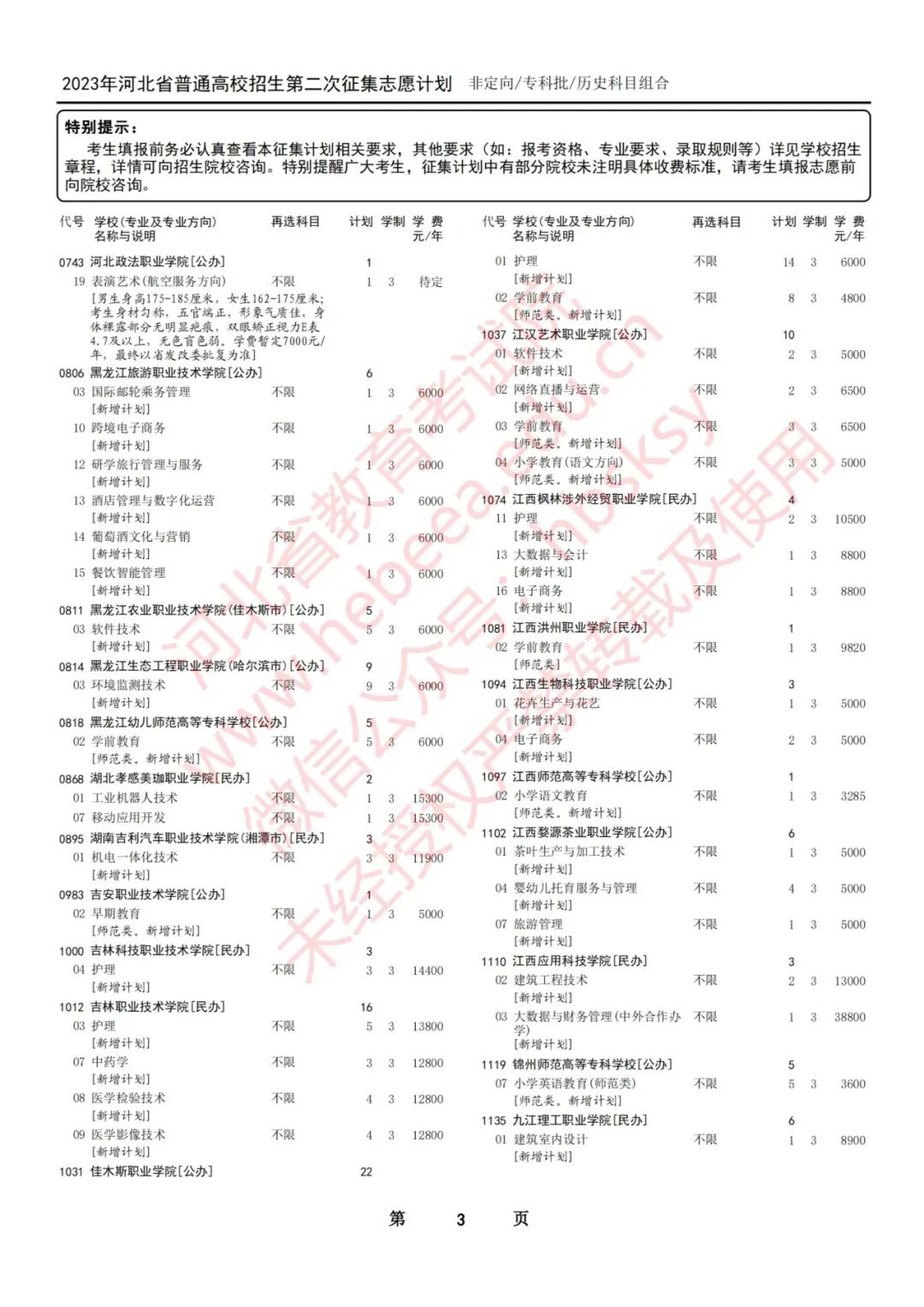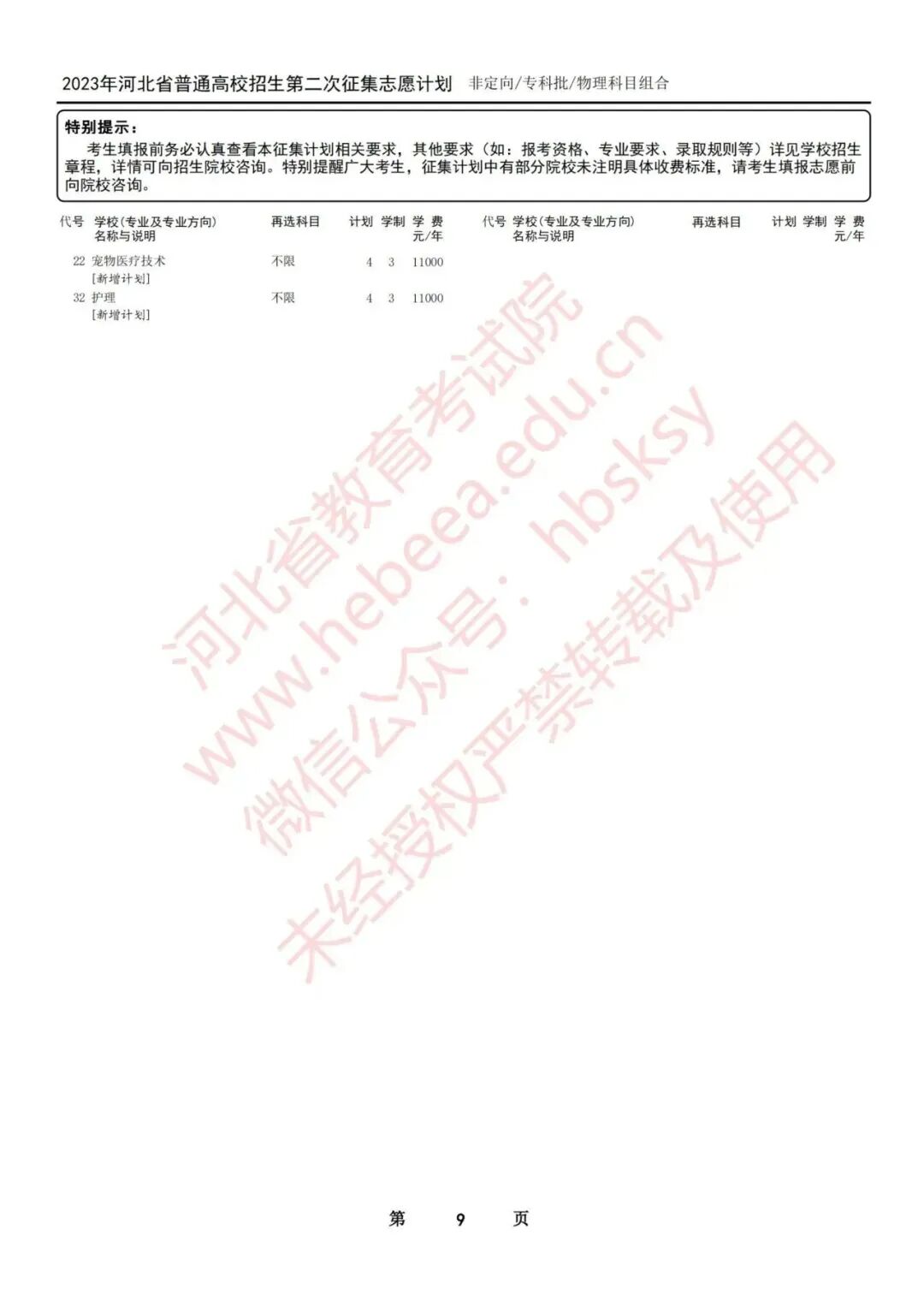 2023年河北省普通高校招生征集志愿计划说明