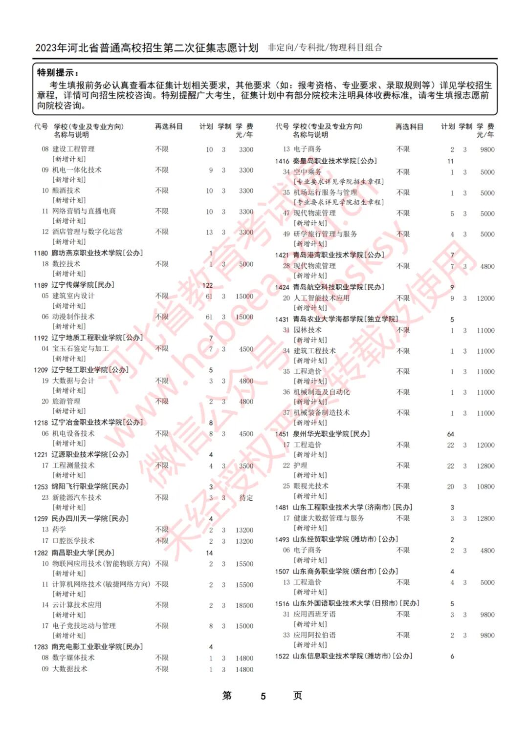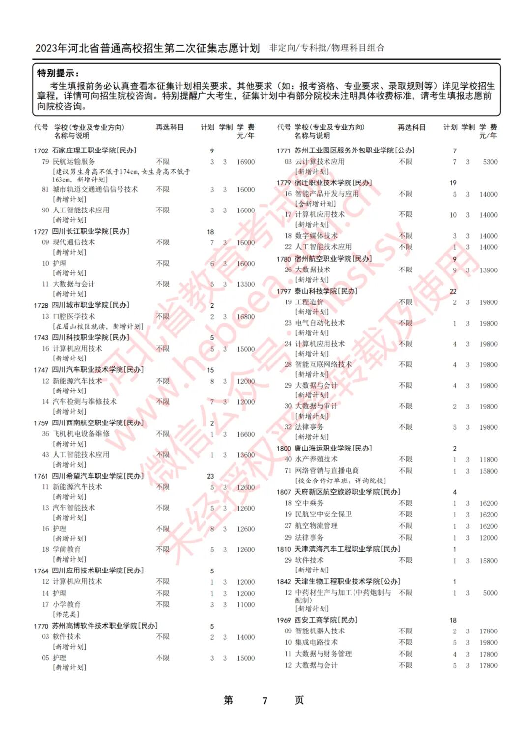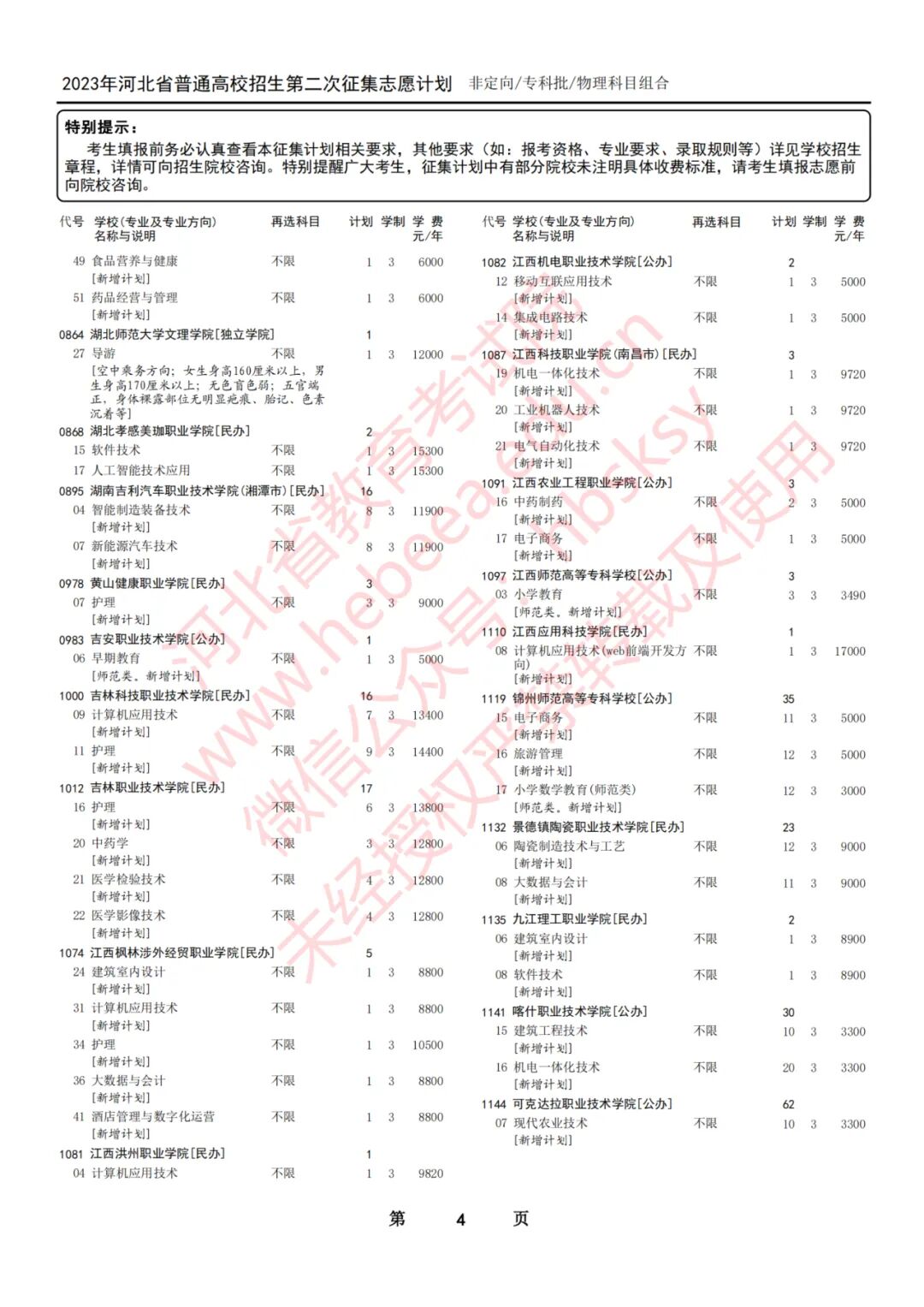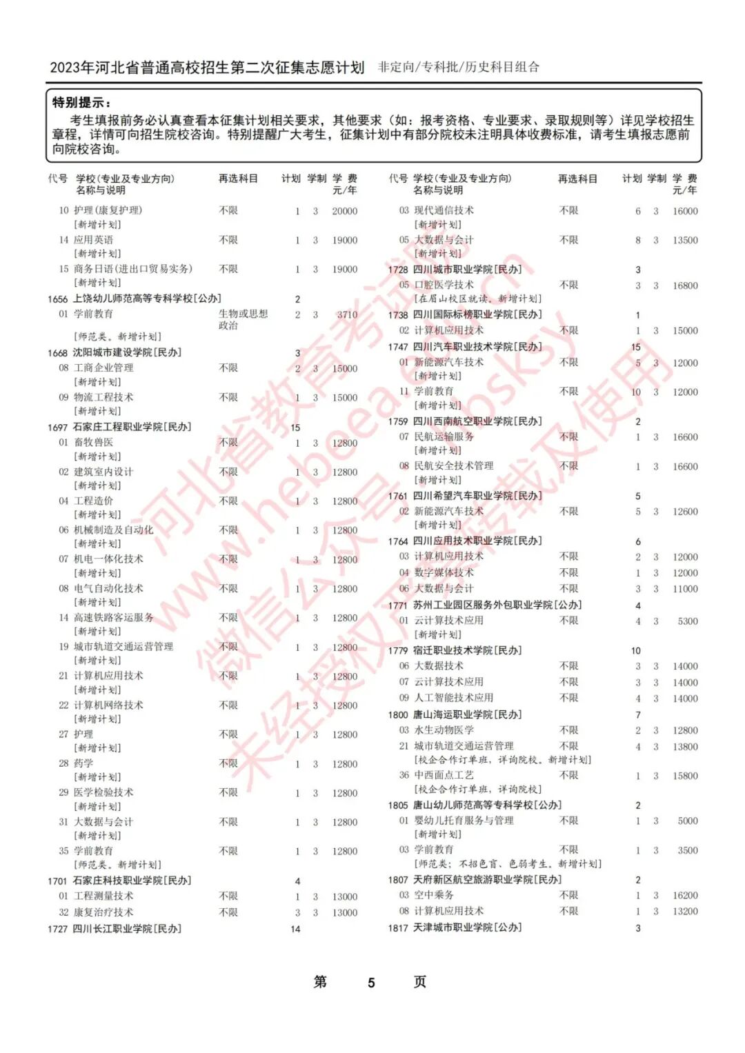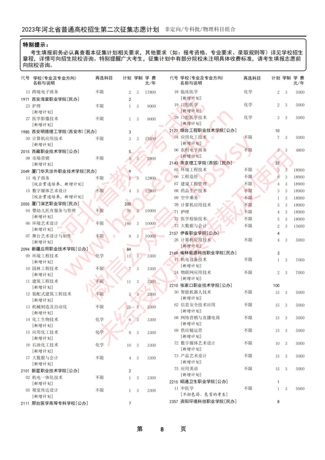 2023年河北省普通高校招生征集志愿计划说明