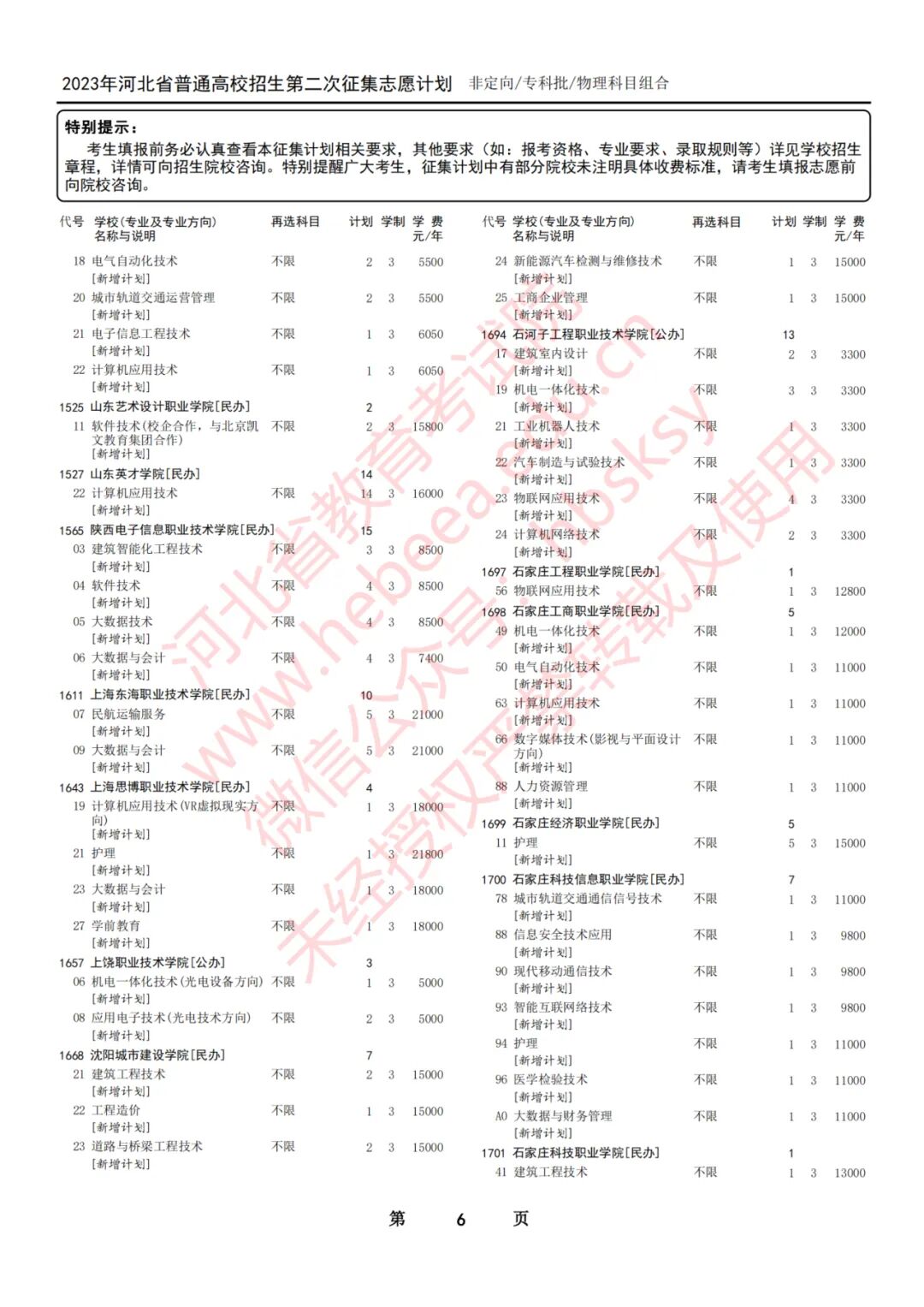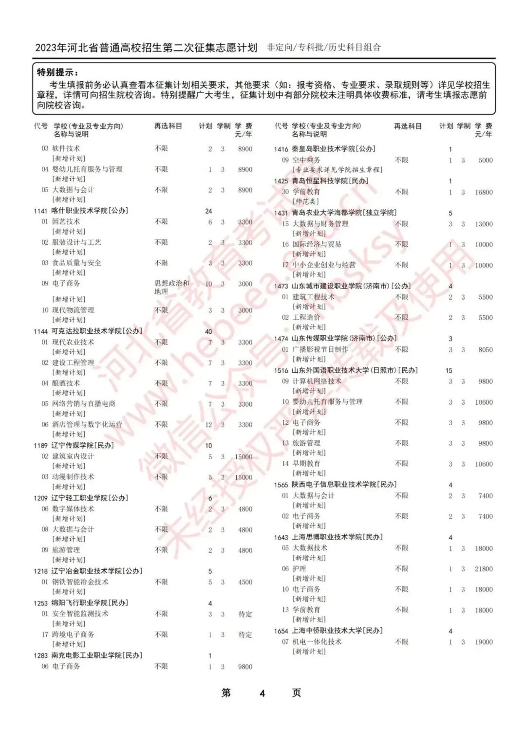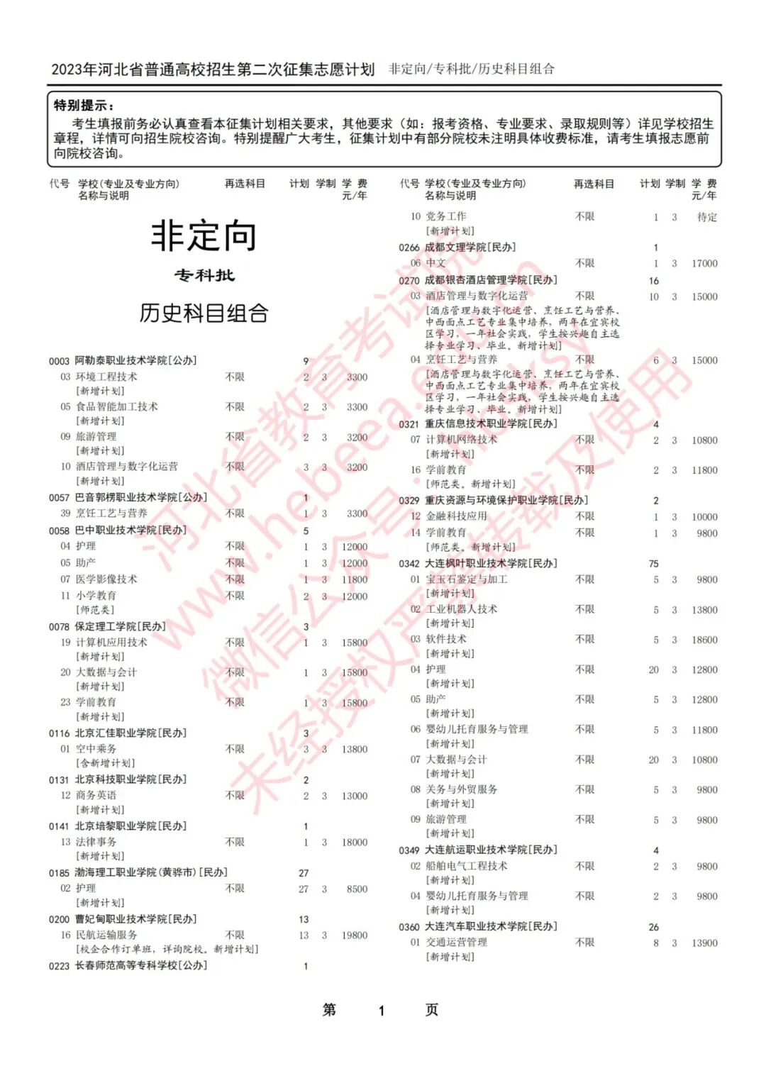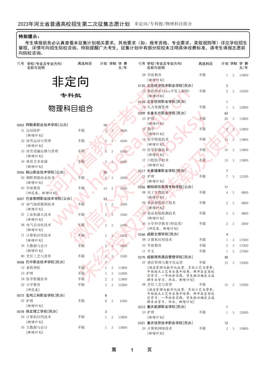 2023年河北省普通高校招生征集志愿计划说明