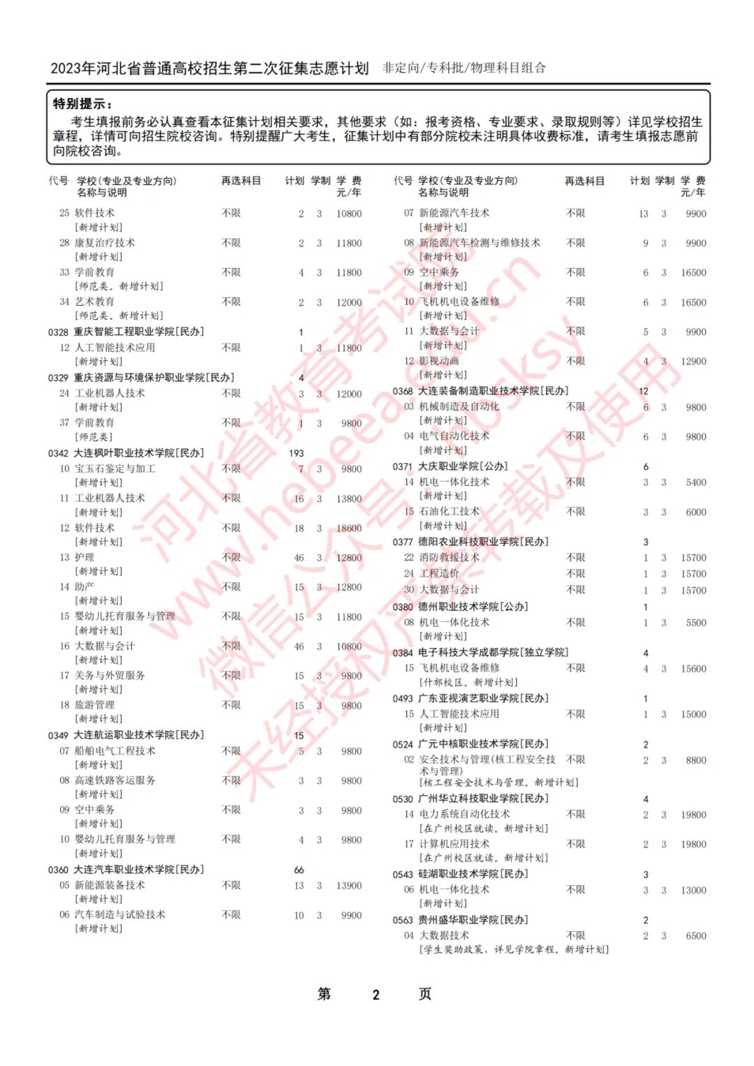 (专科批第二次征集)