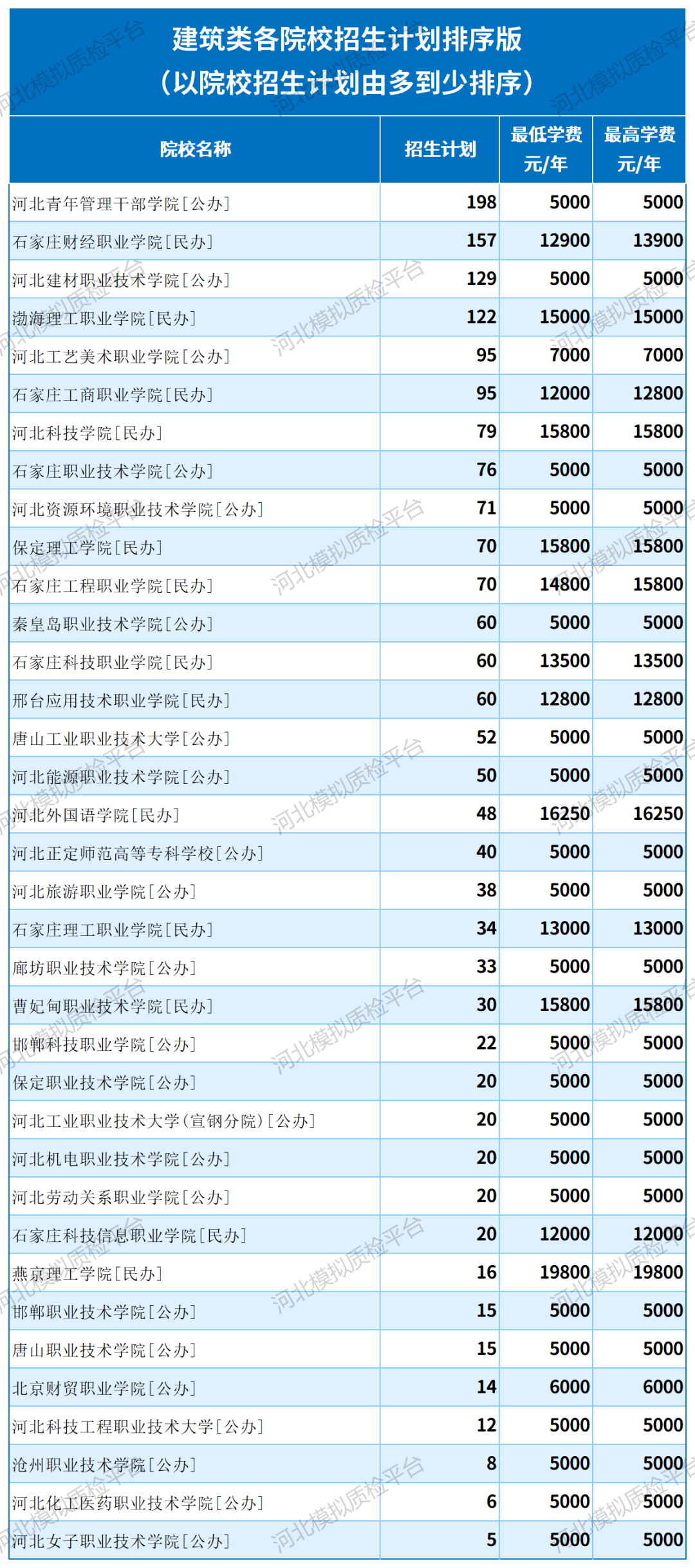 石家庄职业技术学院、唐山职业技术学院、河北交通职业技术学院、石家庄铁路职业技术学院、邯郸职业技术学院、天津国土资源和房屋职业学院