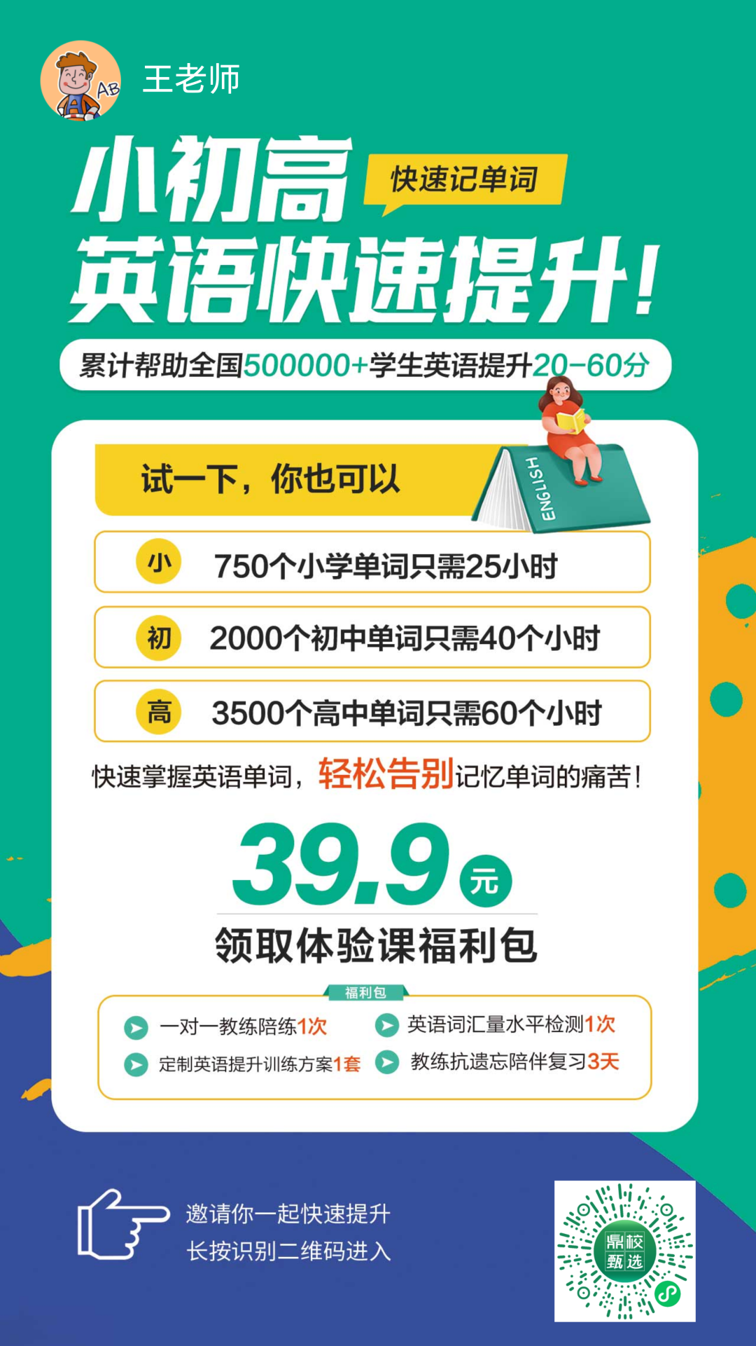 我是专注提分八年的英语谢老师,擅长带孩子短时间髙效提高词汇量,2-3个月提升20-60分,对孩子英语学习有困惑的家长可以加我♈️❤多交流哈,为孩子的英语学习之路指明方向,让每一位孩子都能用对方法学英语,在英语学习的路上自信发光✨