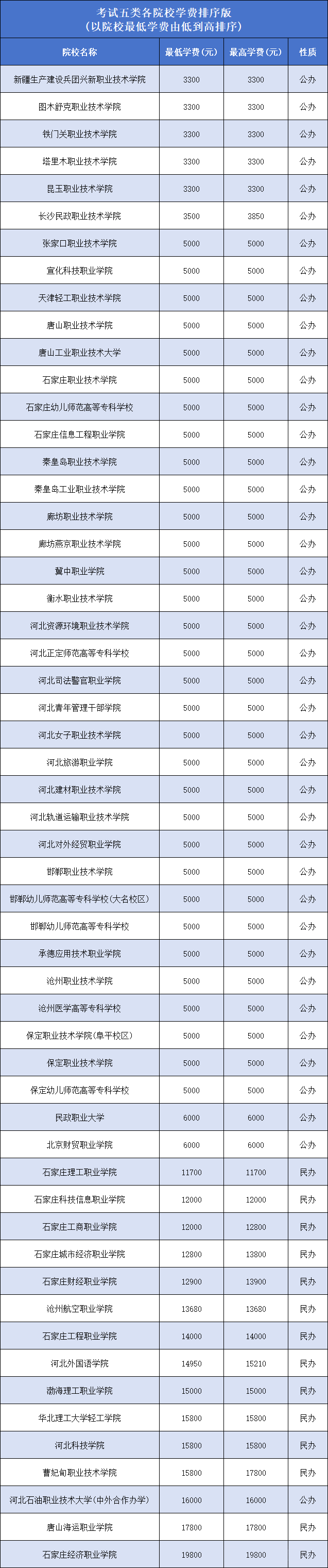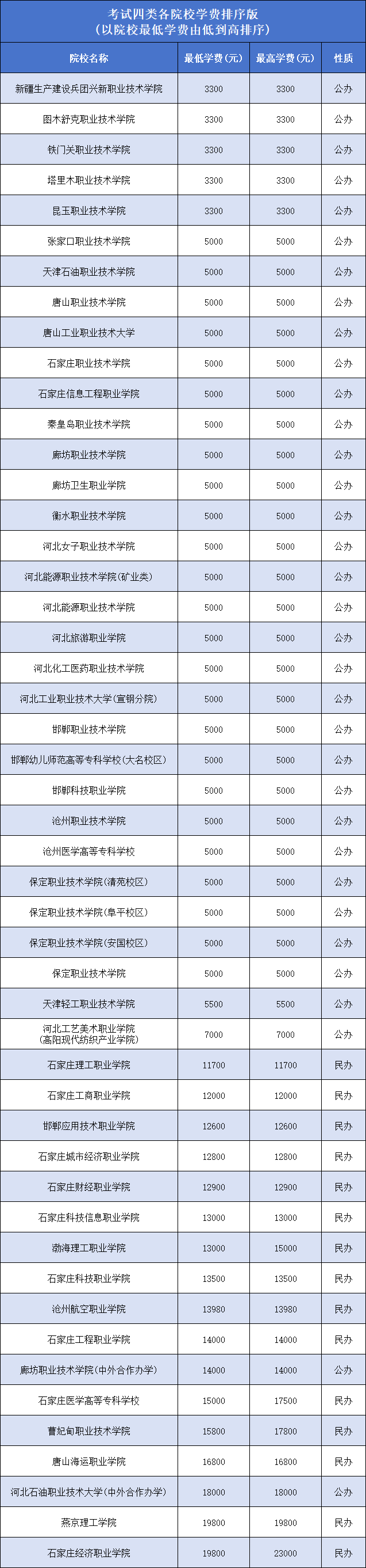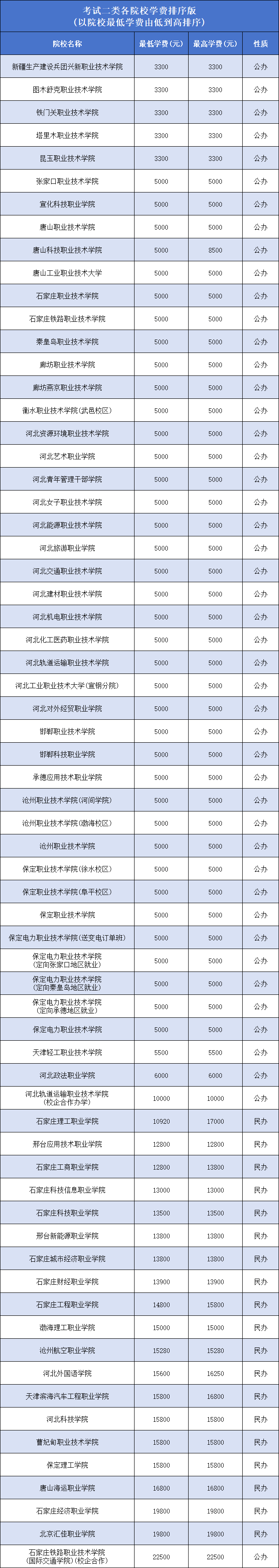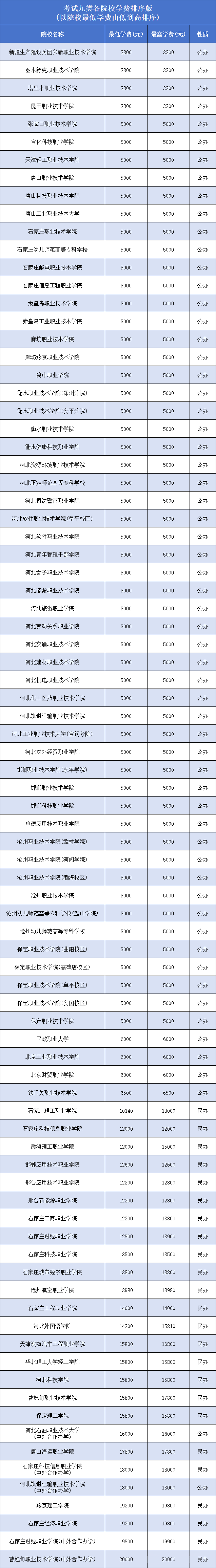 最高学费:石家庄医学高等专科学校(中外合作)27000元、河北美术学院30000元; 以上数据根据2025年河北省高职单招招生计划整理,仅供参考。2026年学费问题请关注相关单招院校官网。