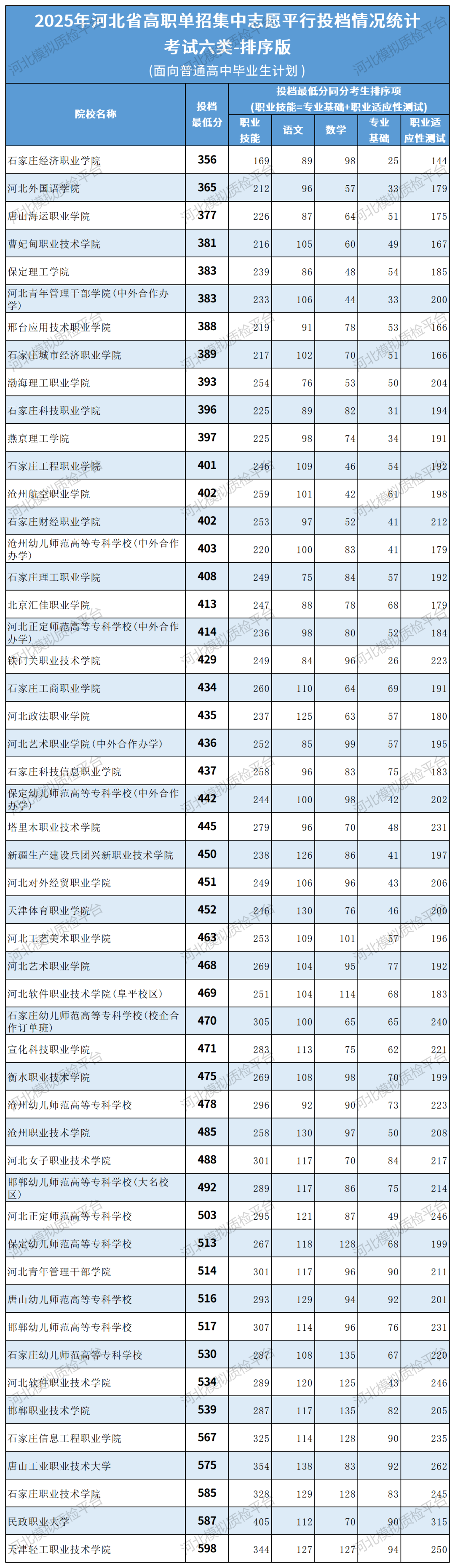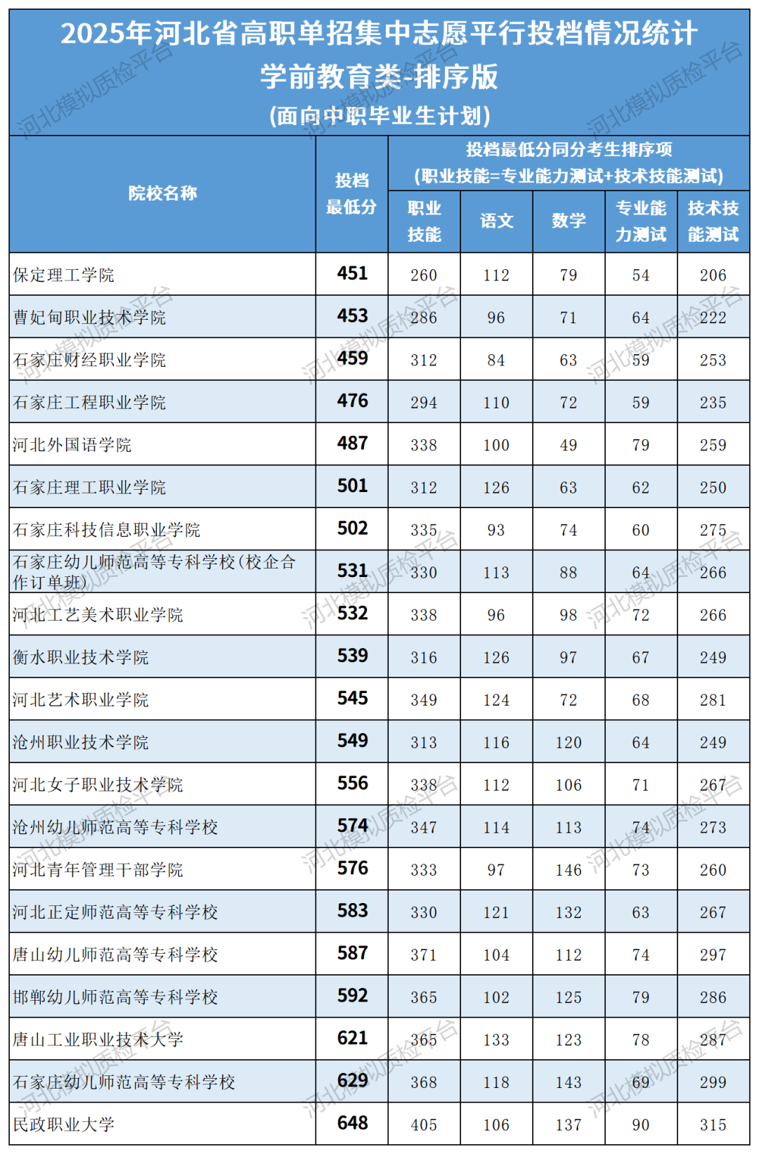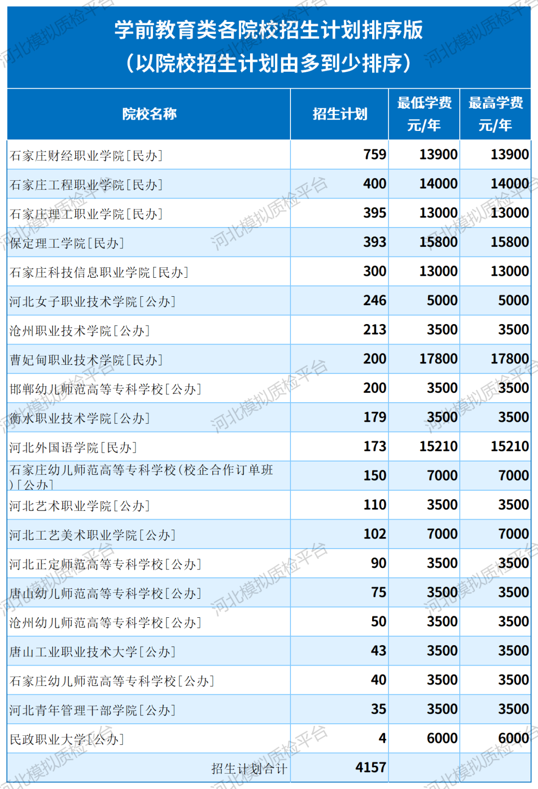 石家庄职业技术学院、河北软件职业技术学院、石家庄幼儿师范高等专科学校、唐山幼儿师范高等专科学校、河北青年管理干部学院、保定幼儿师范高等专科学校、河北正定师范高等专科学校
