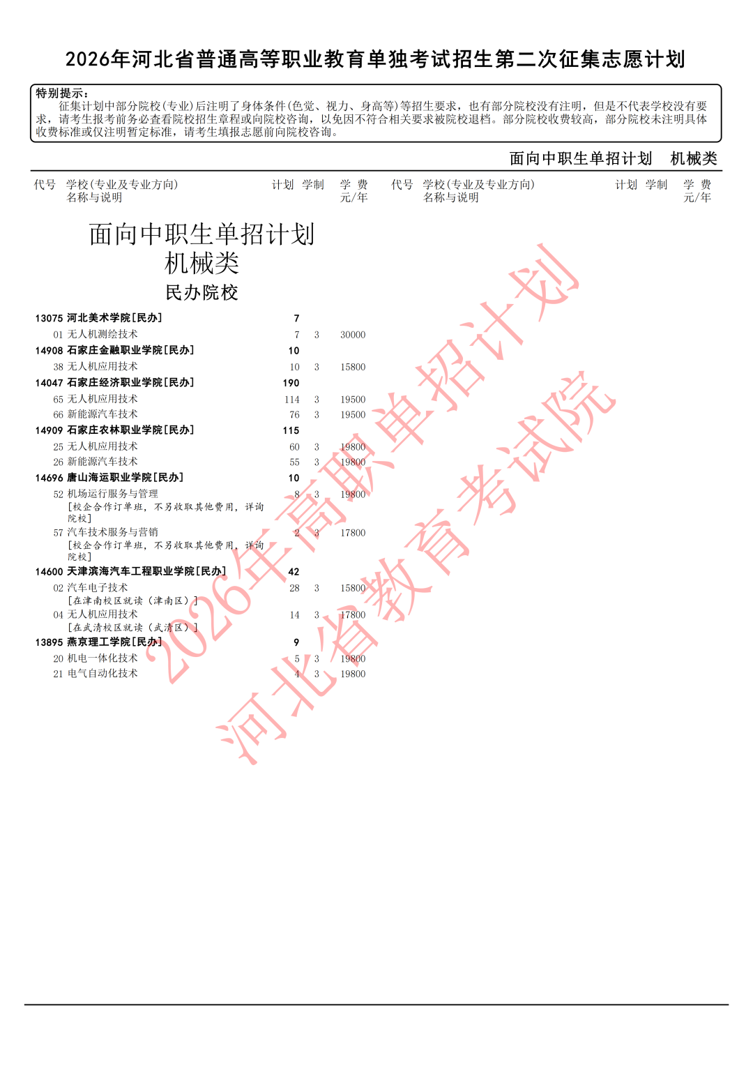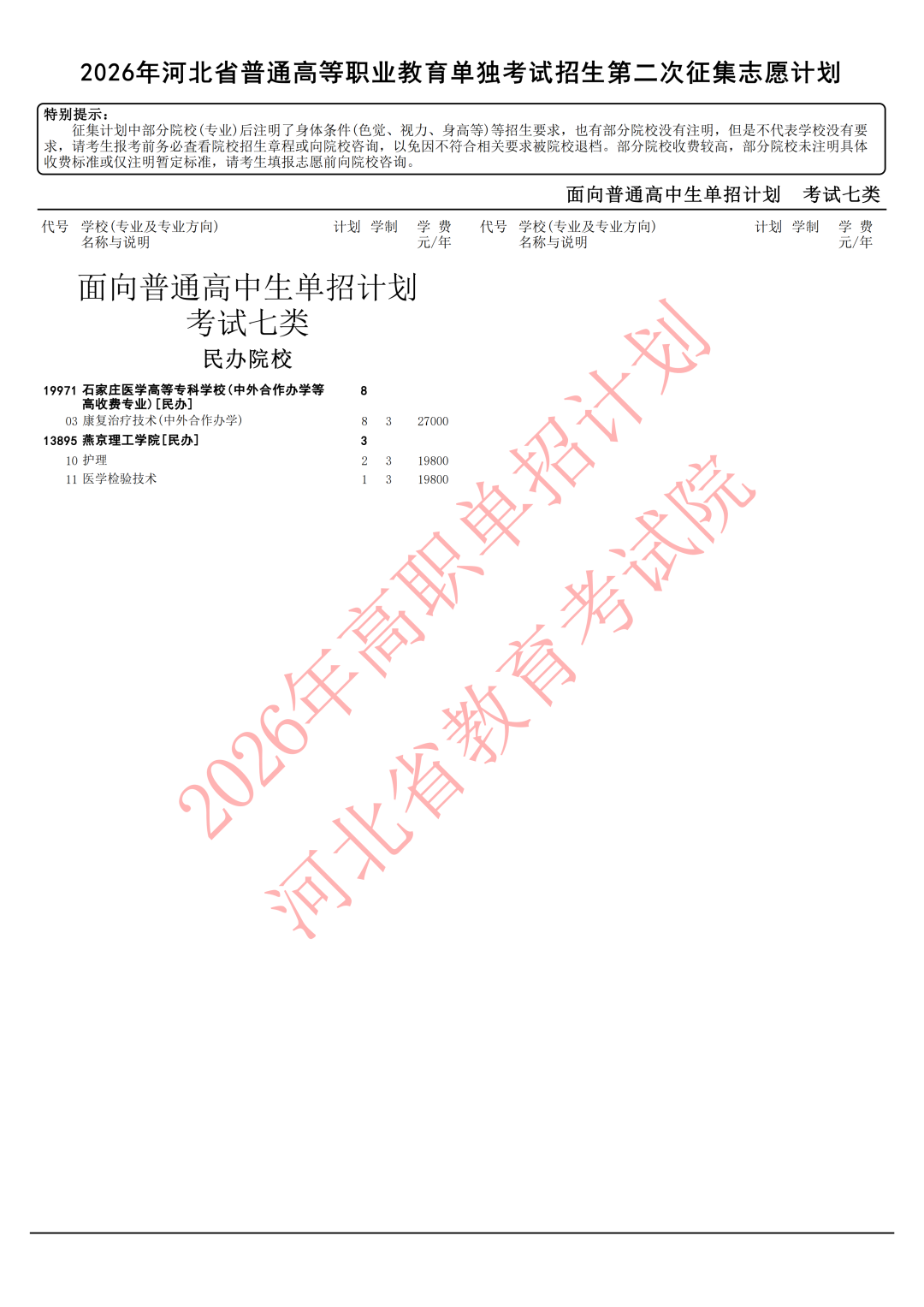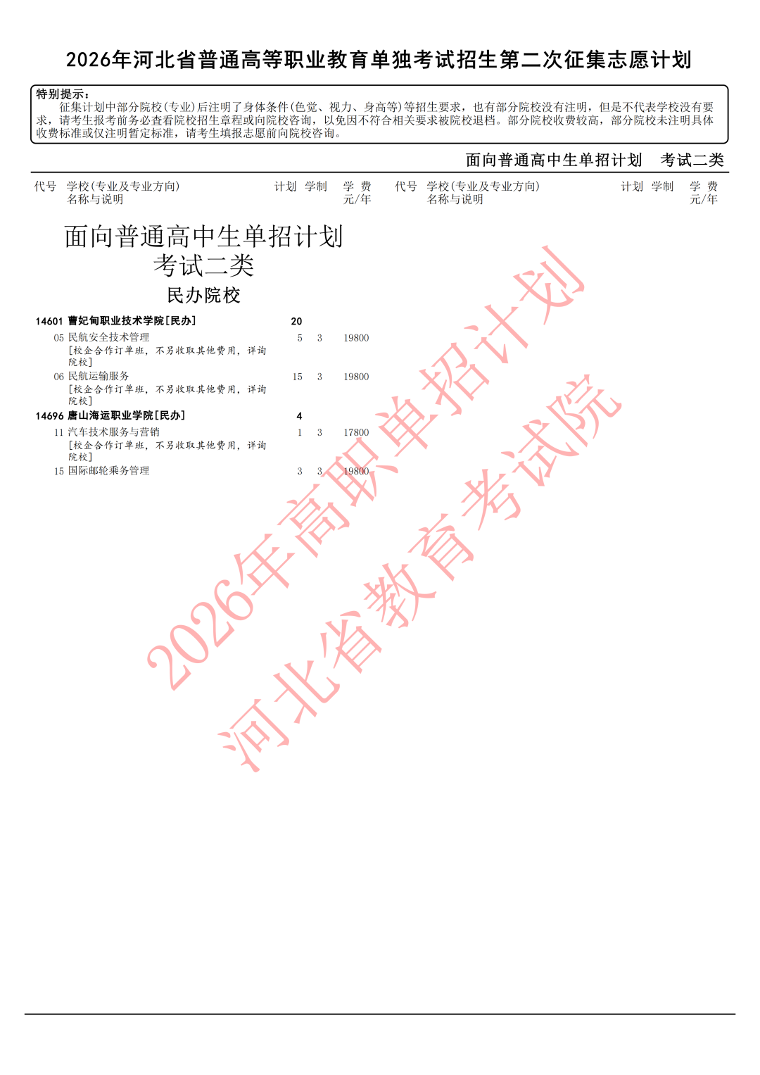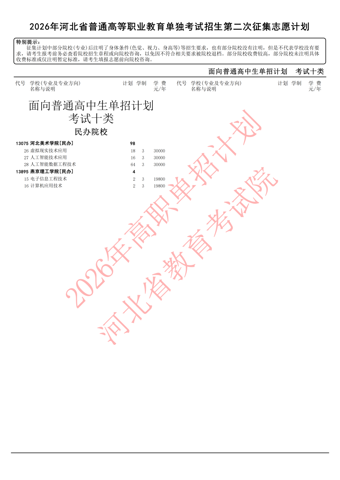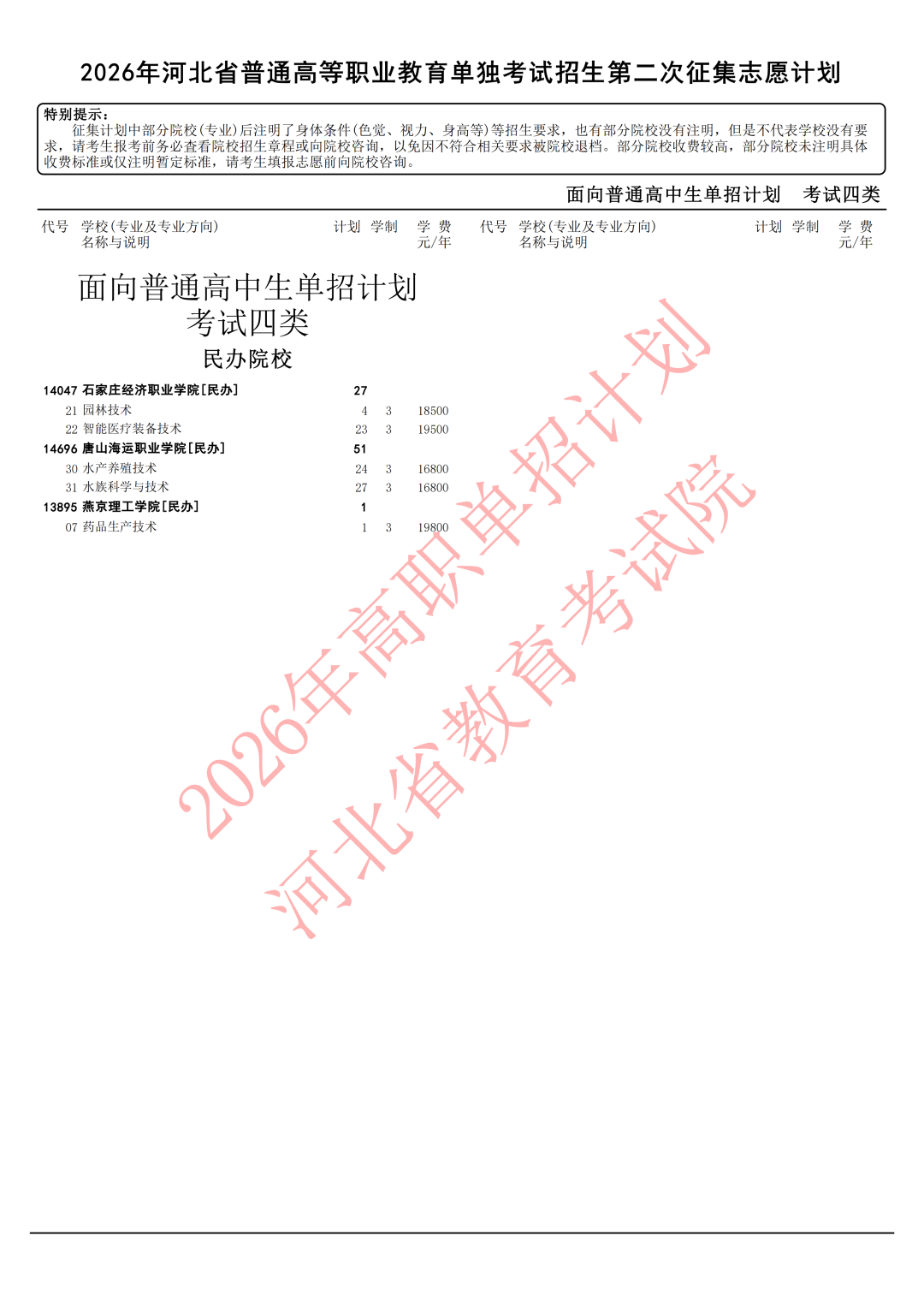 一、2026年河北省普通高等职业教育单独考试招生(简称高职单招)第二次征集志愿填报时间为4月22日9时至17时。未查到录取结果的考生,可登录河北省教育考试院官网“高职单招综合管理平台”,根据自身情况填报征集志愿。