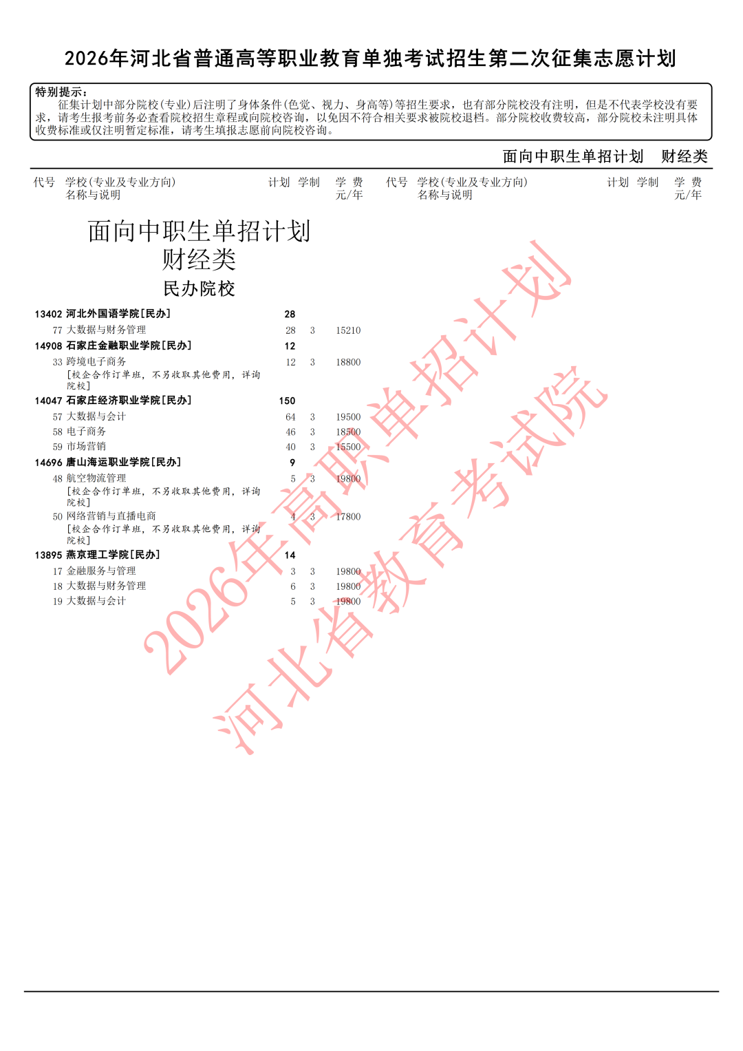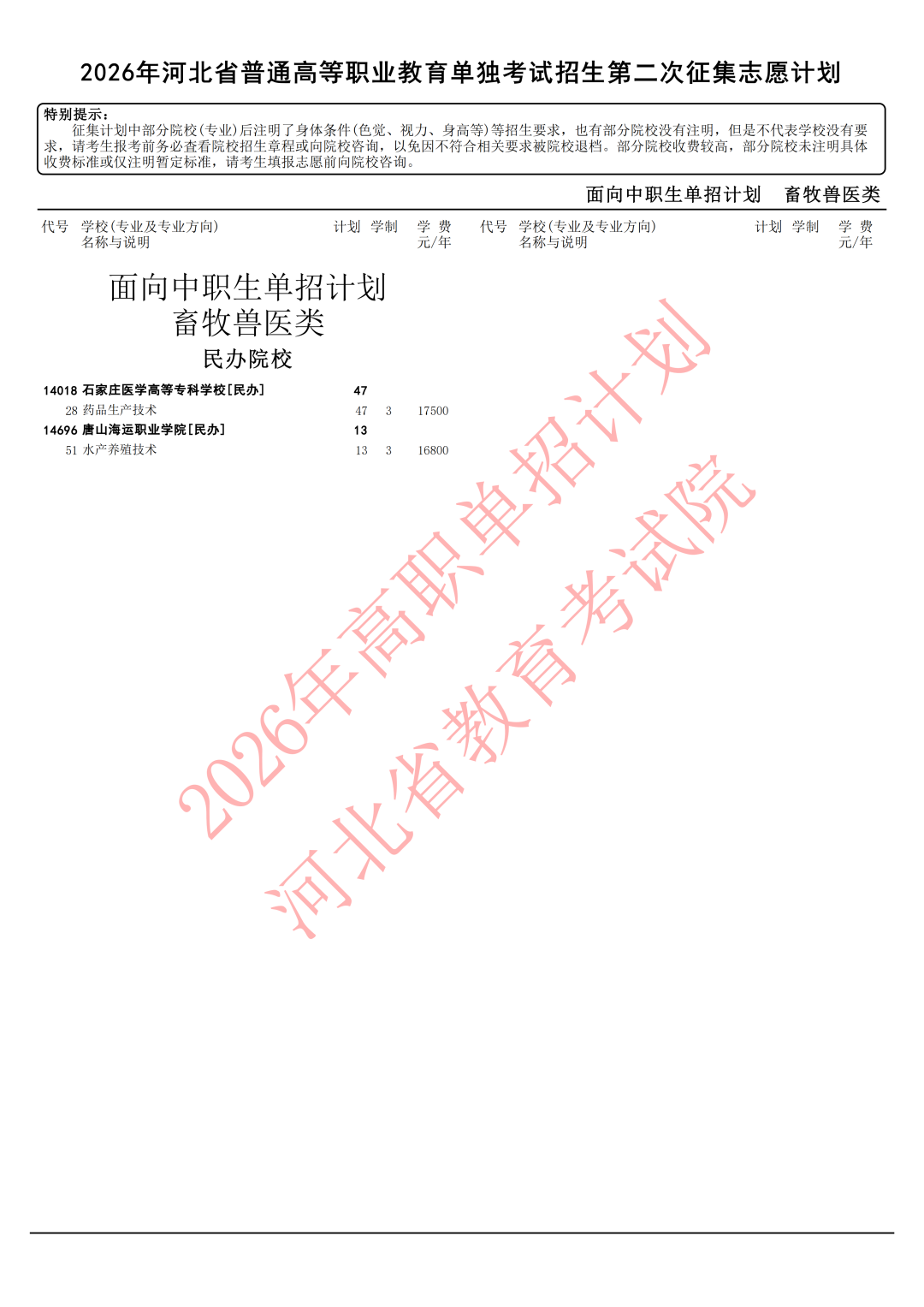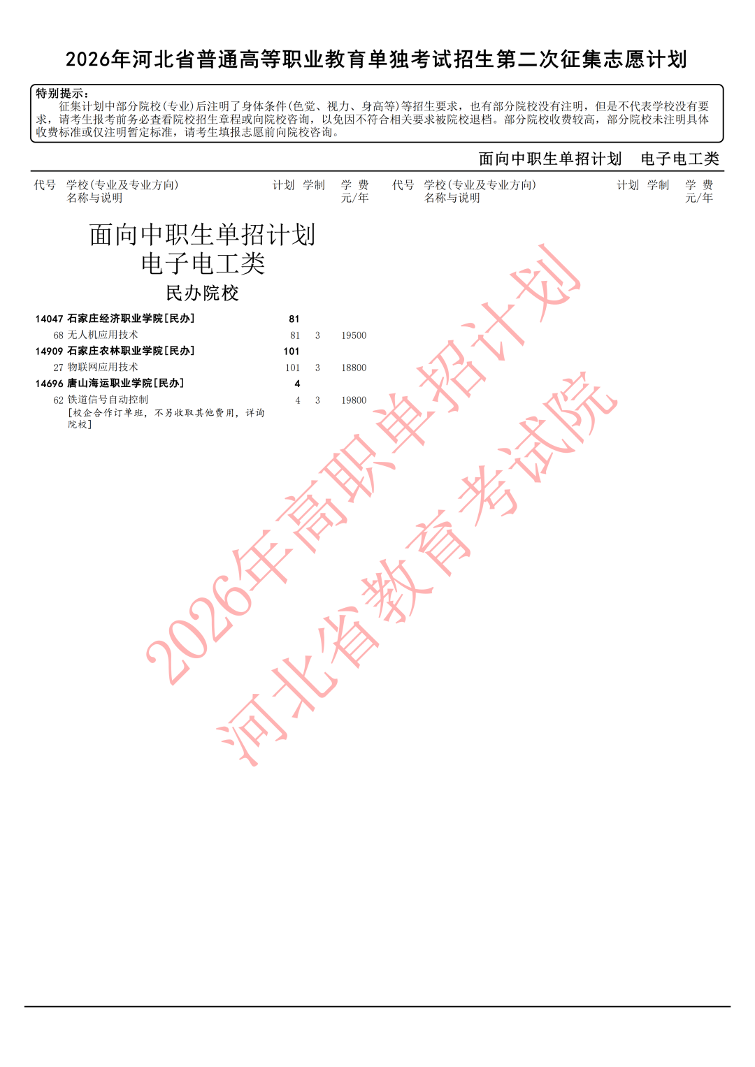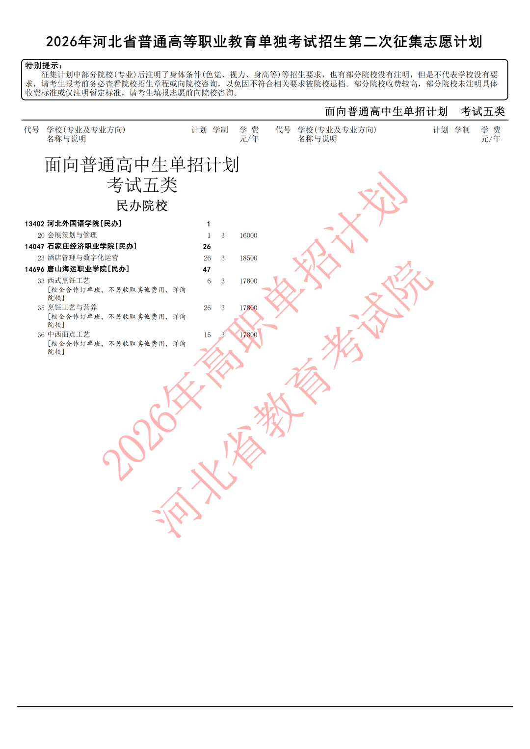 一、2026年河北省普通高等职业教育单独考试招生(简称高职单招)第二次征集志愿填报时间为4月22日9时至17时。未查到录取结果的考生,可登录河北省教育考试院官网“高职单招综合管理平台”,根据自身情况填报征集志愿。