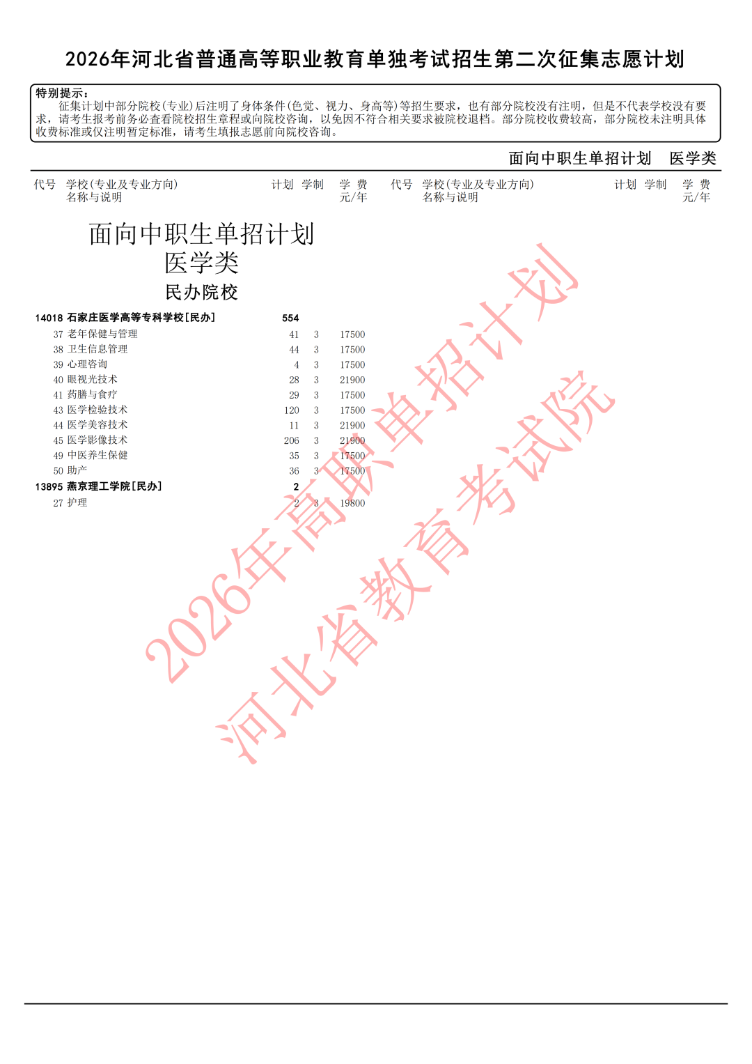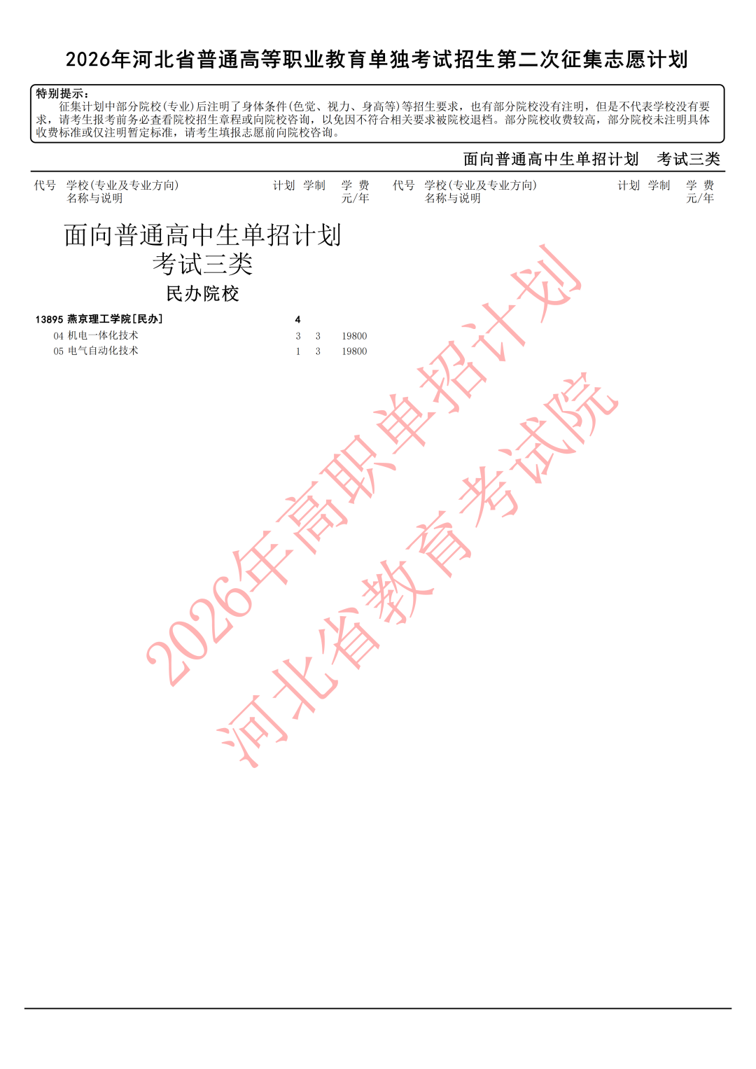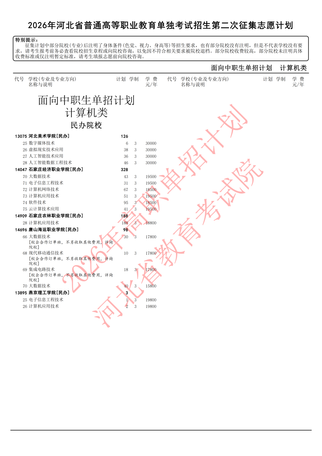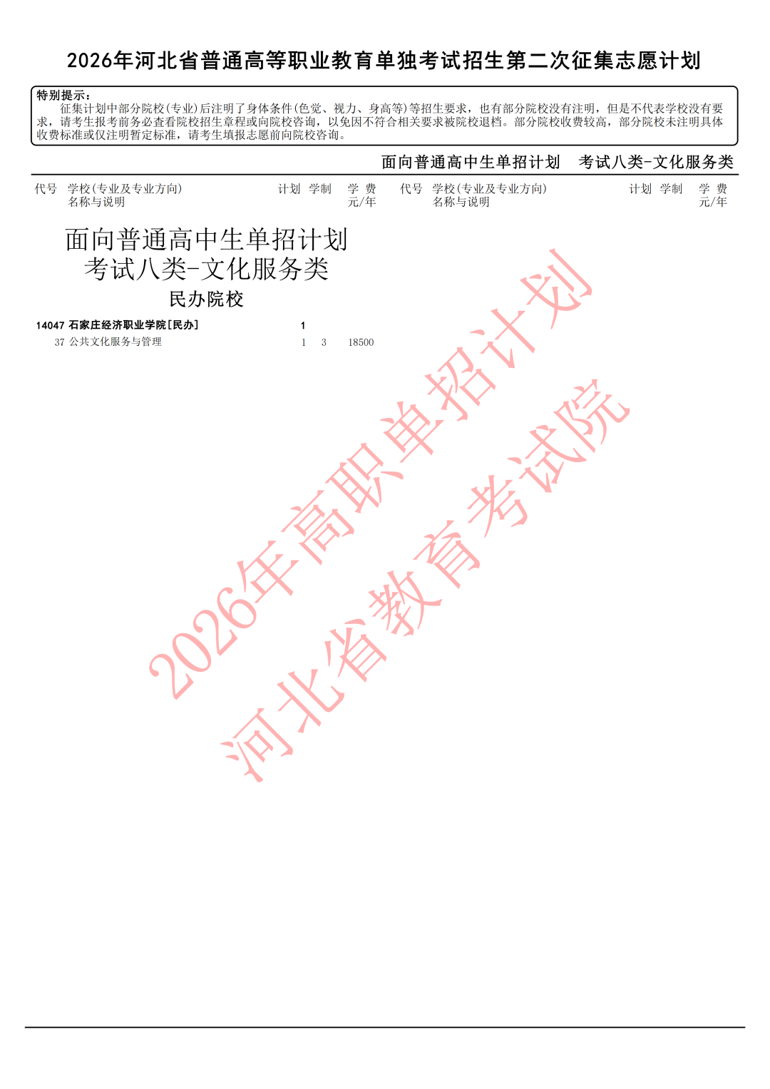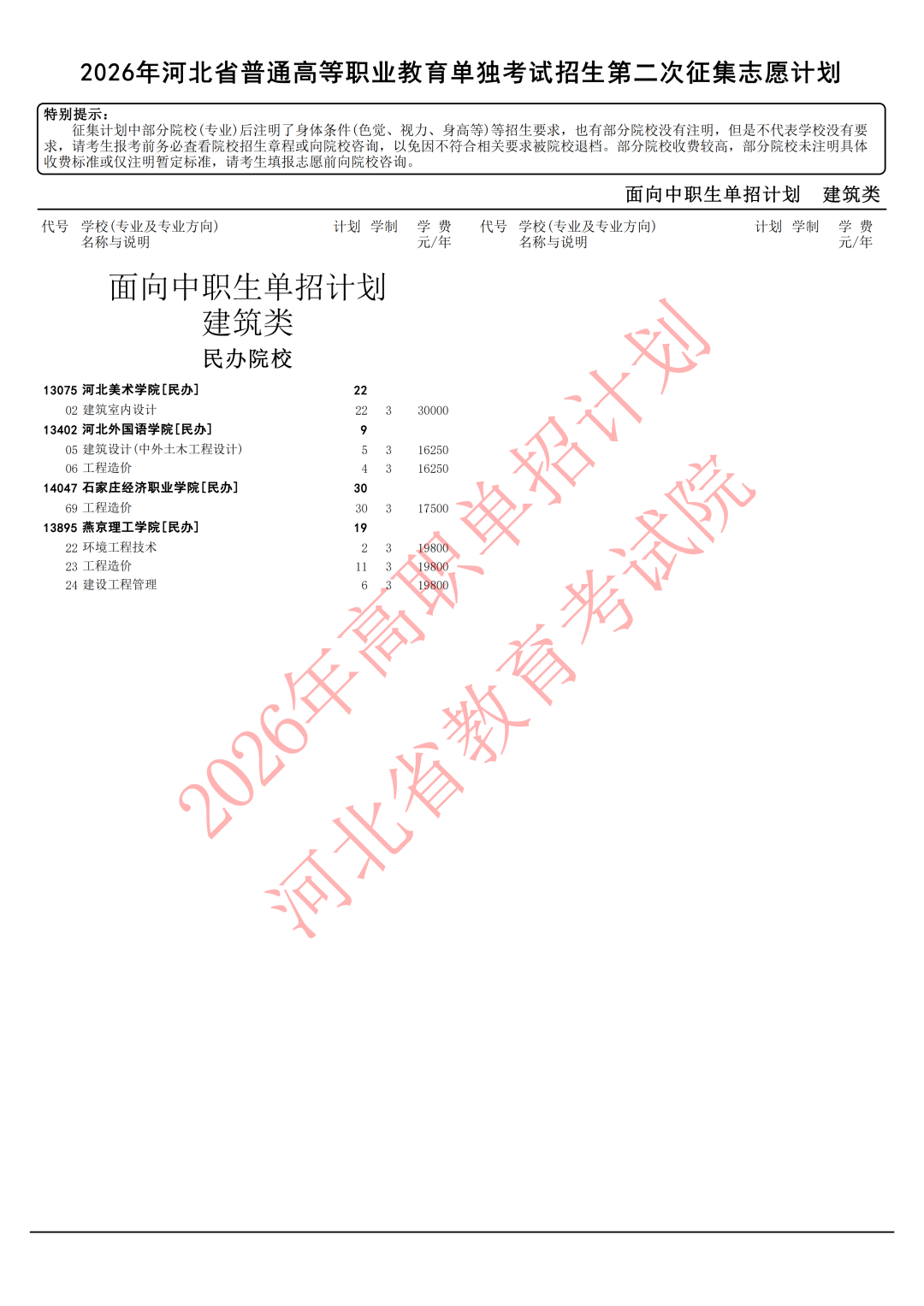 一、2026年河北省普通高等职业教育单独考试招生(简称高职单招)第二次征集志愿填报时间为4月22日9时至17时。未查到录取结果的考生,可登录河北省教育考试院官网“高职单招综合管理平台”,根据自身情况填报征集志愿。