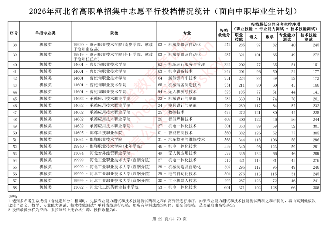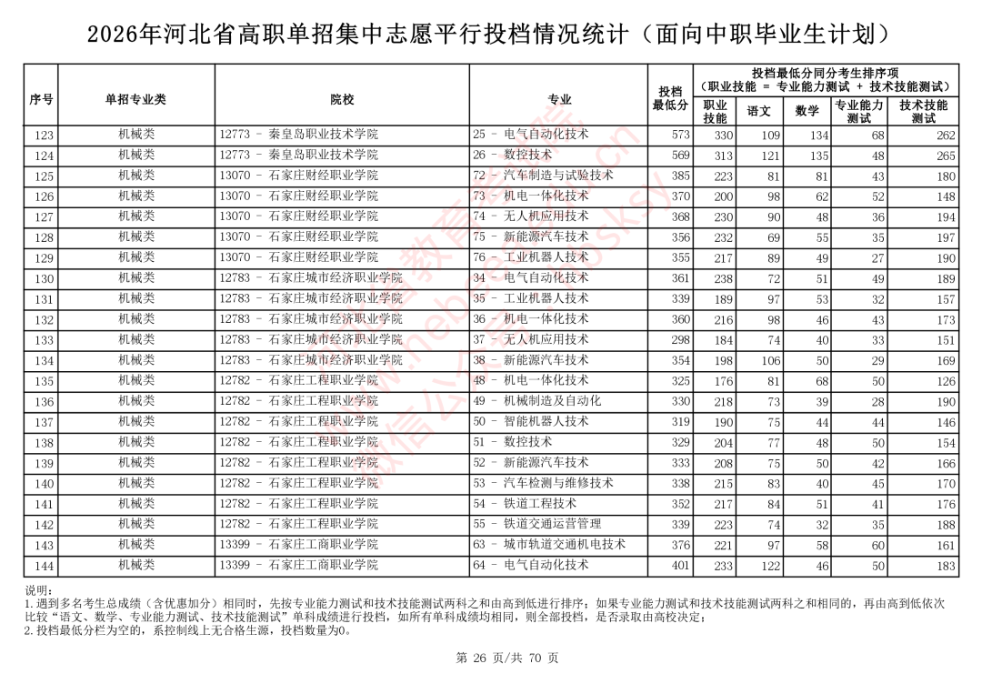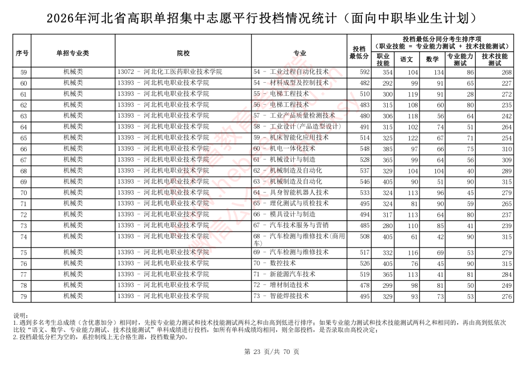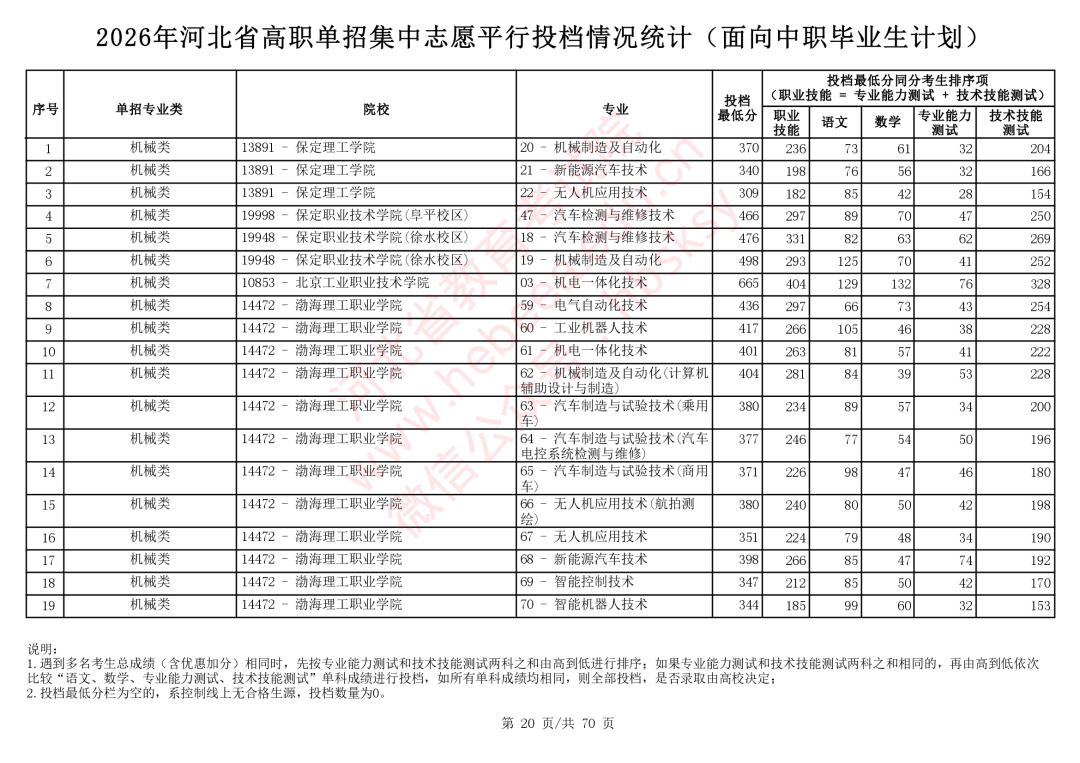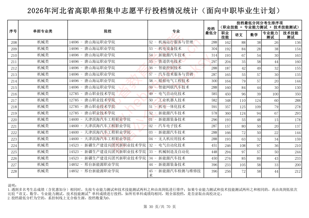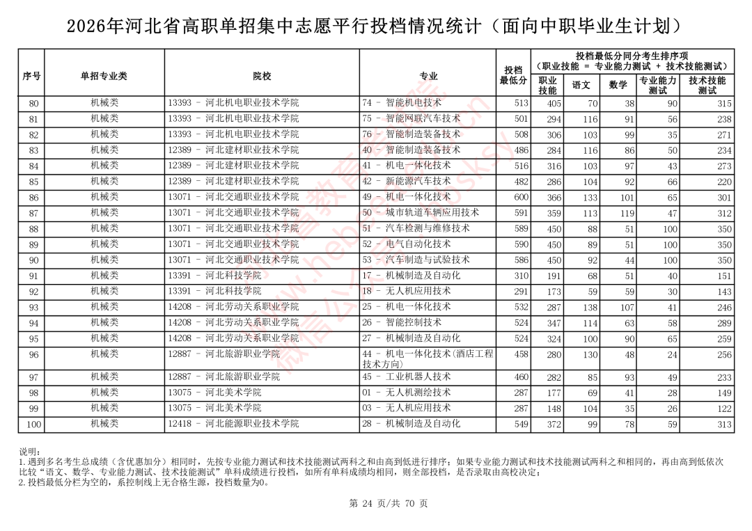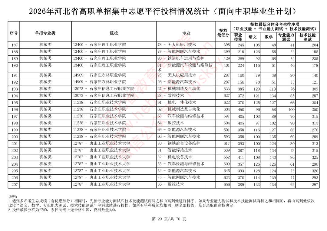 2026年河北省高职单招集中志愿平行投档情况统计(面向中职毕业生计划)