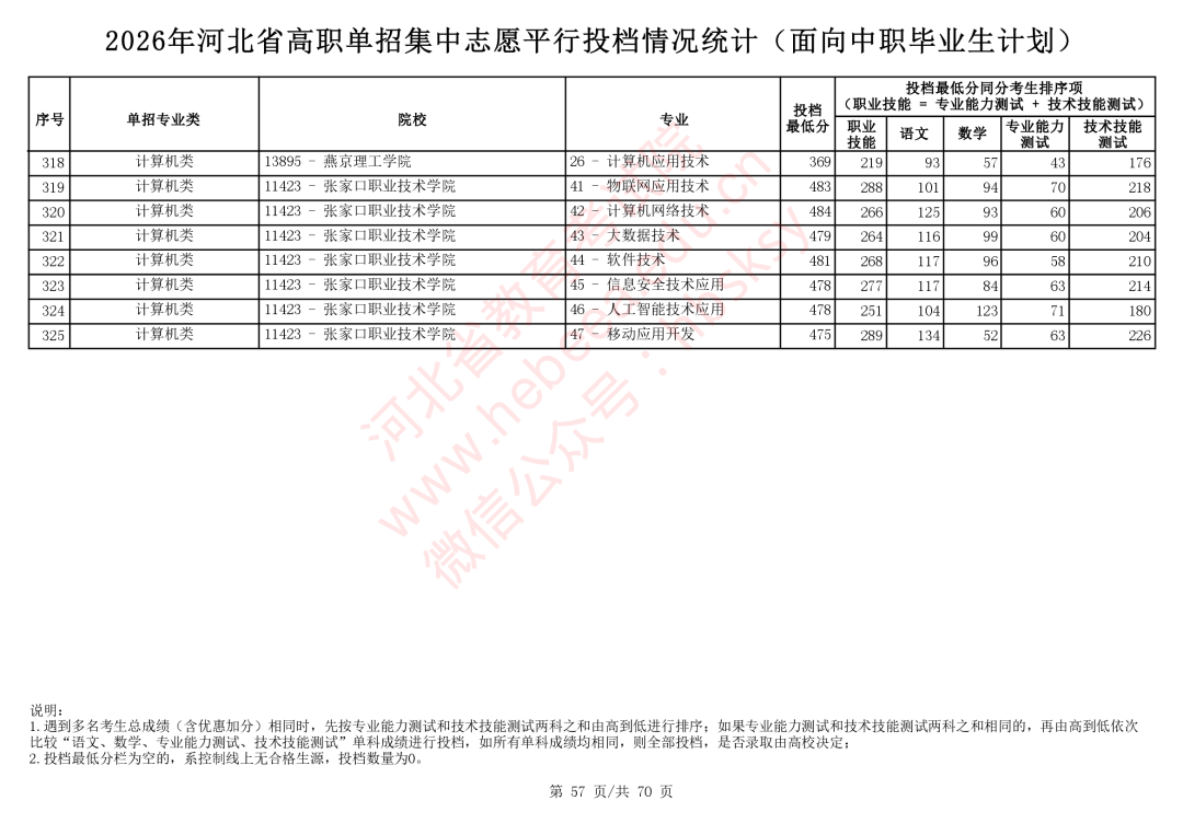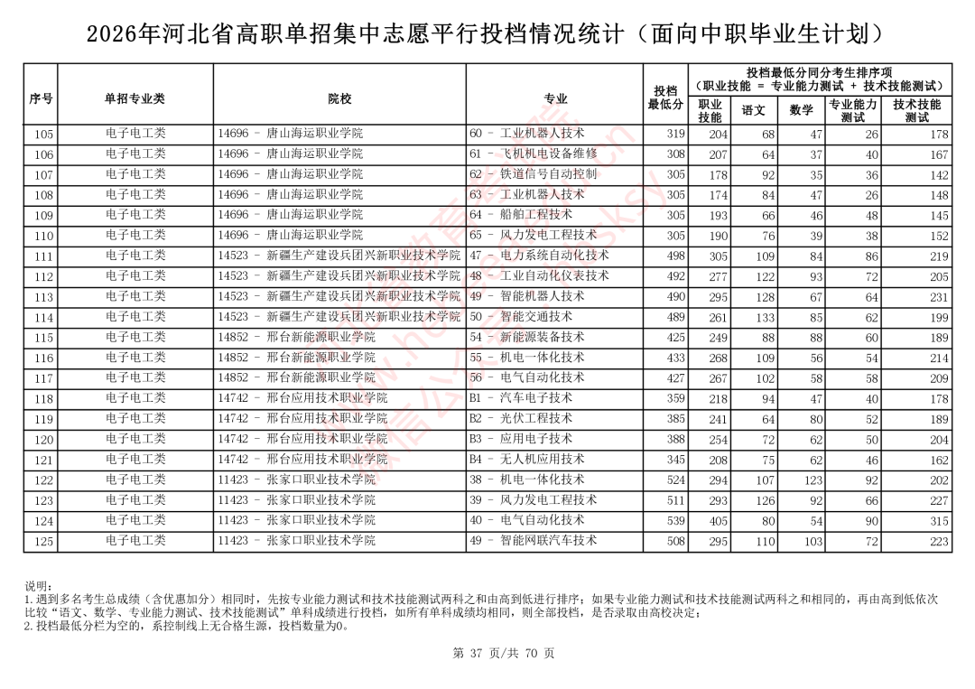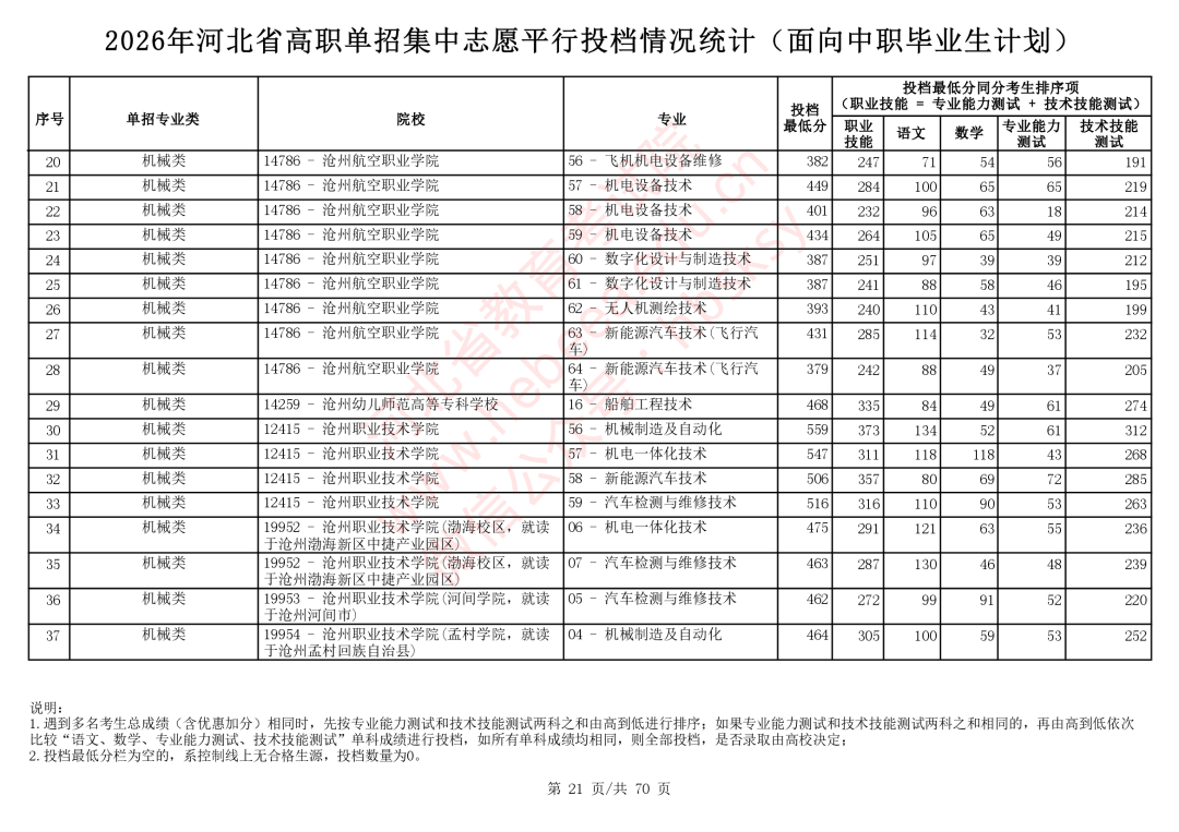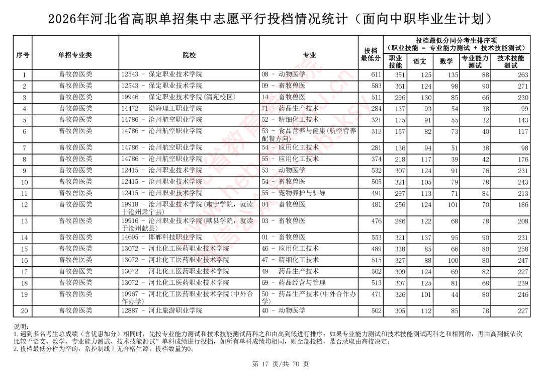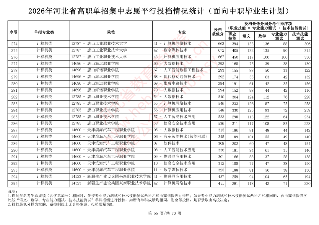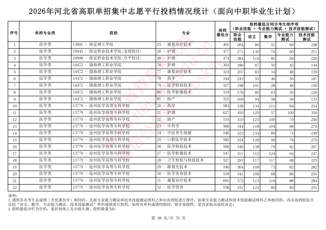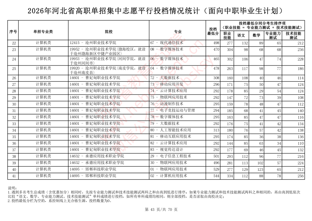 2026年河北省高职单招集中志愿平行投档情况统计(面向中职毕业生计划)
