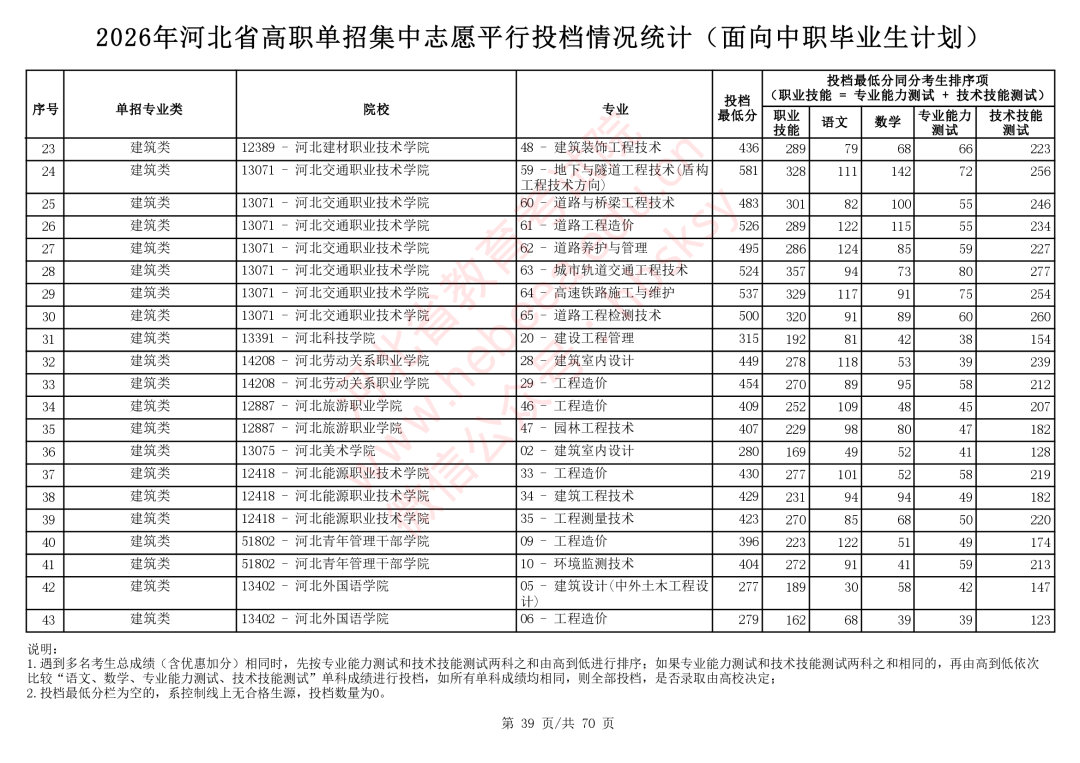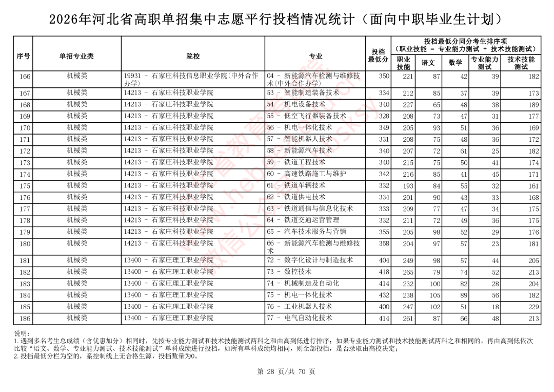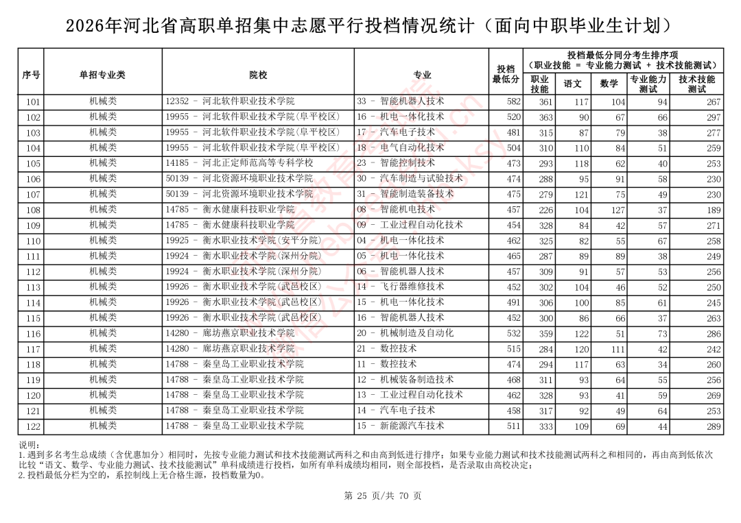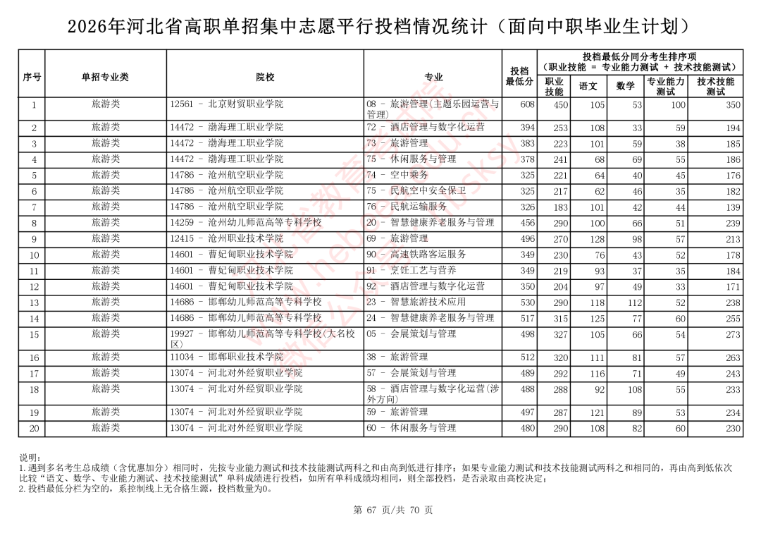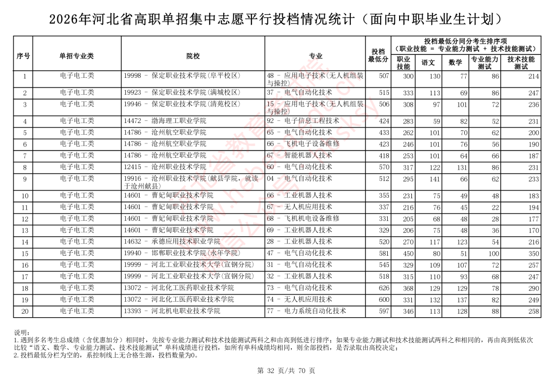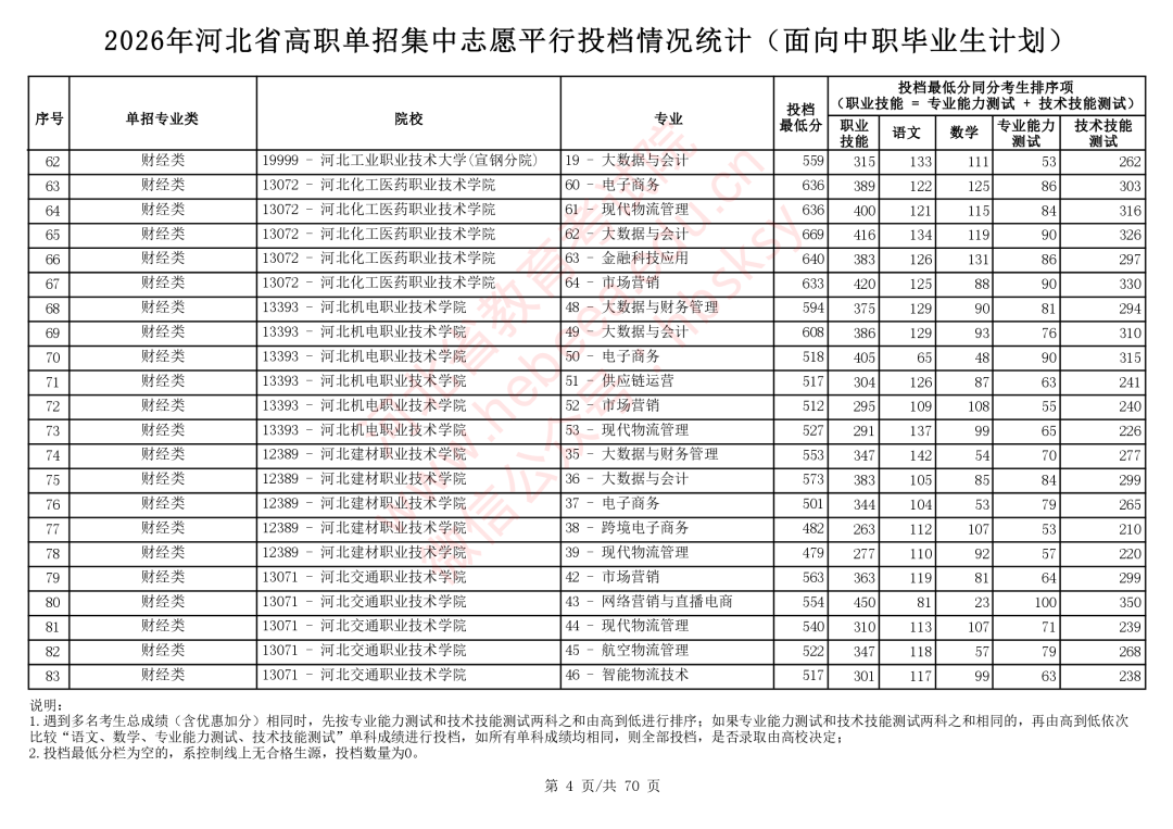 2026年河北省高职单招集中志愿平行投档情况统计(面向中职毕业生计划)