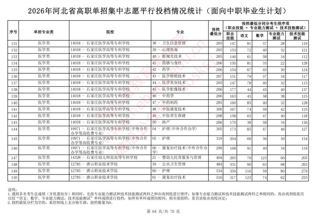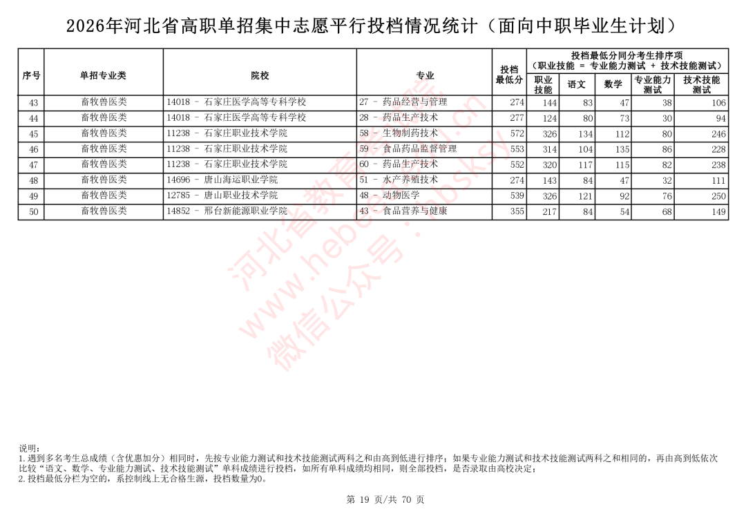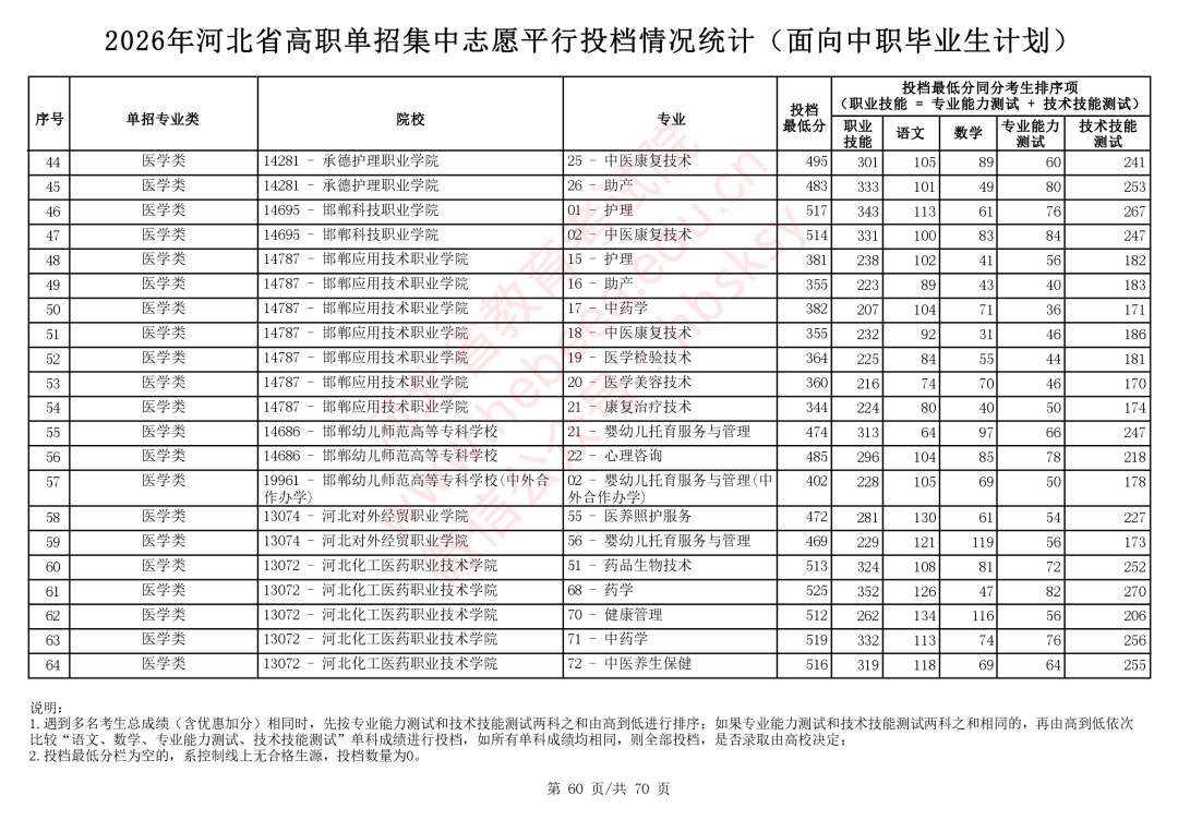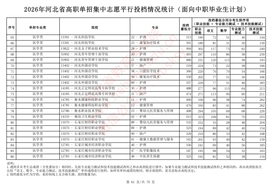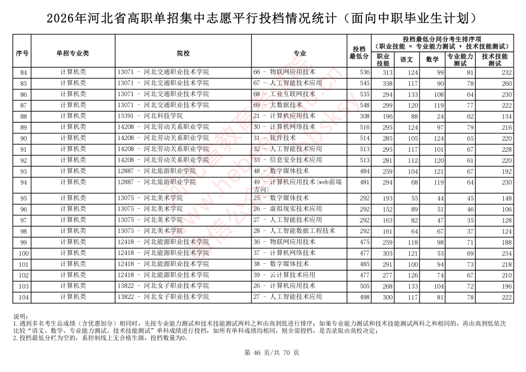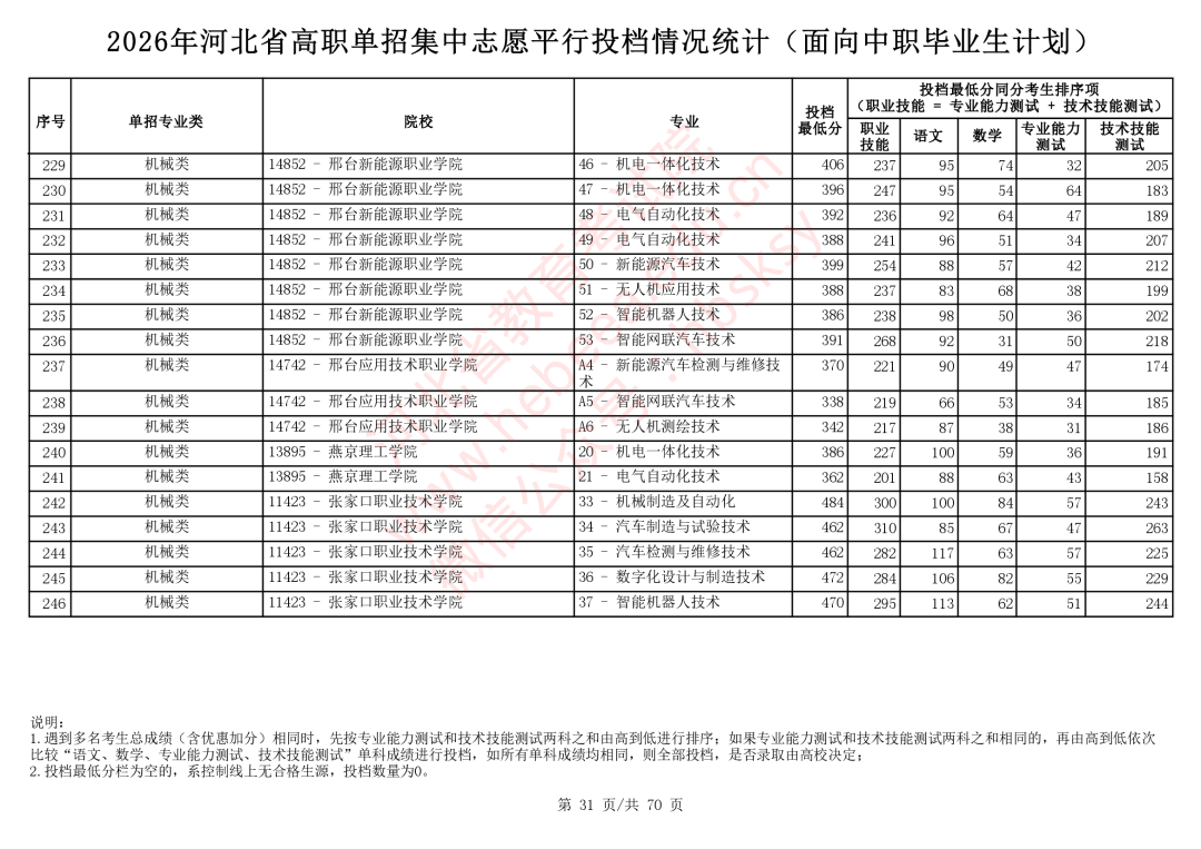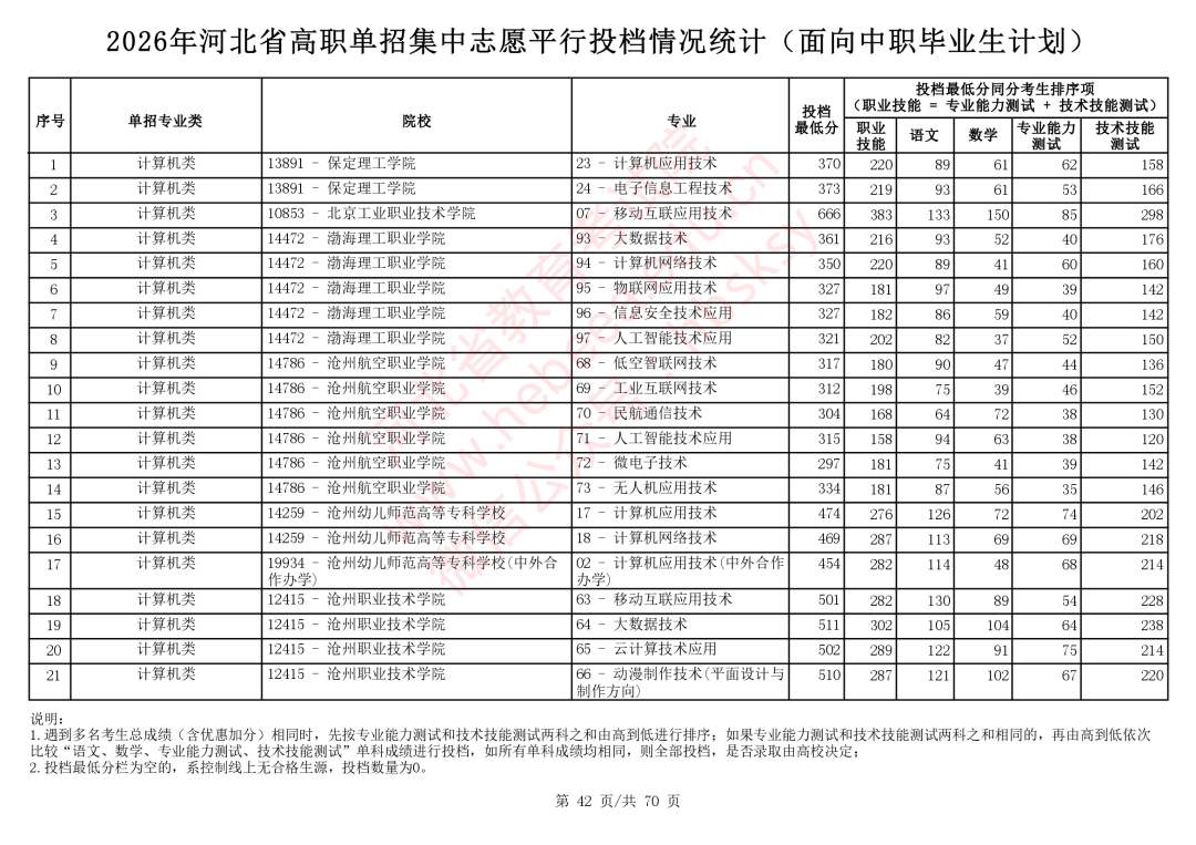 2026年河北省高职单招集中志愿平行投档情况统计(面向中职毕业生计划)