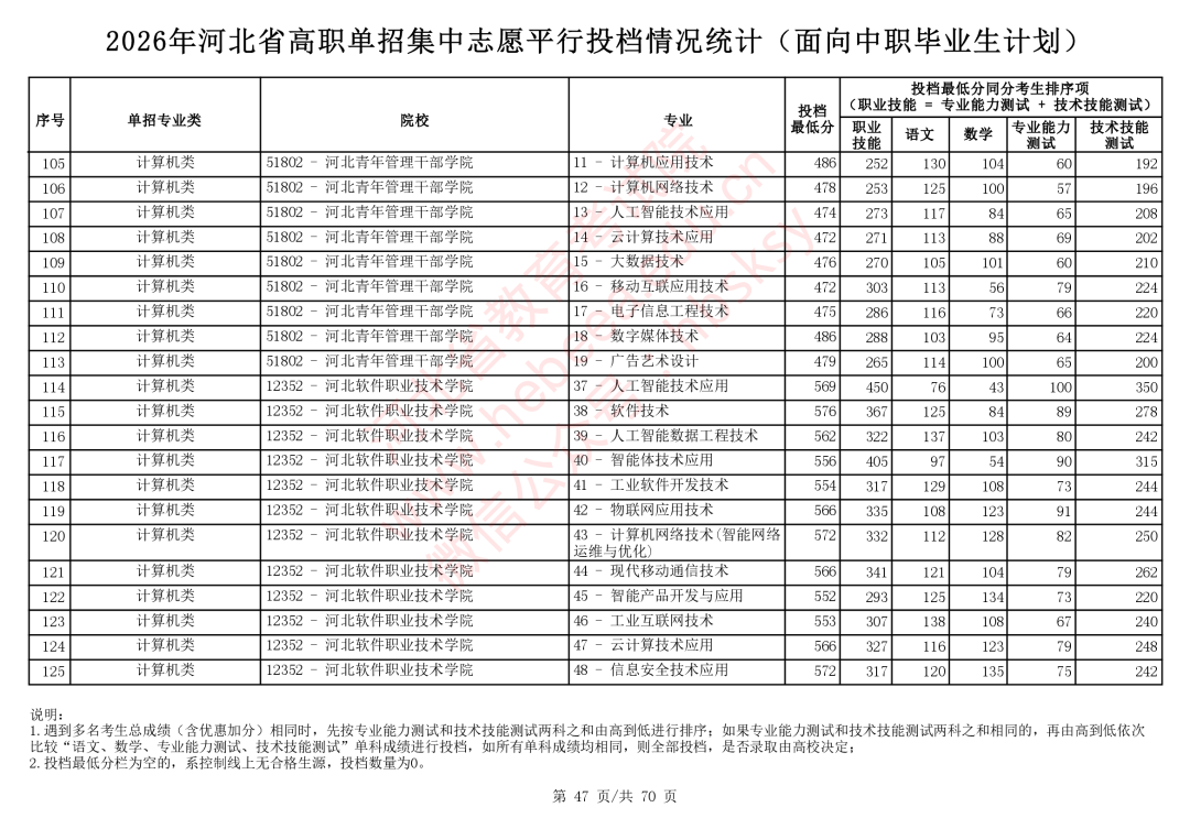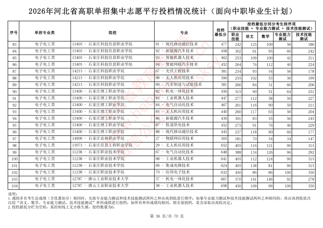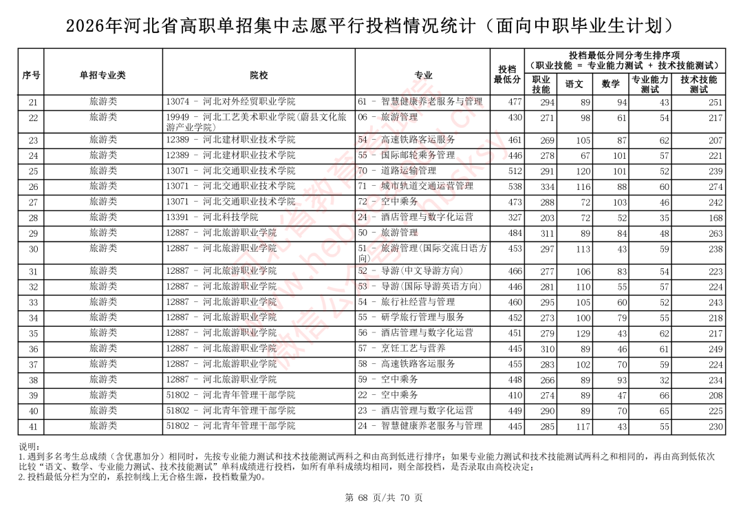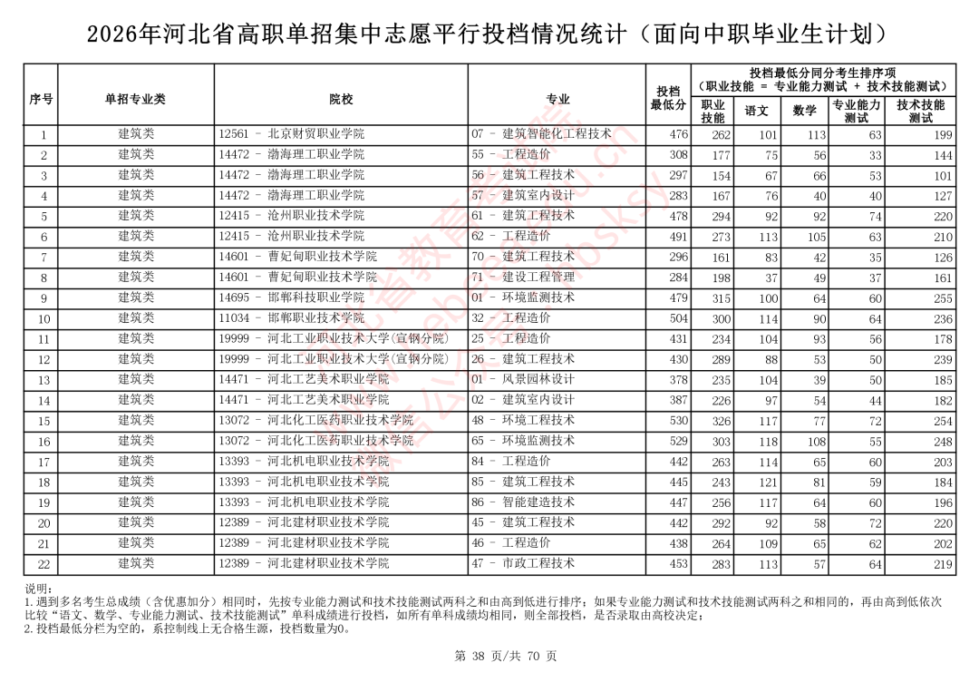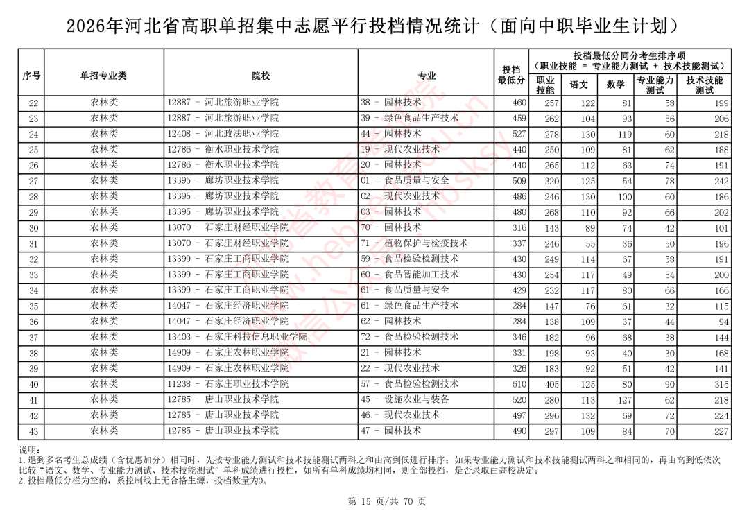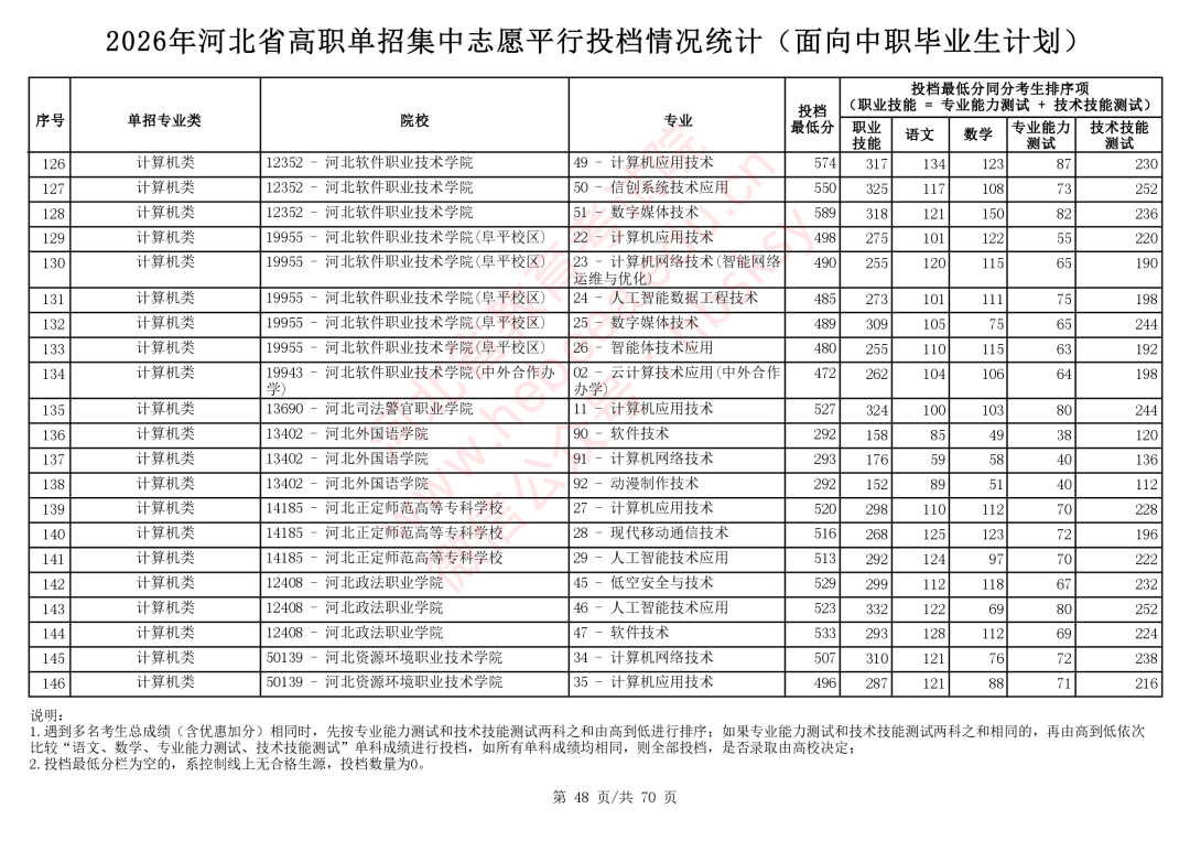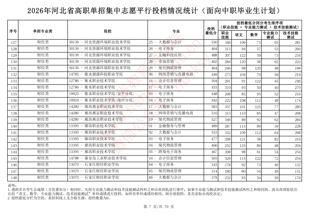2026年河北省高职单招集中志愿平行投档情况统计(面向中职毕业生计划)
