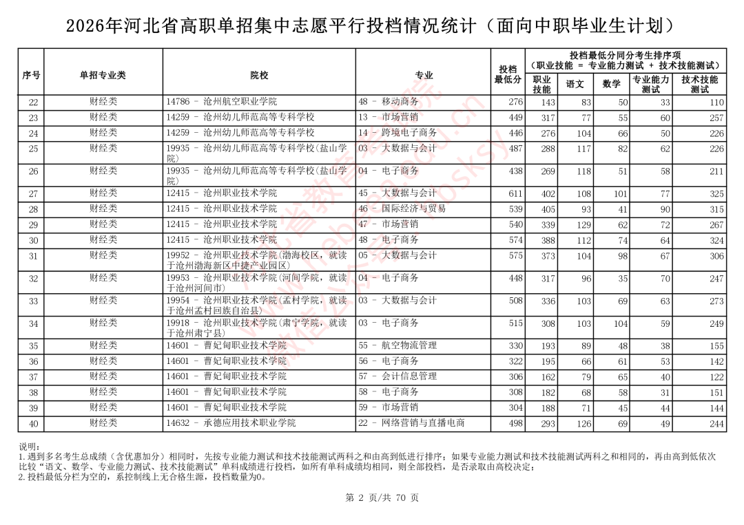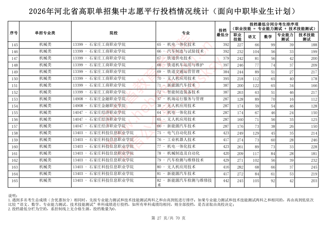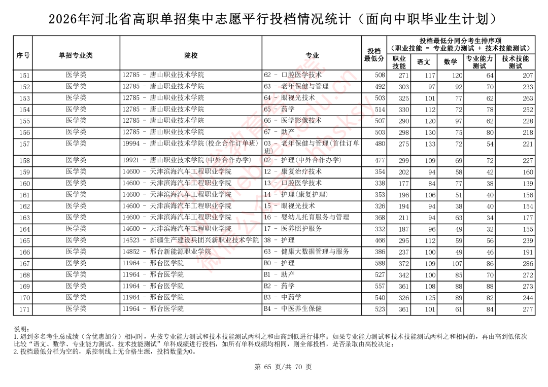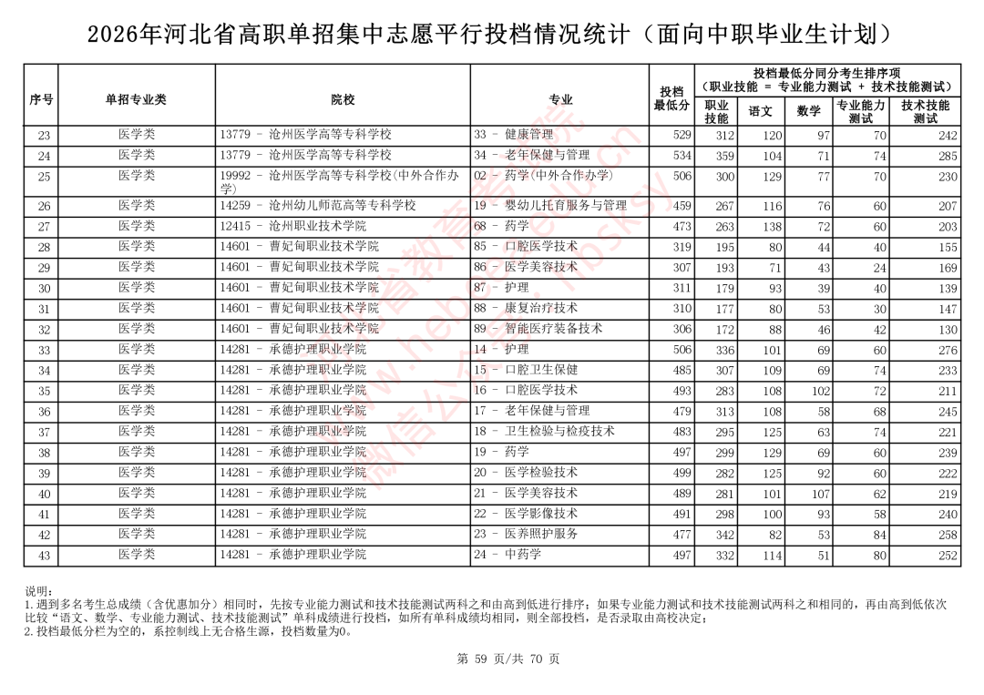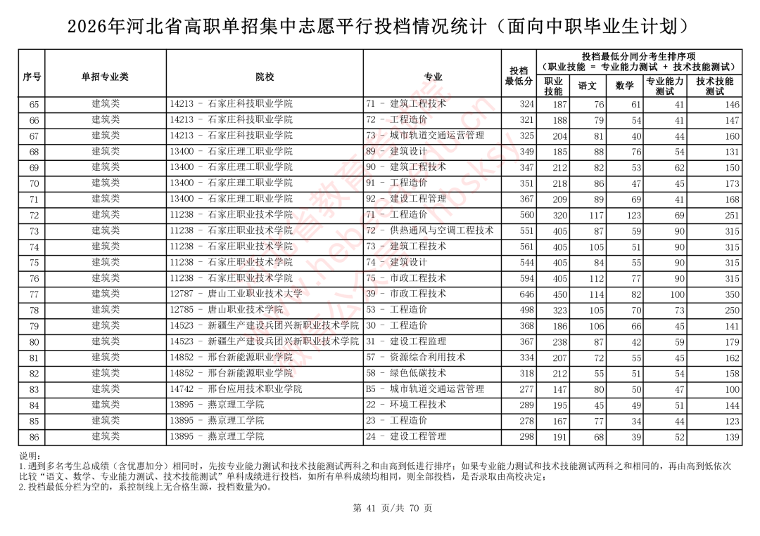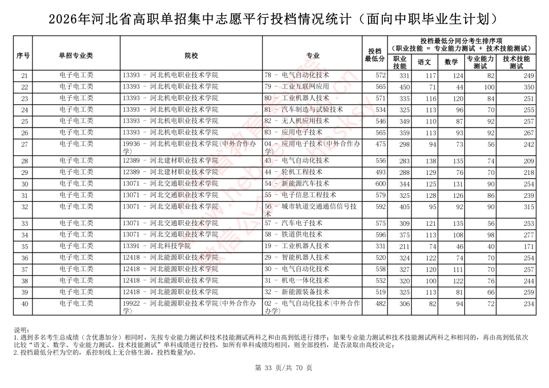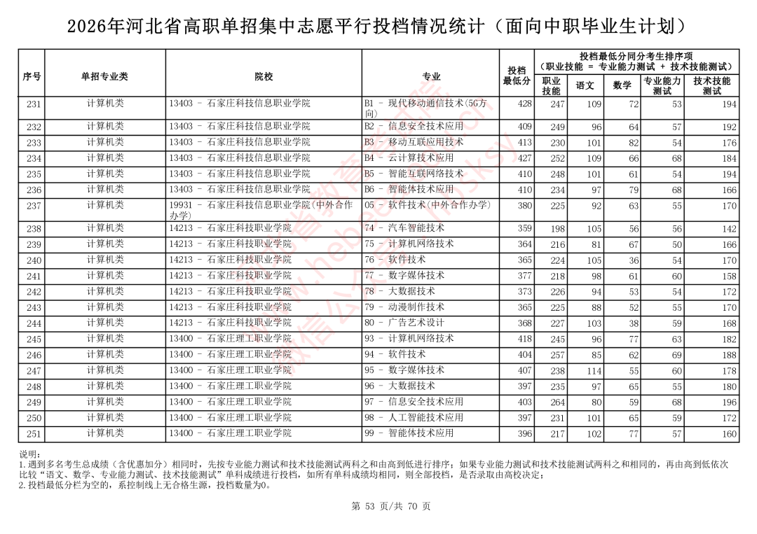2026年河北省高职单招集中志愿平行投档情况统计(面向中职毕业生计划)