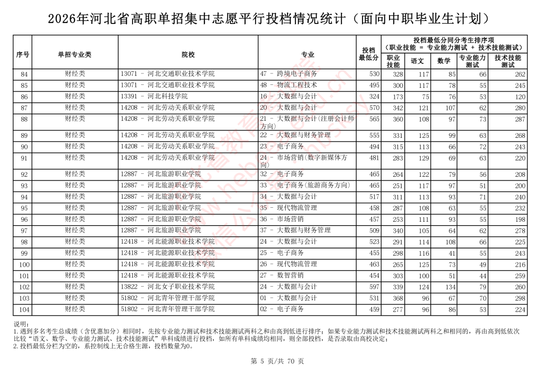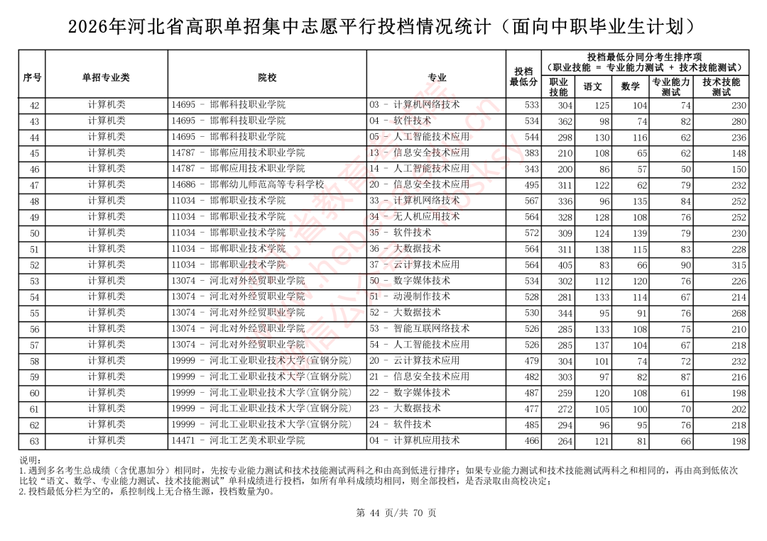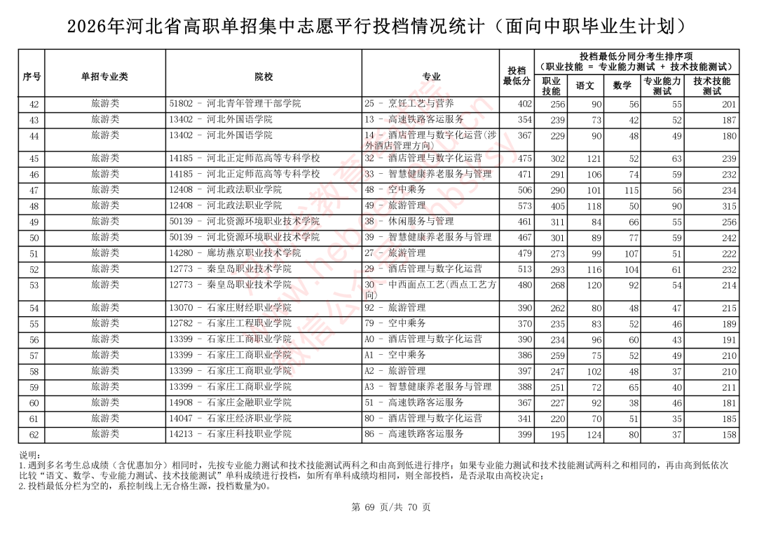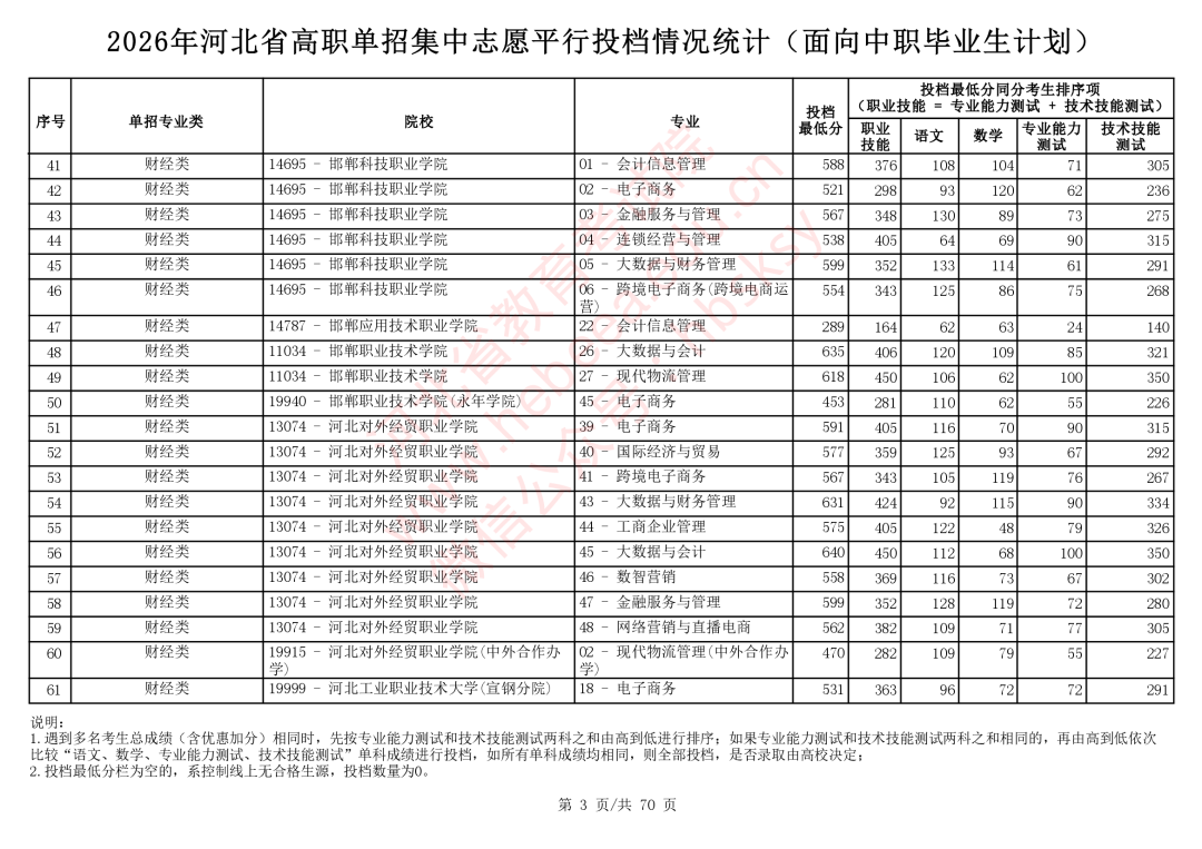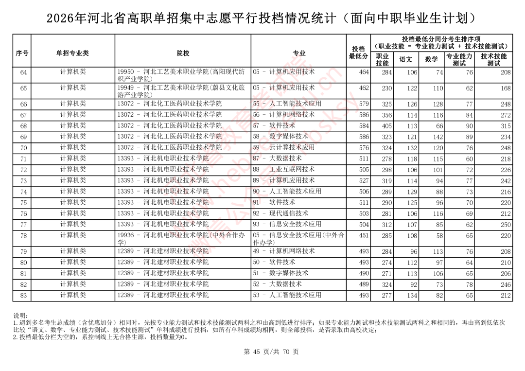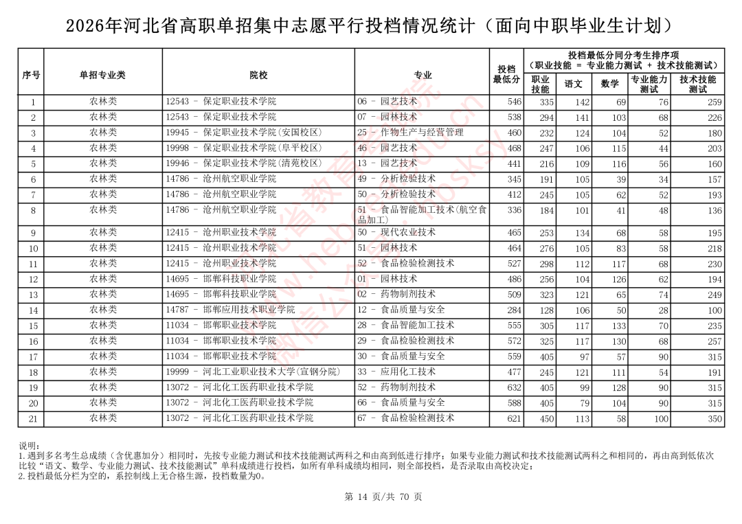 2026年河北省高职单招集中志愿平行投档情况统计(面向中职毕业生计划)