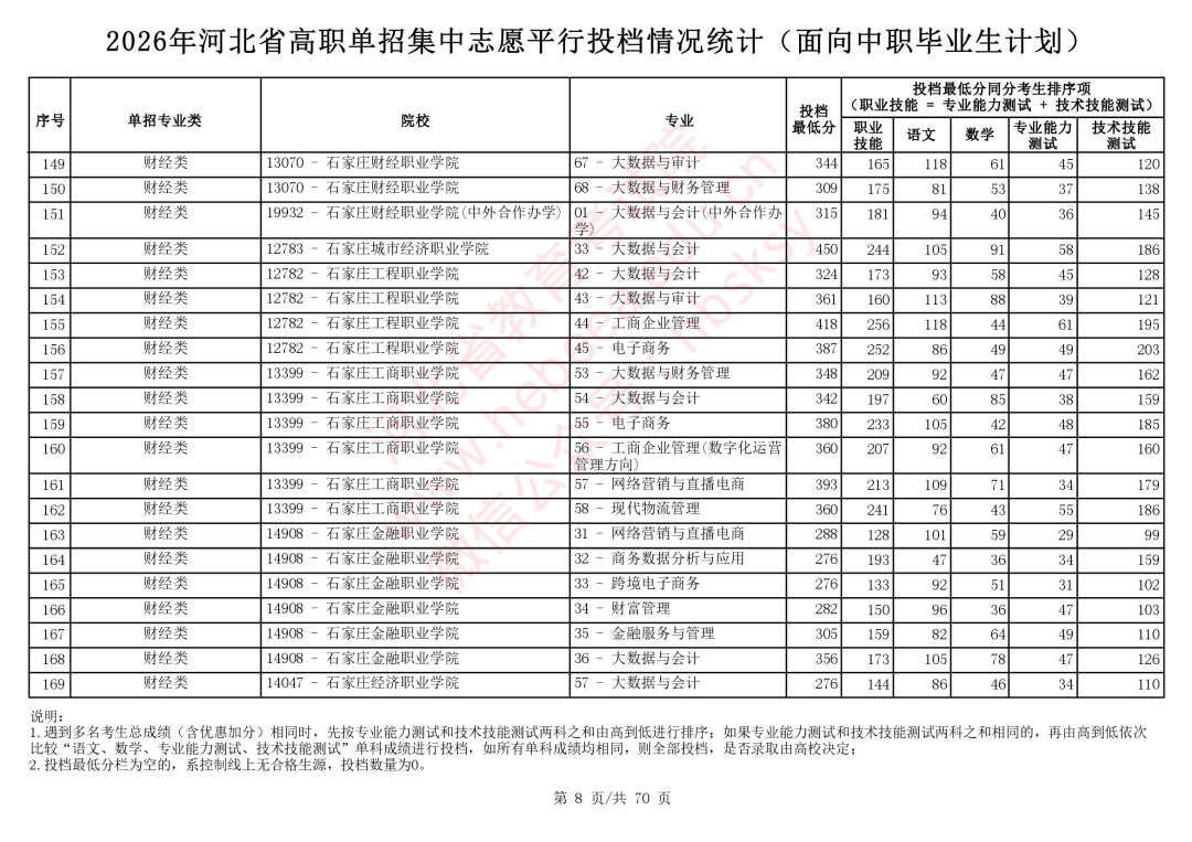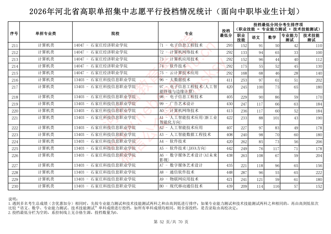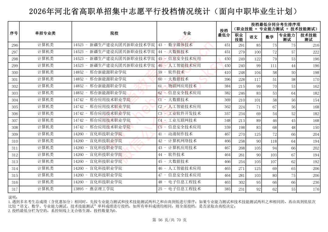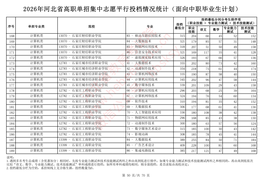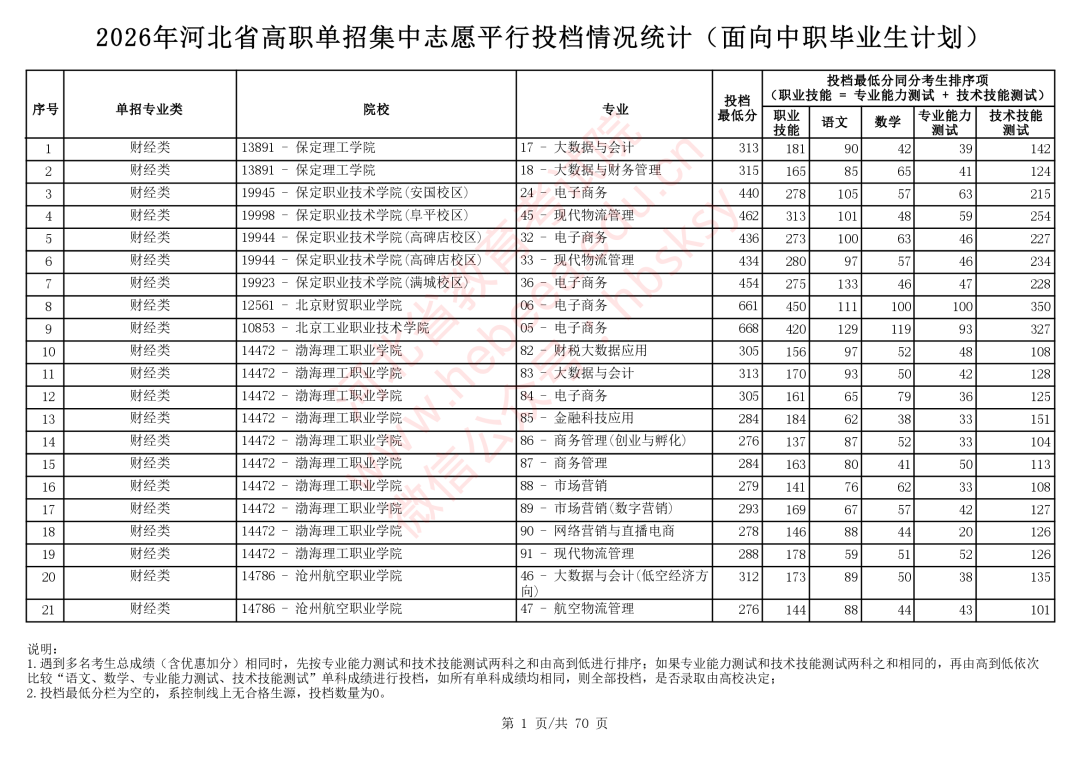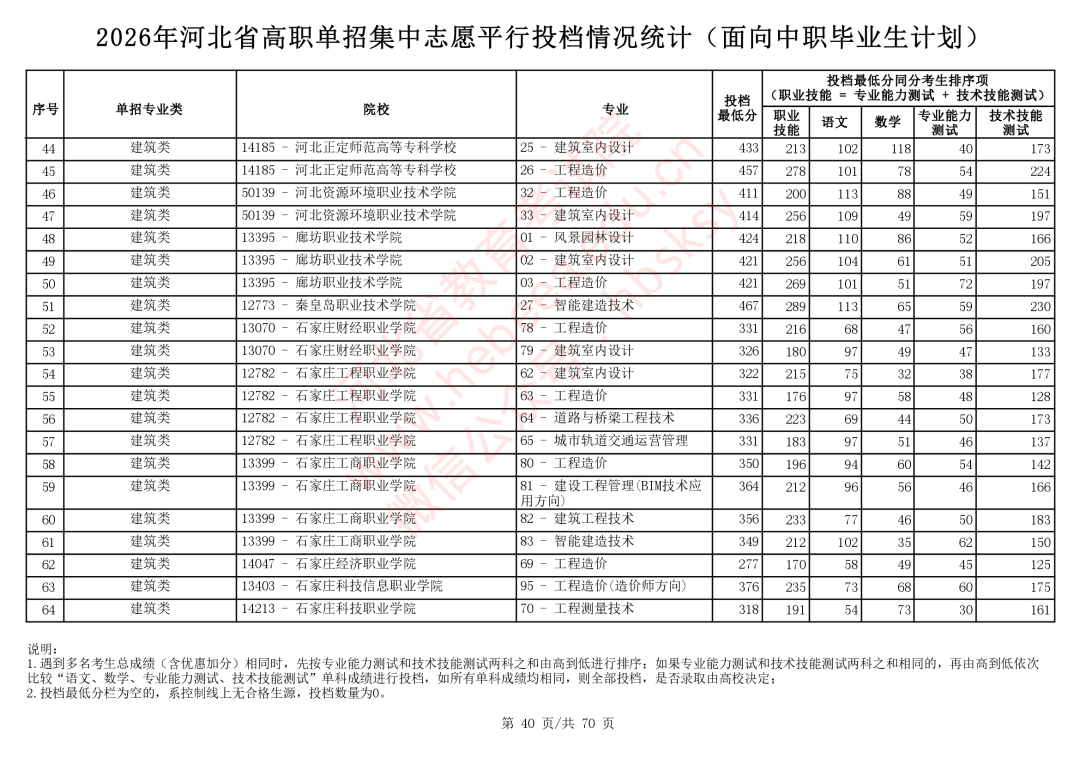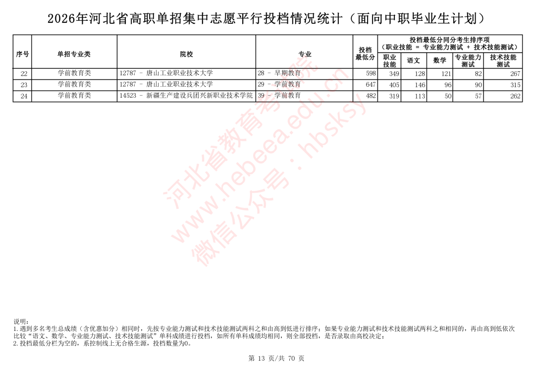 2026年河北省高职单招集中志愿平行投档情况统计(面向中职毕业生计划)