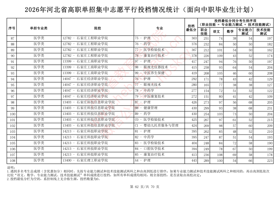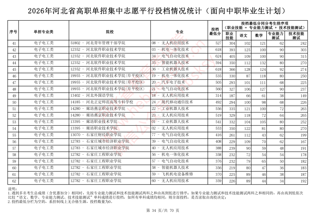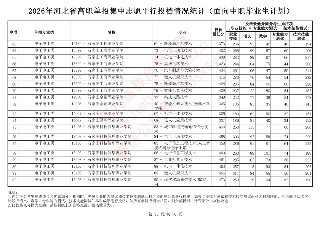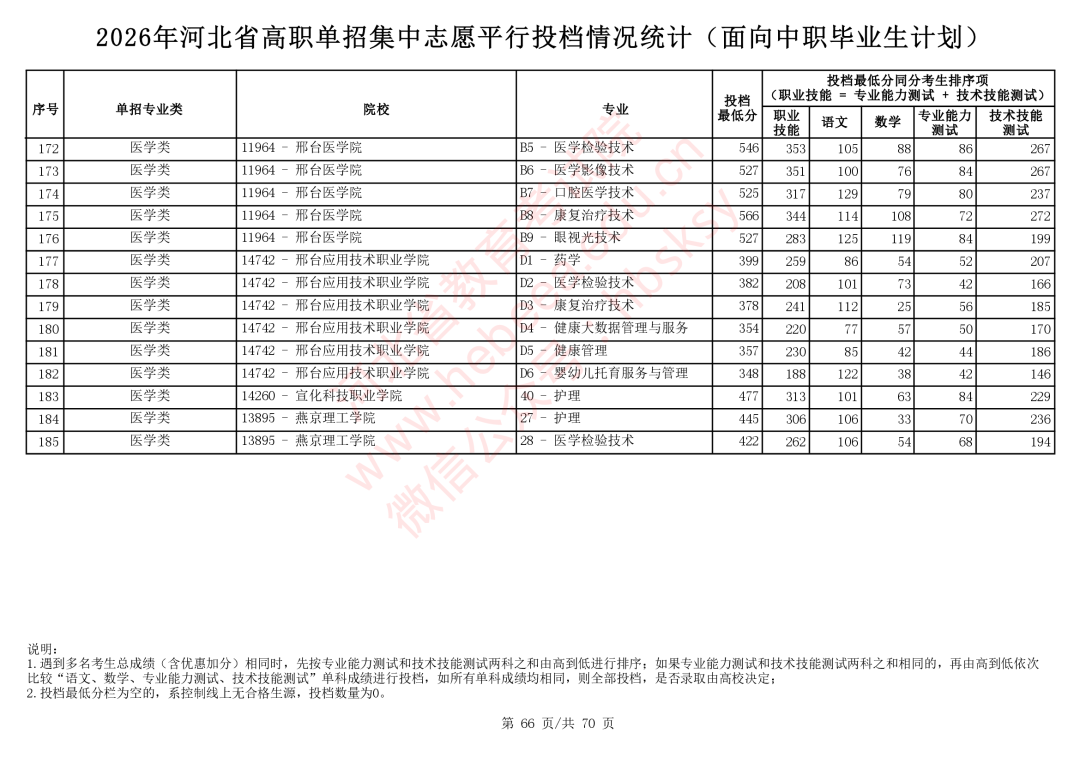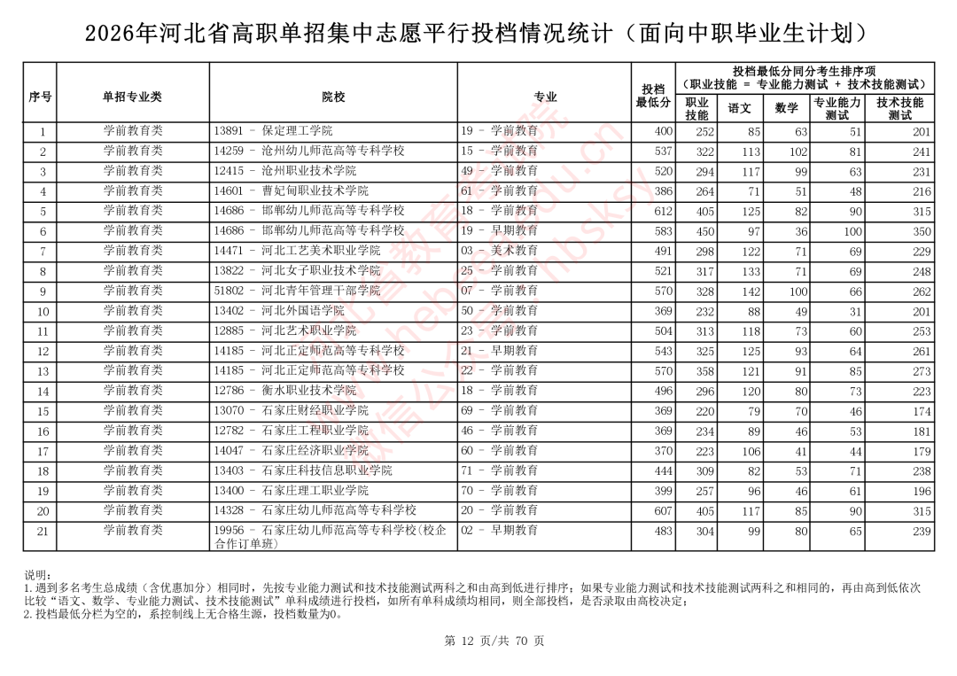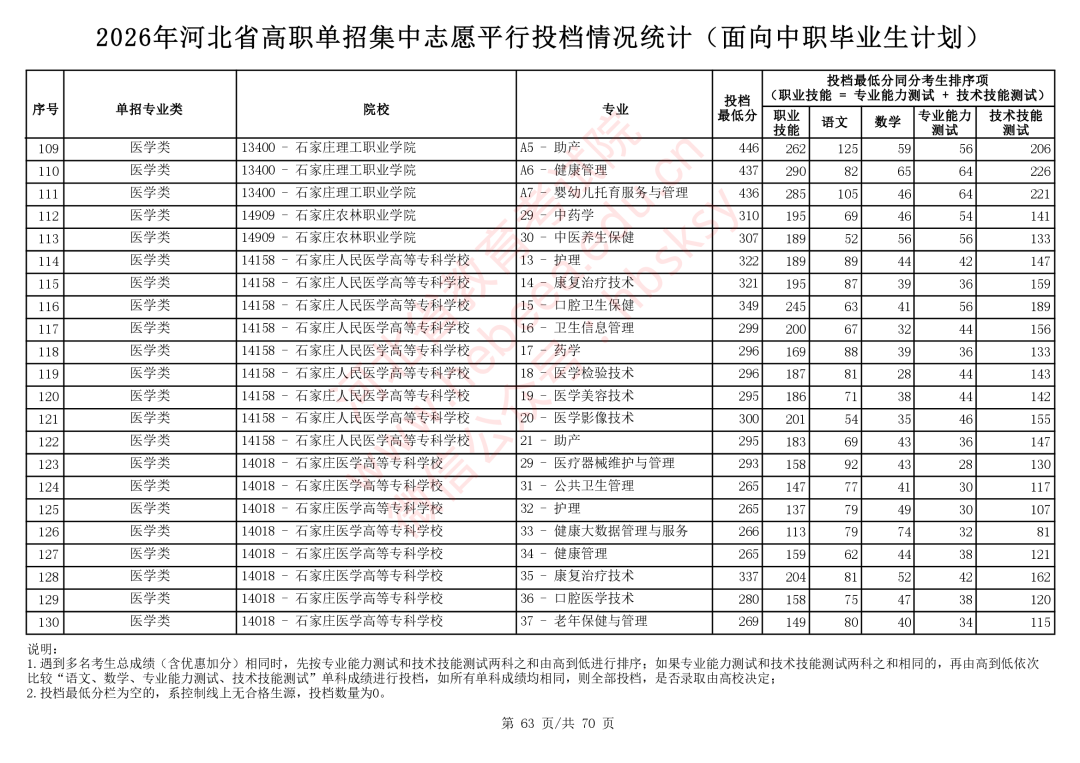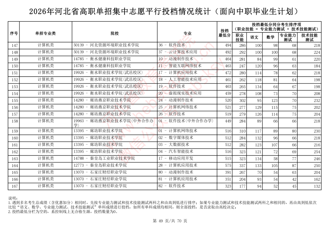 2026年河北省高职单招集中志愿平行投档情况统计(面向中职毕业生计划)