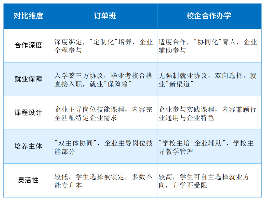 3.评估适配:结合自身职业规划、性格特点选择模式,稳定导向选订单班,多元导向选校企合作