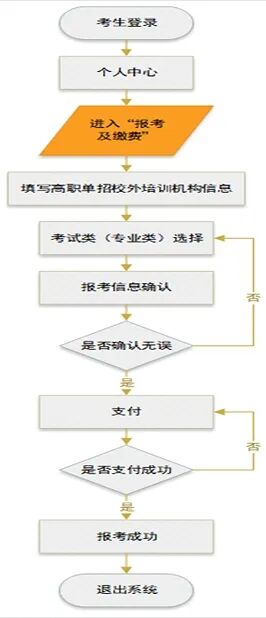 5.考生可选择微信或支付宝,扫描二维码进行缴费。缴费成功后,报考状态会显示“报考成功”,考生可点击“完成报考”按钮返回个人中心,再次查看报考信息,核查无误后可点击页面右上方的“退出系统”安全退出系统。具体报考流程如下: