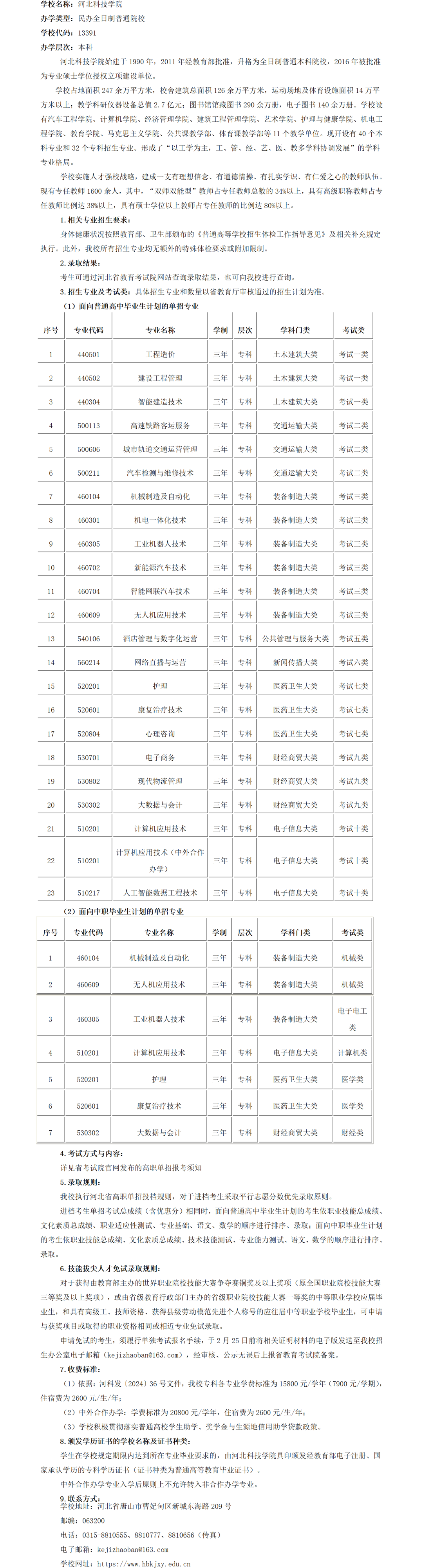 ③ 河北工艺美术职业学院、秦皇岛职业技术学院、河北科技工程职业技术大学、邯郸职业技术学院、唐山科技职业技术学院、石家庄科技职业学院、石家庄理工职业学院、石家庄工程职业学院、北京财贸职业学院、河北外国语学院、石家庄人民医学高等专科学校、邢台新能源职业学院、承德应用技术职业学院、渤海理工职业学院、河北工业职业技术大学、河北劳动关系职业学院
