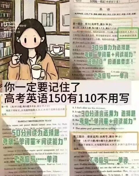 高考英语卷子150分里,有110分不用写!