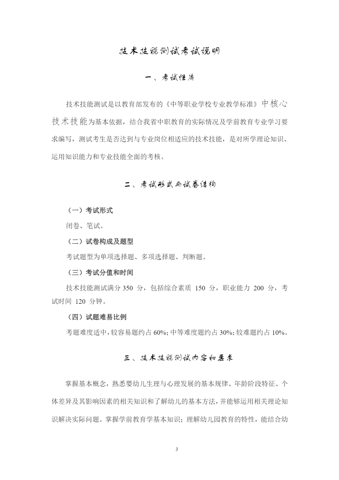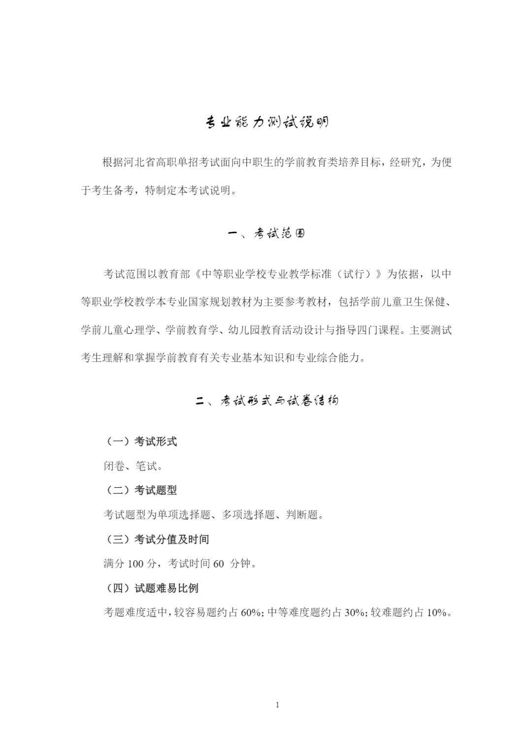 2024年河北省高职单招考试(学前教育类)考试大纲