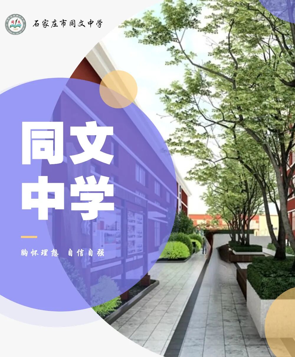 石家庄市同文中学始创于2004年,办学初期为依托23中建立的一所公参民办完全中学。经过近20年的共同探索、发展、沉淀,已经形成了自己的办学风格和校园文化。我们拥有先进的教育与管理理念、成功的办学经验和丰富的教育资源,学校先后赢得了国家级和谐校园先进学校、河北省4A级社会组织、河北省国防教育示范学校、河北省普通高中课程改革样本学校、河北省安全文明校园、河北省心理健康教育实验学校、石家庄市高中教学工作先进单位、石家庄市特色高中等诸多荣誉称号。