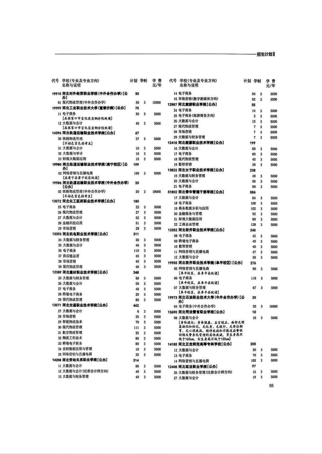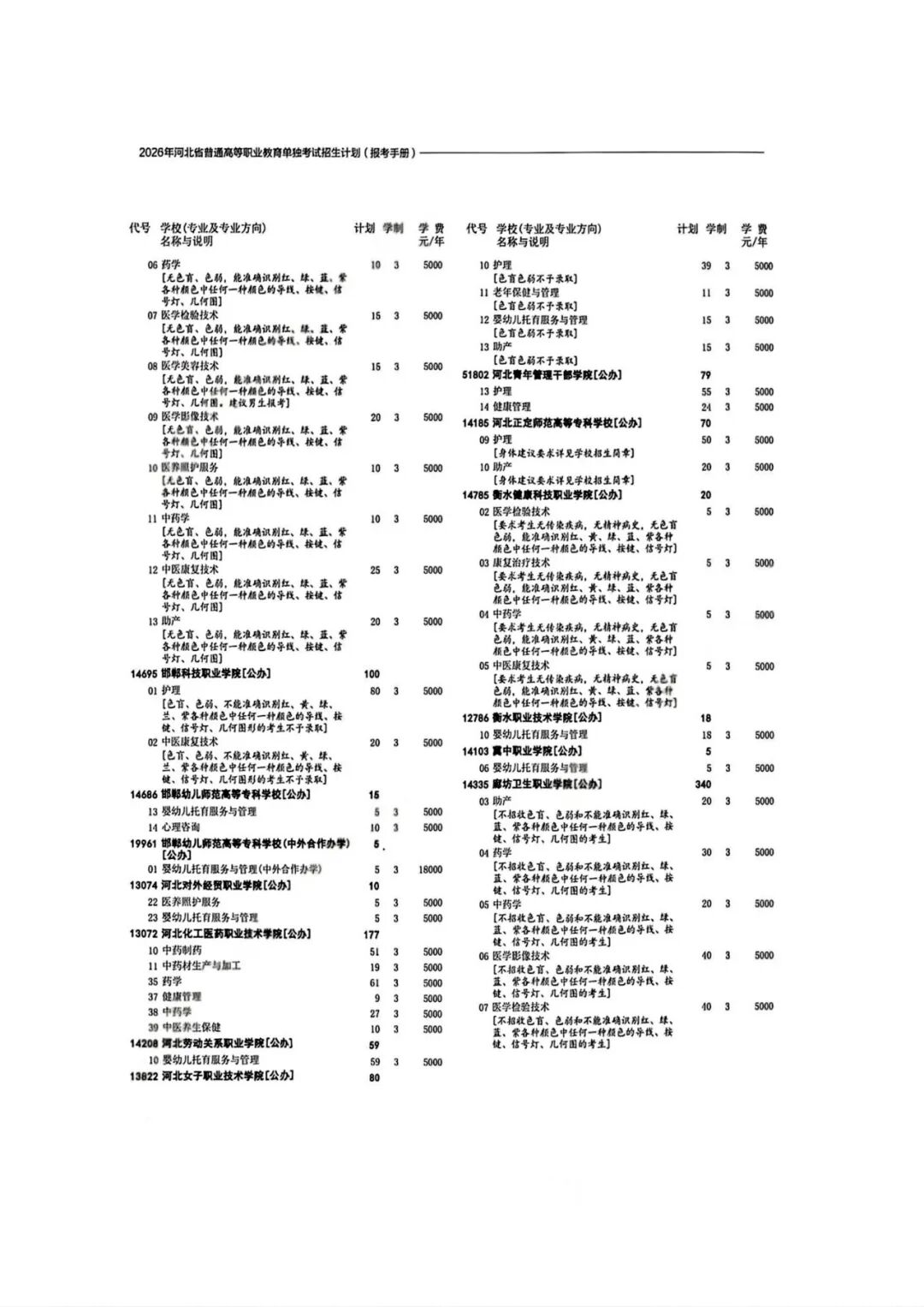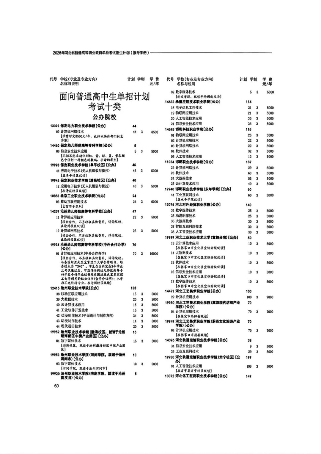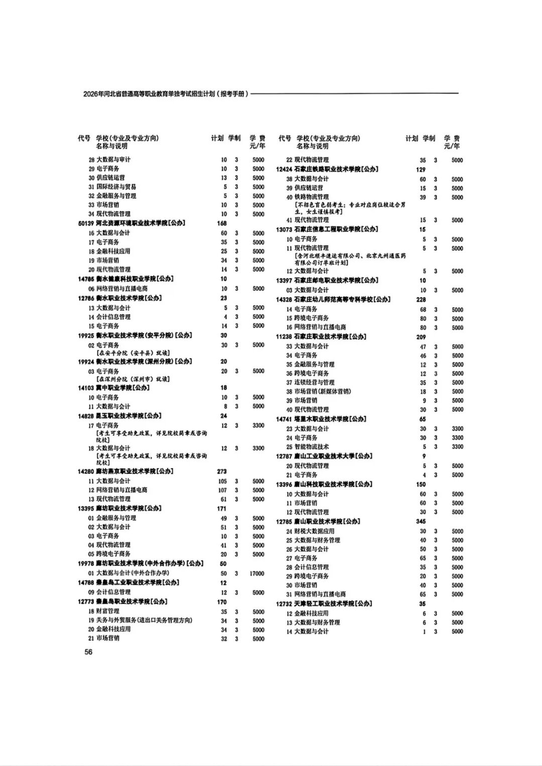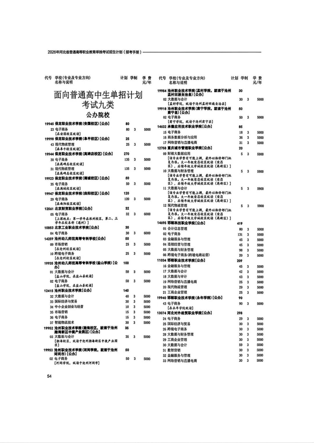 2026年河北省普通高等职业教育单招招生计划(1-10大类)