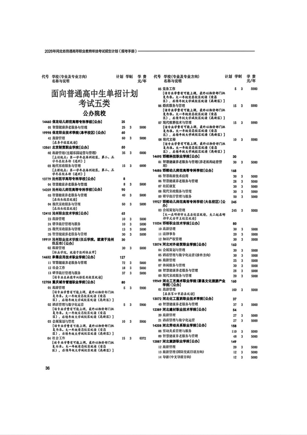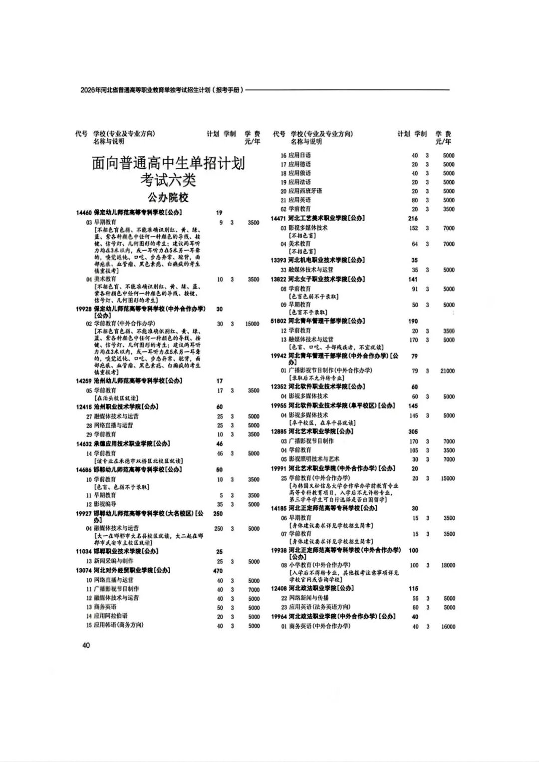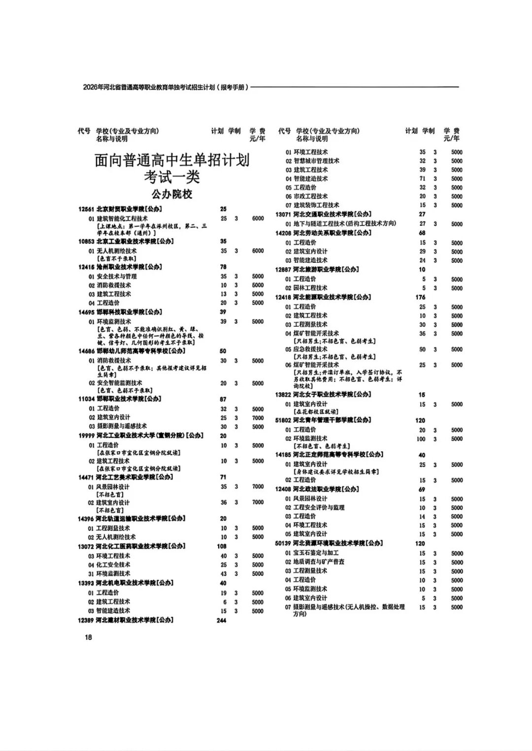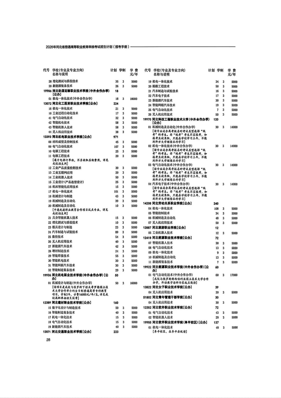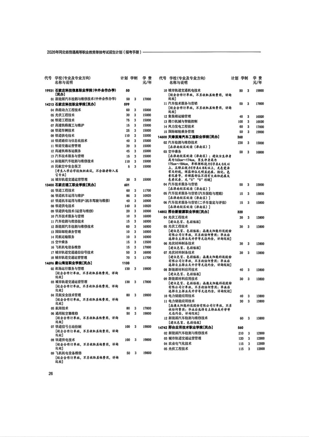 2026年河北省普通高等职业教育单招招生计划(1-10大类)