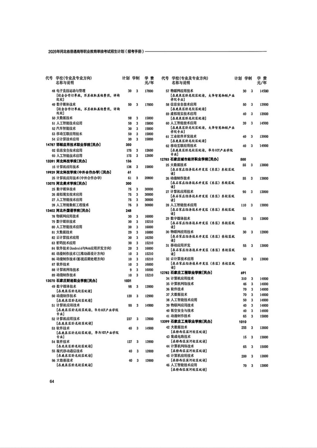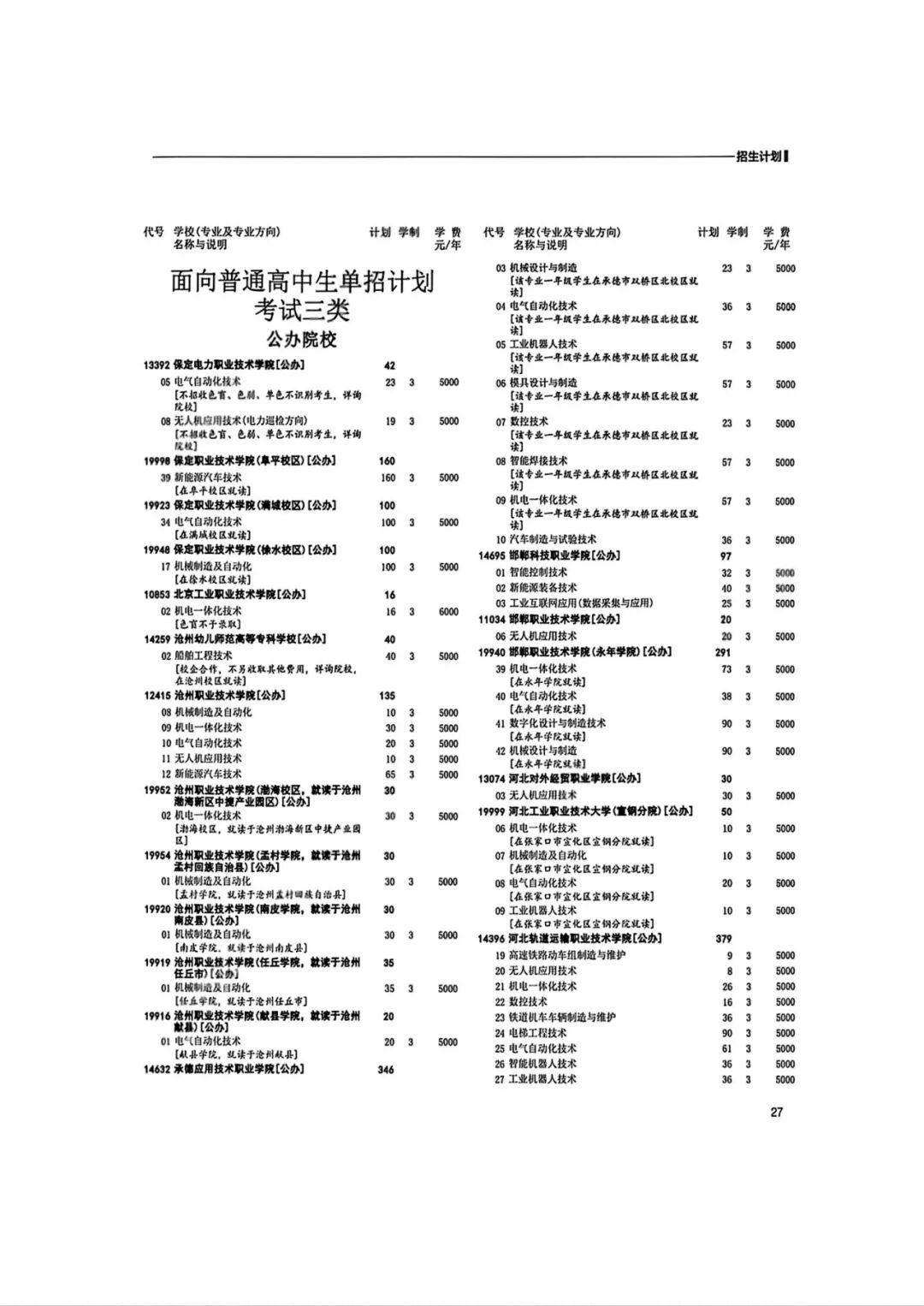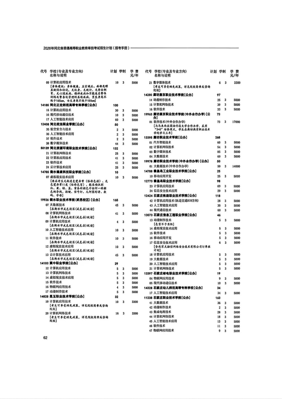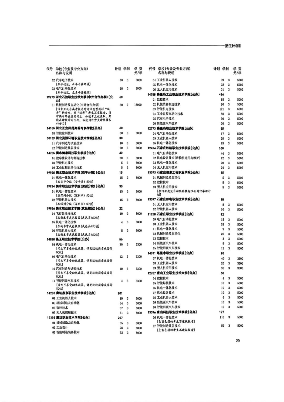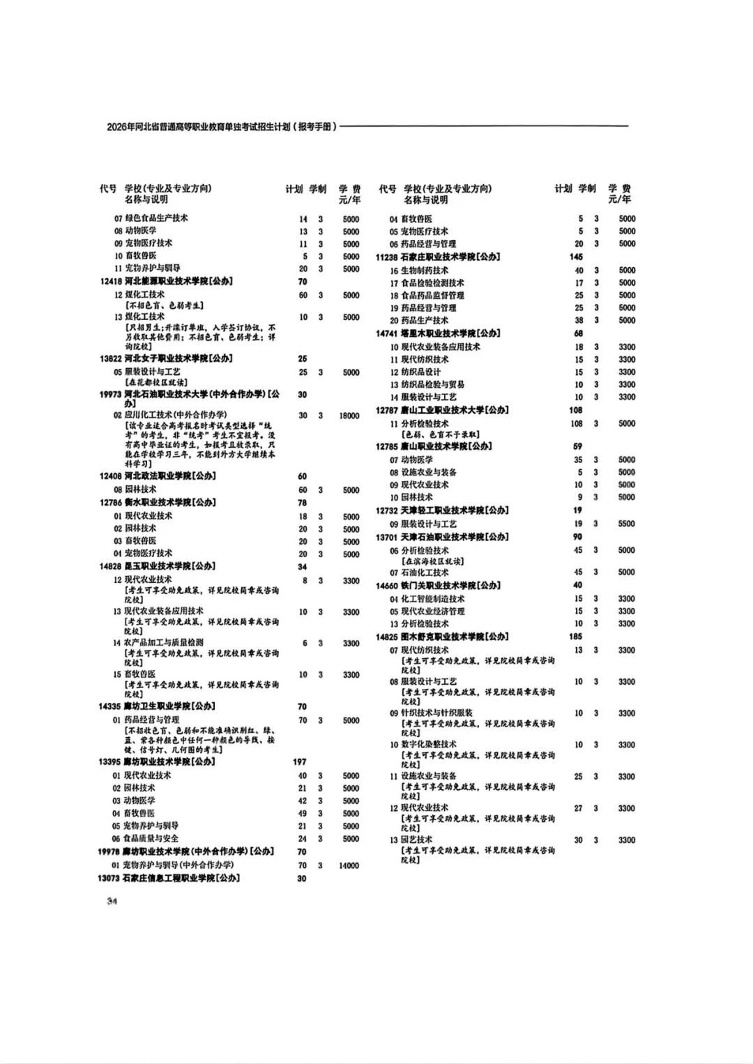2026年河北省普通高等职业教育单招招生计划(1-10大类)