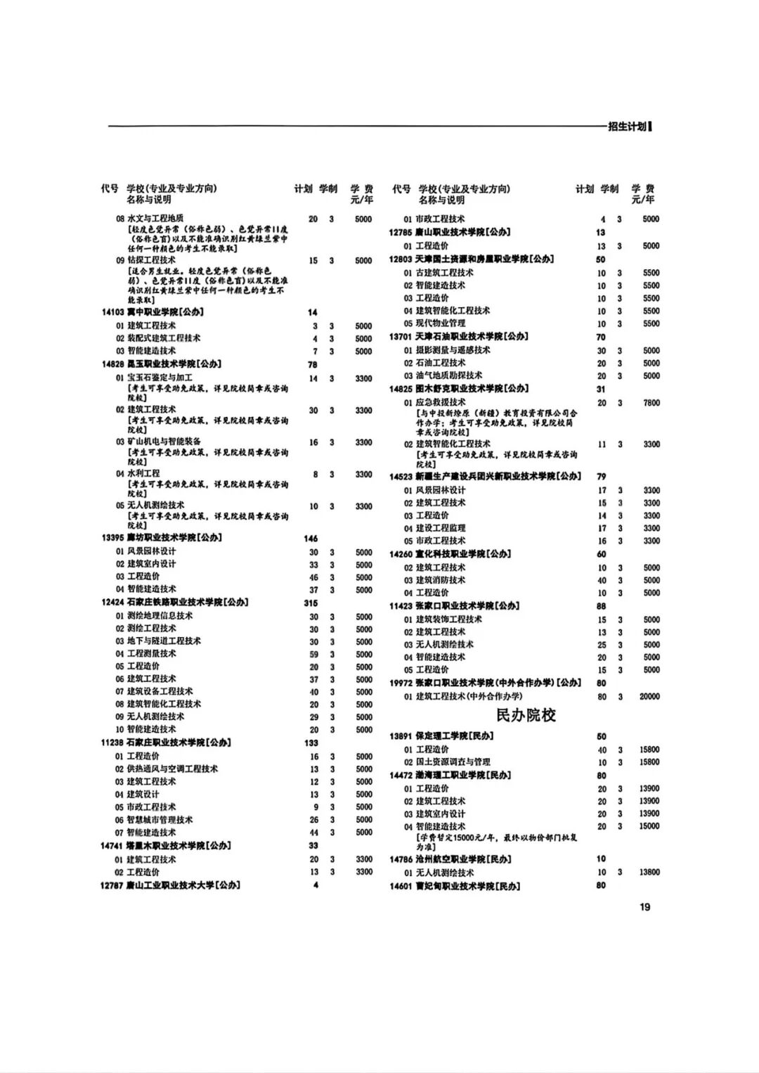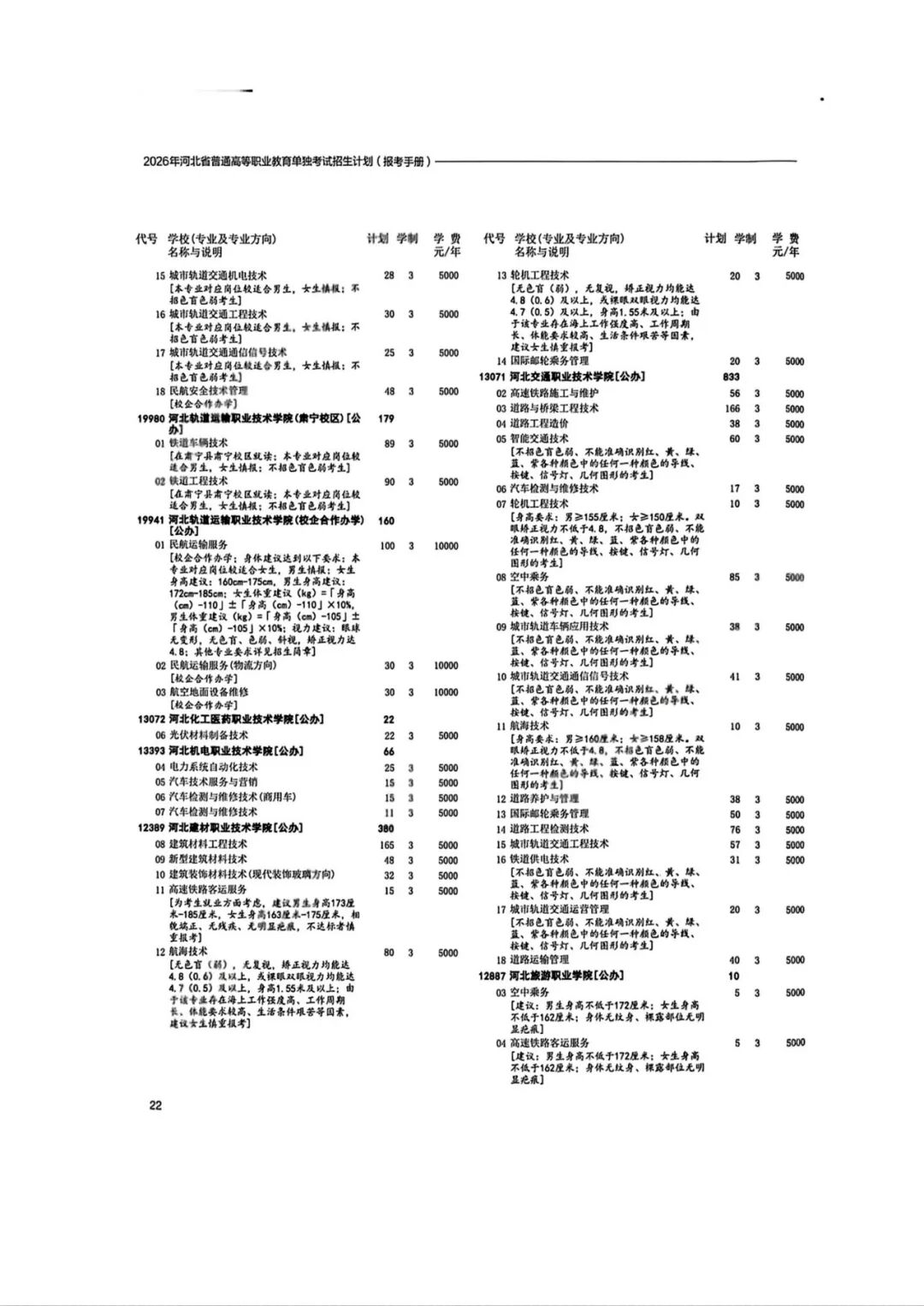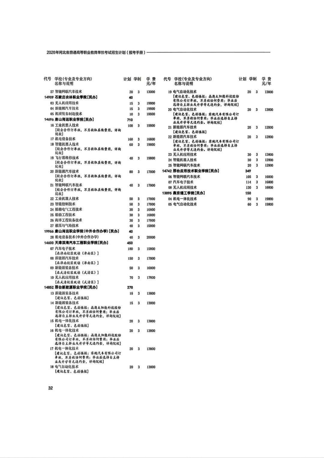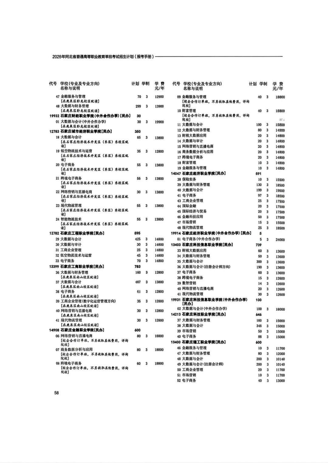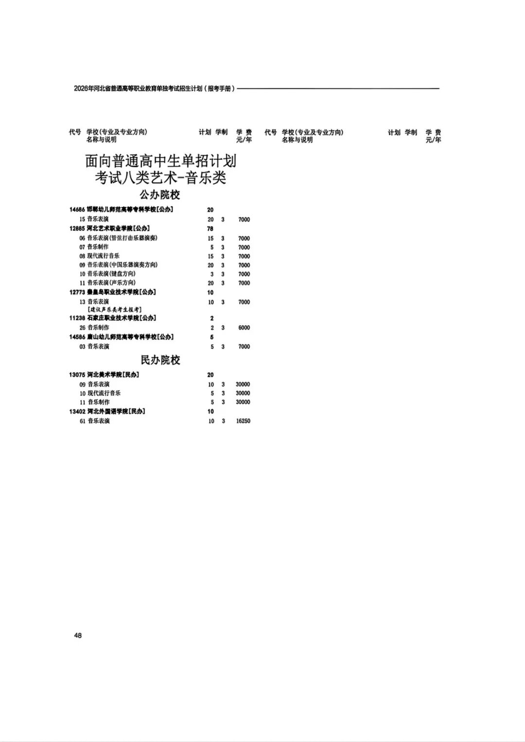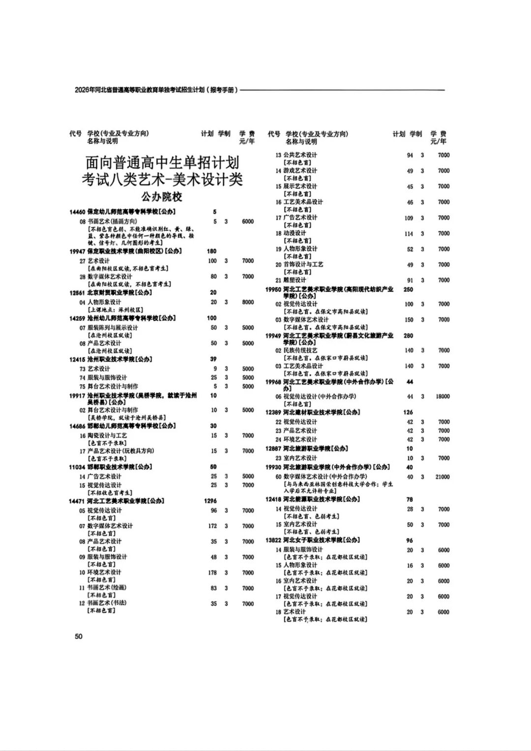 2026年河北省普通高等职业教育单招招生计划(1-10大类)