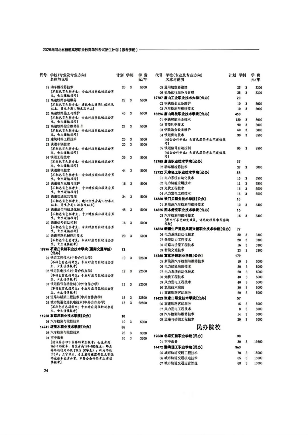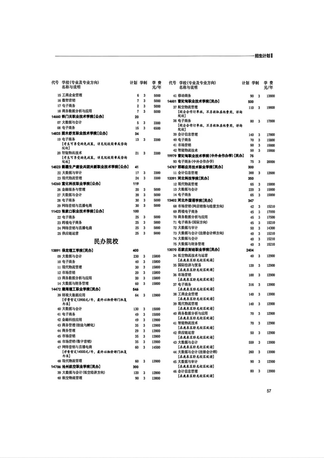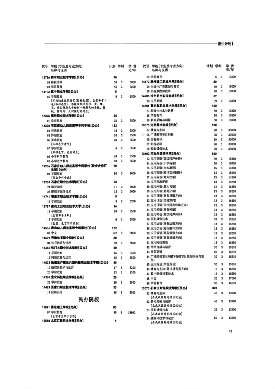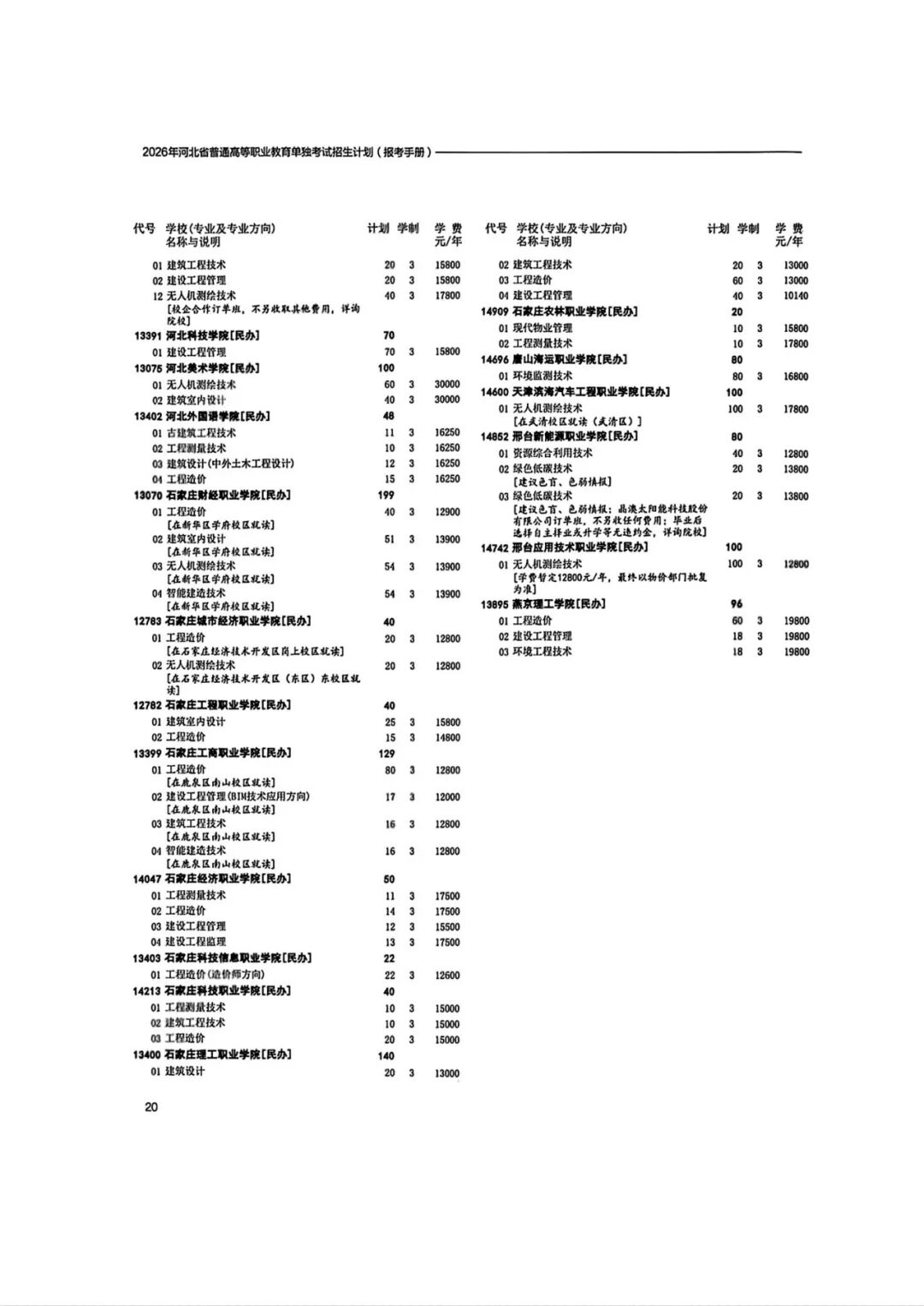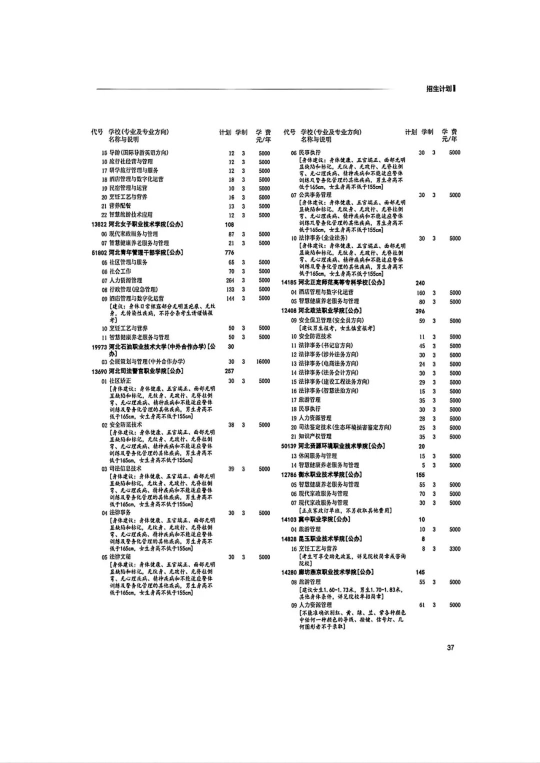 2026年河北省普通高等职业教育单招招生计划(1-10大类)