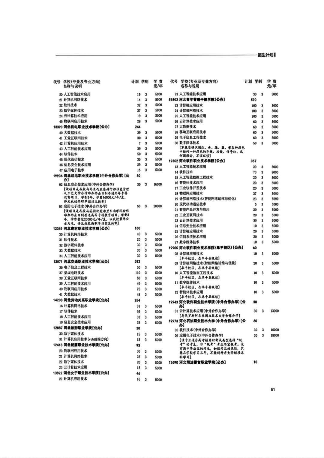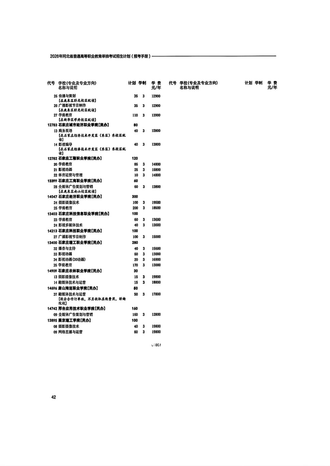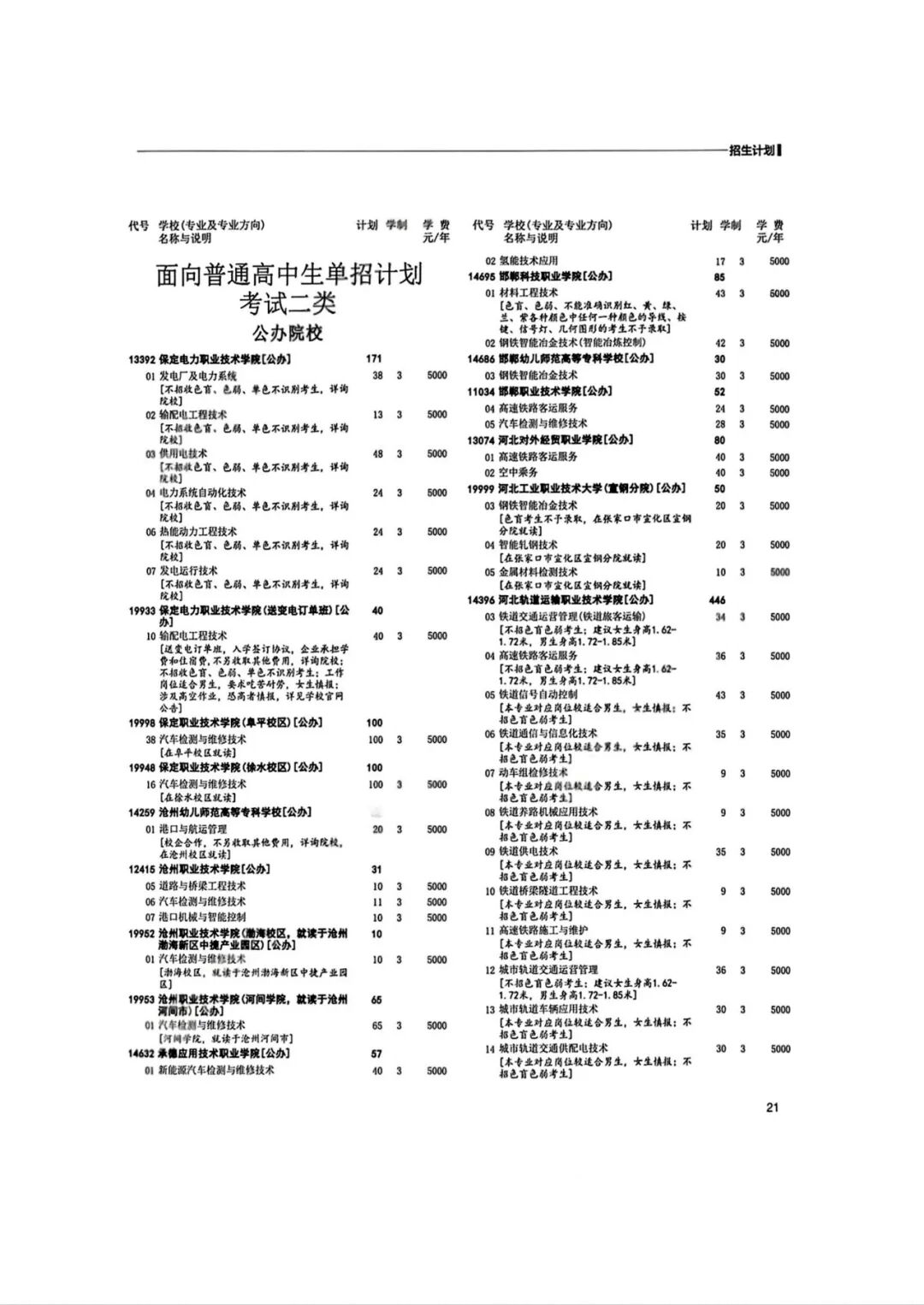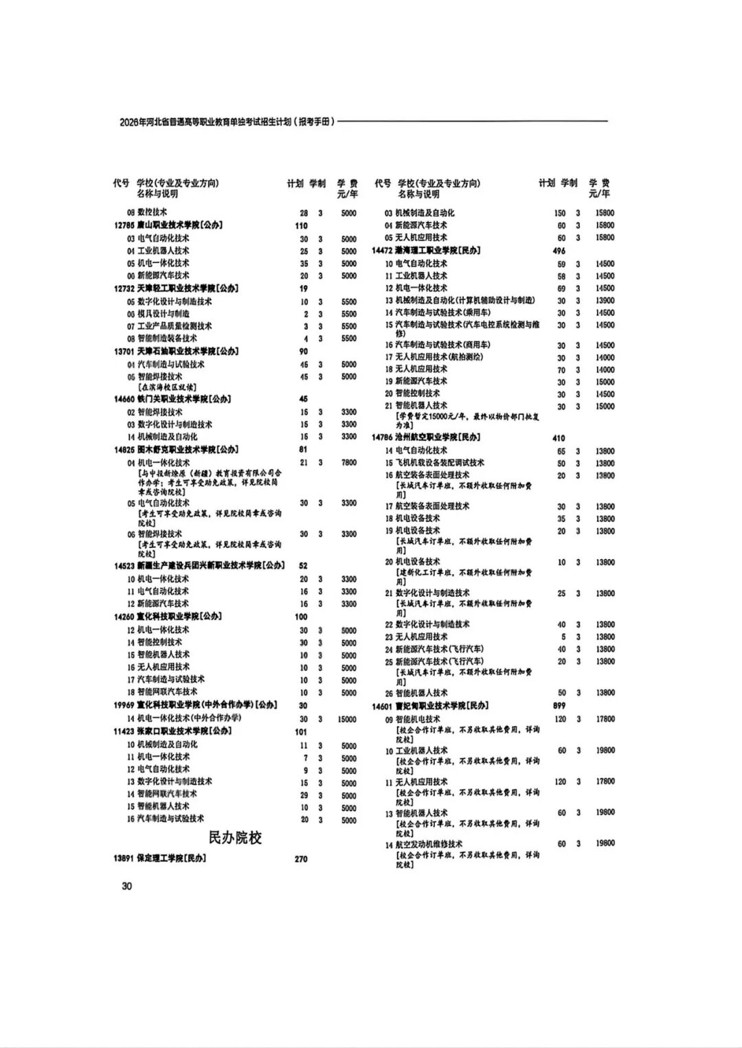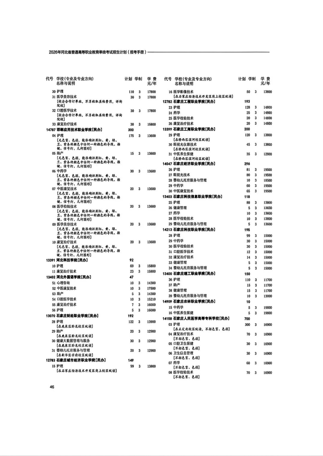 2026年河北省普通高等职业教育单招招生计划(1-10大类)