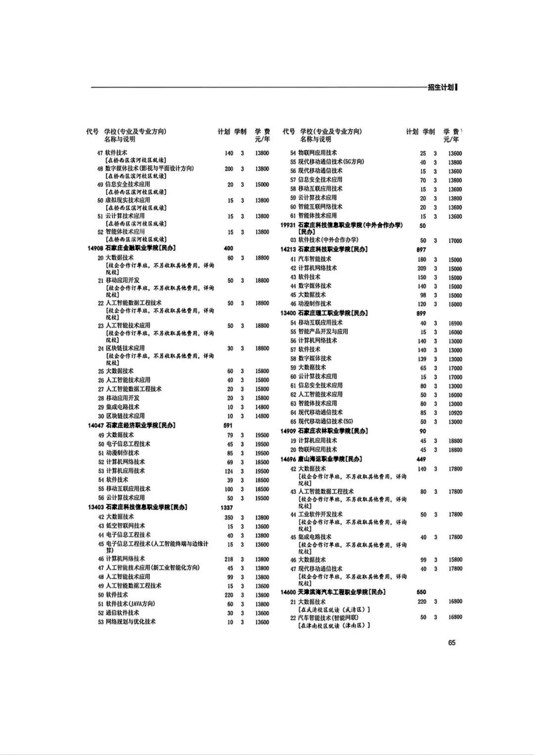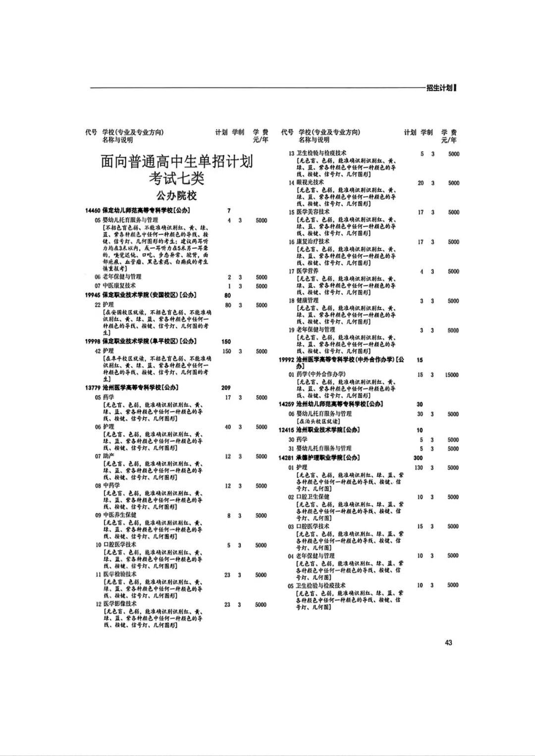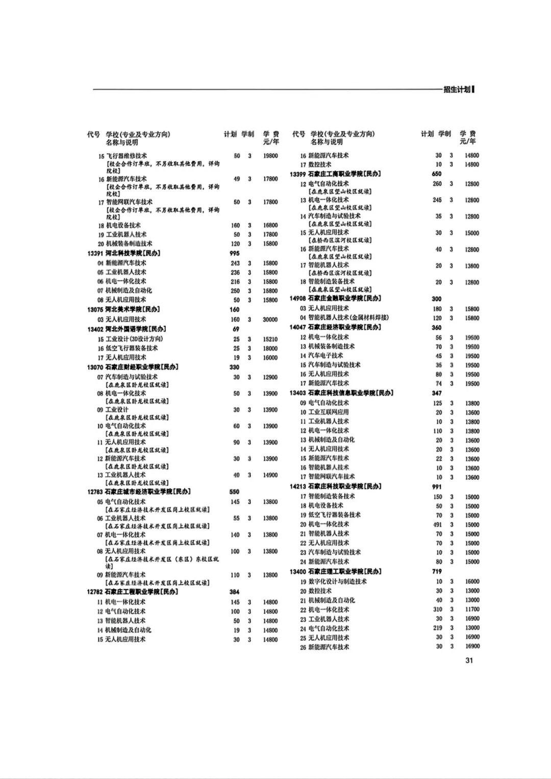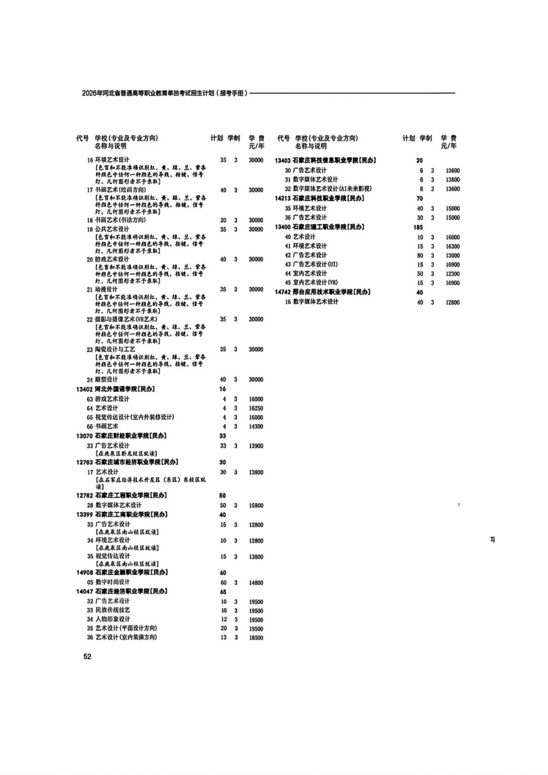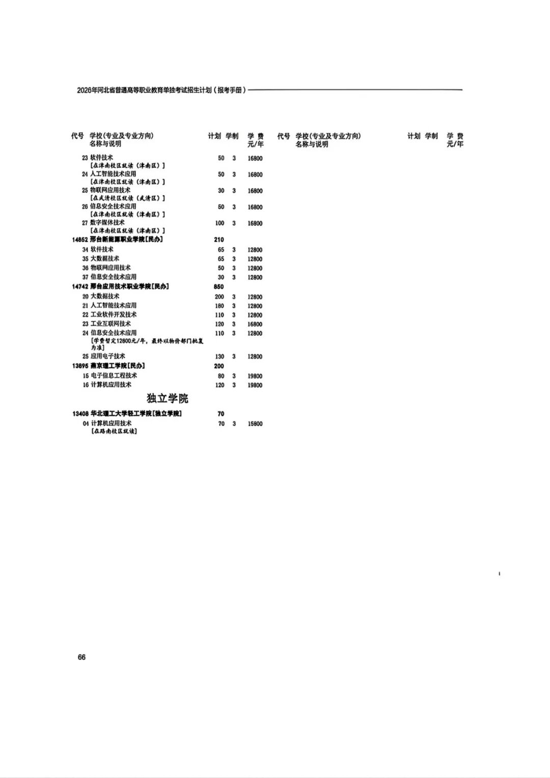 2026年河北省普通高等职业教育单招招生计划(1-10大类)