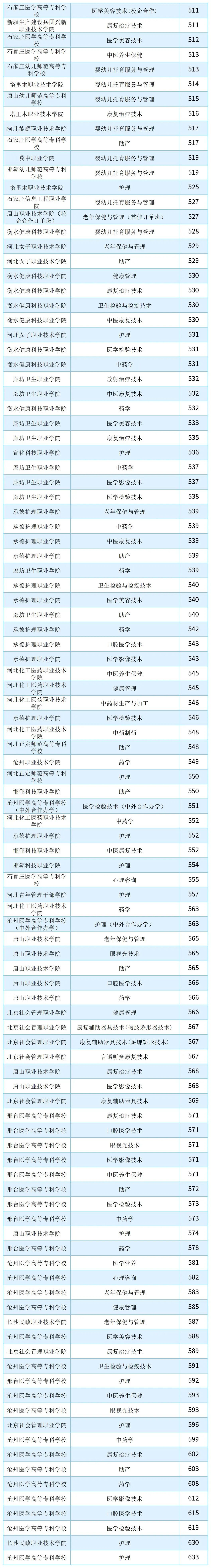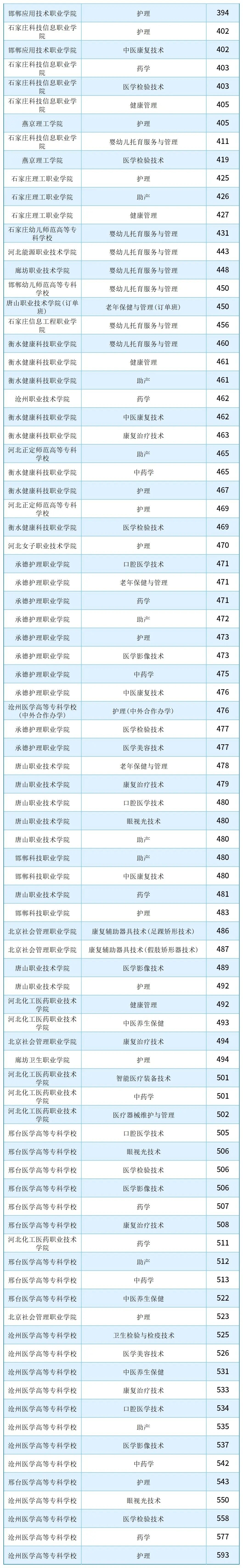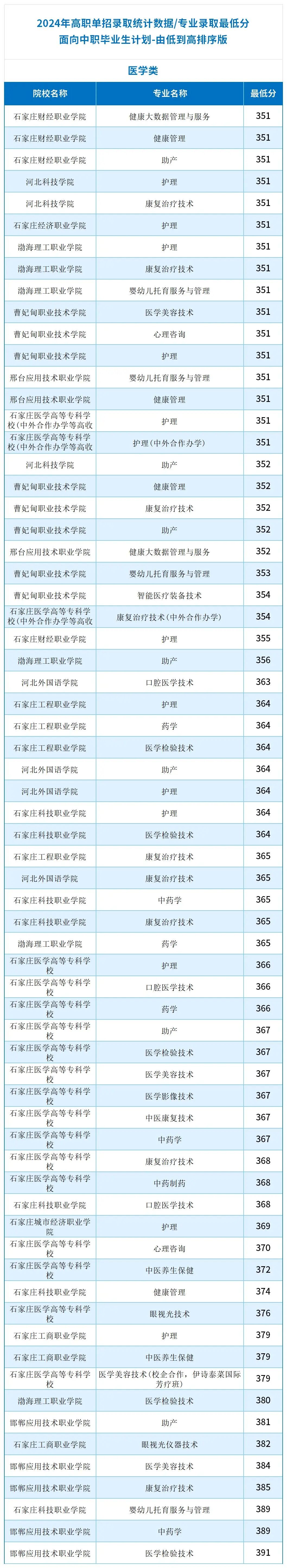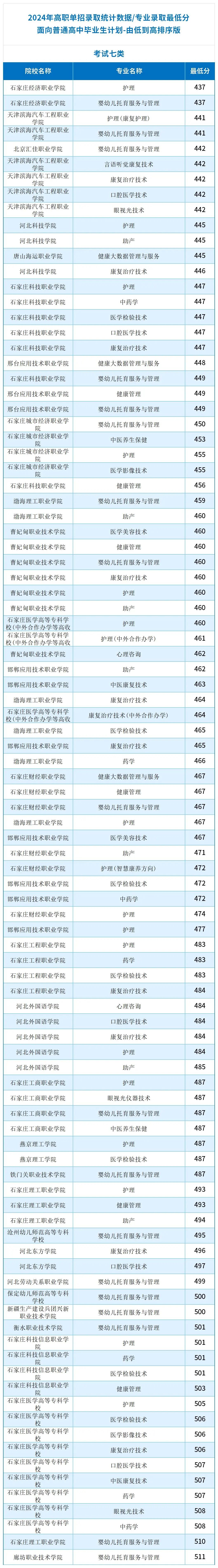 高职单招录取统计数据/专业录取最低分:考试七类/医学类(24年排序版)